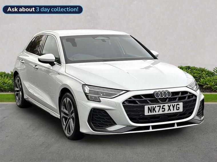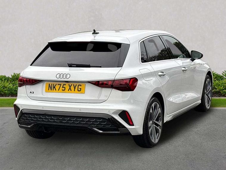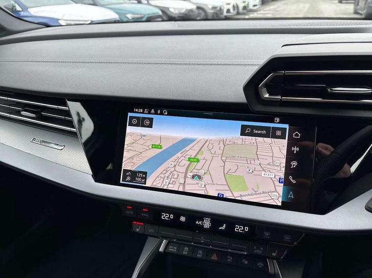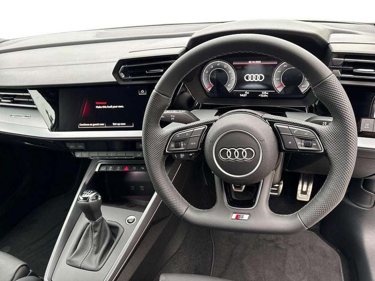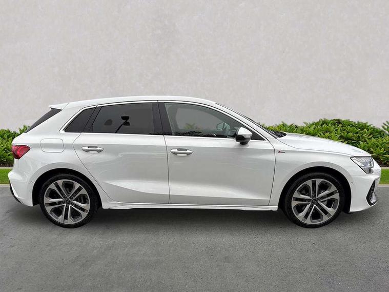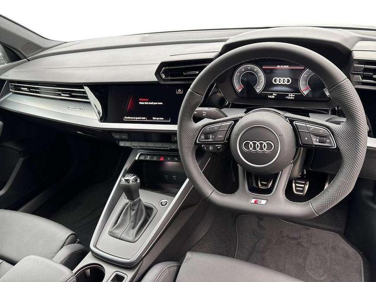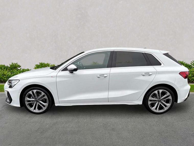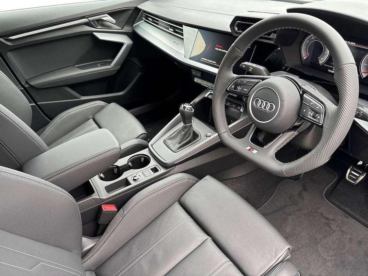 Adaptive cruise control (ACC), Adjustable speed limiter, Audi drive select (Auto, Comfort, Dynamic, Efficiency and Individual), Audi virtual cockpit plus - 12.3" full HD resolution dynamic digital instrument cluster, Automatic start/stop system with recuperation, Bluetooth interface, Camera based traffic sign recognition, Collision avoidance assistant, Driver attention and fatigue detection, e-Call (emergency call), Electromechanical power speed sensitive steering, Intersection assist, Lane departure warning system, MMI Navigation Plus with high resolution 10.1" colour touch screen display, Park Assist with parking system Plus, Reversing camera, Service indicator, Smartphone interface with app store includes wireless Apple carplay, Android auto and Amazon alexa integration, Trip computer, Voice control system with natural language interaction, Sports suspension, Audi Phonebox light with wireless charging, Audi sound system - 10 loudspeakers including centre loudspeaker and subwoofer, DAB Digital radio, USB ports with charging function in the rear, Acoustic glass windscreen, All weather light, Aluminium window trim, Auto dimming frameless rear view mirror, Automatic dynamic range control, Body colour exterior mirrors, Dipped beam, main beam, position light and turning light, Electrically adjustable/heated/folding/auto dimming door mirrors with integrated LED indications + kerb view function for passenger side, Exterior model badging, Front and rear side air inlets in grained matt black with dark liquid chrome frame, Front electric windows, Front radiator grill in high gloss dark chrome, Heat insulating glass windscreen, Illuminated door sills with aluminium inserts at the front with S logo, Intersection light, Invisible tailpipe, LED 3rd brake light, LED brake lights, LED daytime running x3, LED headlights with LED rear lights and dynamic rear indicators, LED rear number plate lights, LED reverse light, LED tail lights, Light and rain sensors, Manoeuvring light, Motorway light, Privacy glass - dark tinted rear window, rear door and side windows, Rear diffuser and grill in grained matt black with inlay in dark liquid chrome, Rear electric windows, Rear side wing doors, Rear wiper, S line bumpers, S roof spoiler, Side S line emblems on front wings, Side sill trim in dark liquid chrome, Static cornering light, 12V socket and storage compartment in front centre console, 3 seat bench in 2nd row, 3 spoke flat bottomed multi-function leather sport steering wheel, 3-zone deluxe automatic air conditioning, 4 way electrically adjustable lumbar support for driver and front passenger, 40/20/40 split folding rear seat bench, Black cloth headlining, Black front and rear floor mats, Front and rear centre armrest in artificial leather with contrasting stitching on armrests and instrument panel, Front and rear headrests, Heated front seats, Height and reach adjustable steering wheel, i-Size child seat mounting on the front passenger side and outer rear seats, i-Size and top tether on the outer rear seats, Manual boot compartment lid, Manually adjustable front seats, Rear centre armrest with cupholder, S badging on the steering wheel, Seat side bolsters, Single front passenger seat, Stainless steel pedals and front footrest in black, Twin leather upholstery with front sports seats S embossed logo, Aluminium interior elements pack - A3, Multi-coloured LED interior lighting package with Multi-coloured contour lighting of instrument panel - A3, 3x3 point rear seat belts, Driver and front passenger airbag with passenger airbag deactivation, Electronic Stabilisation Control (ESC) including ABS, ASR and EDL, First aid kit with warning triangle and 2 safety vests, Front side airbags with head airbags and interaction airbag, Hill hold assist, Pre-sense front with pedestrian and cyclist detection, Seatbelt monitoring, Tyre pressure loss indicator, Anti theft alarm, Anti-theft wheel bolts, Electronically operated child locks, Immobiliser, Black dashboard, Inlay in dark aluminium spectrum,