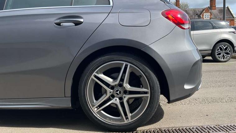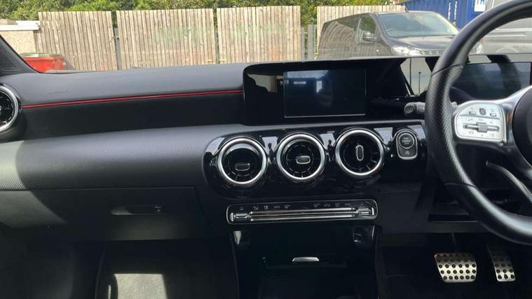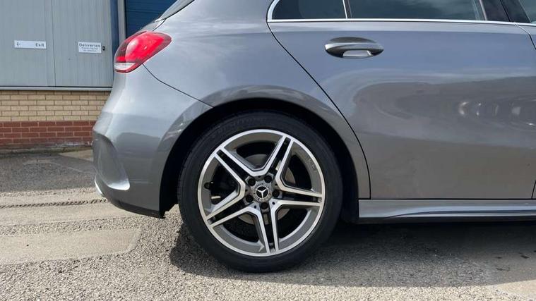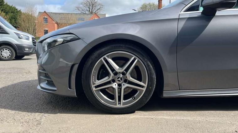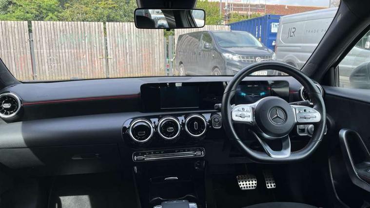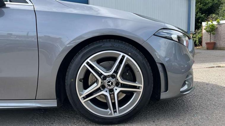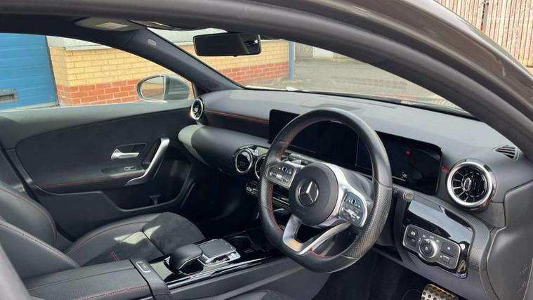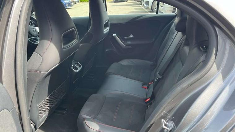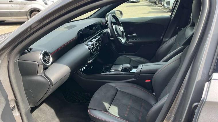 180 degree rear view camera with parking guidelines, 7" colour screen in instrument panel, 7" touchscreen media display, Active lane keep assist, Attention assist, Brake pad wear indicator warning light, Cruise control + speed limiter, Direct steering, Direction indicators with lane change function, DYNAMIC SELECT with a choice of driving modes (ECO, Comfort, Sport, Sport+ and Individual), Fluid level warning indicator for fuel, oil, coolant and washer fluid, Hard-disk navigation, Lamp failure indicator, Mercedes me connect including emergency call system, accident recovery, breakdown and maintenance management, Outside temperature gauge, Radio aerial integrated into roof spoiler, Service indicator (ASSYST), Speed sensitive power steering, Stop/start system, Trip computer, Voice activation, Lowered comfort suspension, DAB Digital radio, Dual bluetooth interface, 2 USB ports (type C), MBUX multimedia system with DAB digital radio and touchpad including satellite navigation, Adaptive brake lights, AMG front, rear apron and side skirts, Blue tinted glass, Body colour bumpers, Body colour door handles, Body colour side skirt, Body coloured door mirrors, Chrome beltline trim, Diamond radiator grille with chrome pins and silver louvre + chrome insert, Electric adjustable and heated door mirrors with integrated LED side indicators, Electric front windows, Electric rear windows, Exhaust system - Twin trapezoidal tailpipes in polished stainless steel, Headlamp assist automatic headlamp activation, Heated glass rear windscreen + timer control, LED high performance headlamps with integrated LED daytime running lights, LED tail lamp, LED third brake light, Rain sensor windscreen wipers, Rear fog lights, Rear wiper, 12V socket, 3 Spoke flat bottom leather multi function steering wheel with perforated leather in grip area, 40:20:40 split folding rear seats, Air vents surround and cruciform nozzle in silver chrome, AMG floor mats with red stitching, Artico man-made leather/Microfibre Dinamica upholstery with red contrast stitching, Auto Mercedes-Benz child seat recognition sensor, Black roof lining, Brushed stainless steel sports pedals with rubber studs, Controller on centre console with chrome surround, Cup holder and stowage compartment lighting, Front centre armrest with storage compartment, Front door sills with Mercedes Benz lettering, Front doors with ambient and signal light, Front footwell lights, Front reading lamps, Front seat backs luggage nets, Front seat cushion length adjustment, Front signal exit lamp, Front vanity lights, Gearshift paddles on steering wheel, Handle recess/closing light, Height/reach adjustable steering column, Illuminated glovebox, ISOFIX Child seat top tethers and anchor fixings, Load securing rings in luggage compartment, Luggage compartment cover, Manual height adjustable front seats, Oddments tray lighting, Rear head restraints, Rear Reading Lamps, Seat occupancy sensor for front passenger seat, Sports seats with integrated headrests, Storage compartment under load area floor, Sunvisors with illuminated vanity mirrors, Touchpad, Touchpad illumination, Twin front cupholders, Two zone thermotronic luxury automatic climate control, Seat comfort pack - A Class, 3 rear 3 point seatbelts, ABS with Brake Assist, Active bonnet, Active brake assist includes forward collision warning system with autonomous braking, Adaptive brake assist with hold function and hill start assist, Brake calipers with Mercedes-Benz lettering + perforated brake discs, Childproof locks manually operated for rear doors and electrically operated for rear power windows, Crash responsive emergency lighting, Driver and passenger head and side airbags, Drivers knee airbag, Dual stage driver/passenger airbags, Electronic parking brake, ESP curve dynamic assist, ESP with ASR, Front and rear seatbelt reminder, Tyre pressure monitoring system, Warning triangle and first aid kit, Window airbags, Alarm system/interior protection/immobiliser, Keyless Go, Remote central locking and crash sensor with emergency opening function, Black seatbelts, 18" AMG 5 twin spoke light alloy wheels in titanium grey with highsheen finish, Tirefit sealant kit,