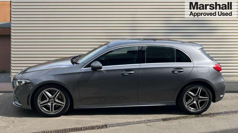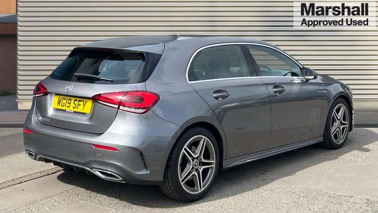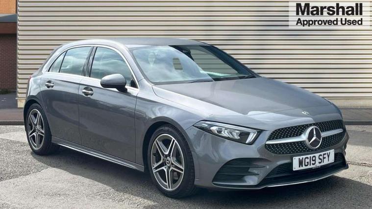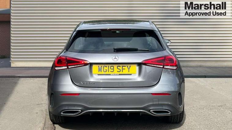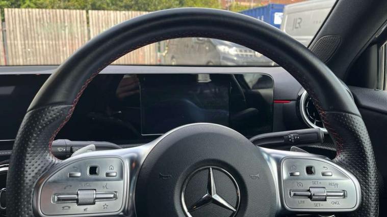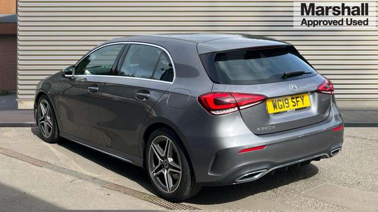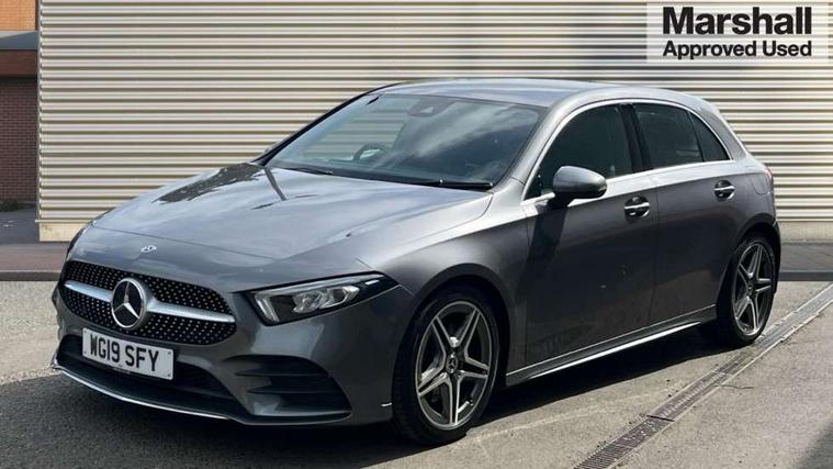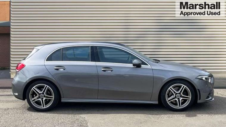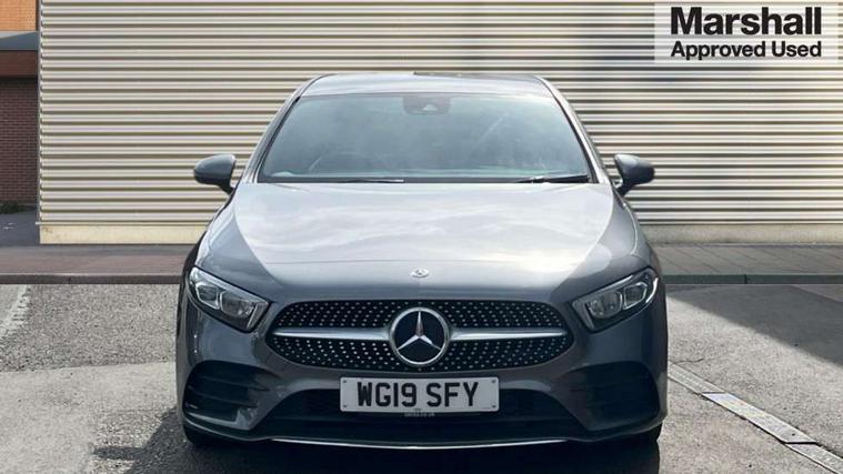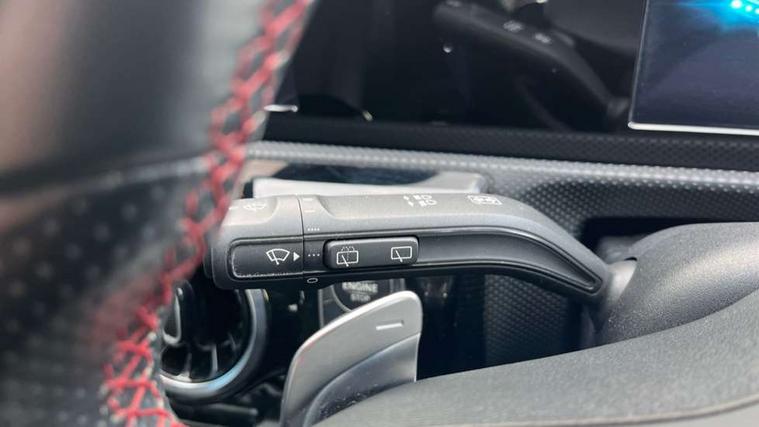 180 degree rear view camera with parking guidelines, 7" colour screen in instrument panel, 7" touchscreen media display, Active lane keep assist, Attention assist, Brake pad wear indicator warning light, Cruise control + speed limiter, Direct steering, Direction indicators with lane change function, DYNAMIC SELECT with a choice of driving modes (ECO, Comfort, Sport, Sport+ and Individual), Fluid level warning indicator for fuel, oil, coolant and washer fluid, Hard-disk navigation, Lamp failure indicator, Mercedes me connect including emergency call system, accident recovery, breakdown and maintenance management, Outside temperature gauge, Radio aerial integrated into roof spoiler, Service indicator (ASSYST), Speed sensitive power steering, Stop/start system, Trip computer, Voice activation, Lowered comfort suspension, DAB Digital radio, Dual bluetooth interface, 2 USB ports (type C), MBUX multimedia system with DAB digital radio and touchpad including satellite navigation, Adaptive brake lights, AMG front, rear apron and side skirts, Blue tinted glass, Body colour bumpers, Body colour door handles, Body colour side skirt, Body coloured door mirrors, Chrome beltline trim, Diamond radiator grille with chrome pins and silver louvre + chrome insert, Electric adjustable and heated door mirrors with integrated LED side indicators, Electric front windows, Electric rear windows, Exhaust system - Twin trapezoidal tailpipes in polished stainless steel, Headlamp assist automatic headlamp activation, Heated glass rear windscreen + timer control, LED high performance headlamps with integrated LED daytime running lights, LED tail lamp, LED third brake light, Rain sensor windscreen wipers, Rear fog lights, Rear wiper, 12V socket, 3 Spoke flat bottom leather multi function steering wheel with perforated leather in grip area, 40:20:40 split folding rear seats, Air vents surround and cruciform nozzle in silver chrome, AMG floor mats with red stitching, Artico man-made leather/Microfibre Dinamica upholstery with red contrast stitching, Auto Mercedes-Benz child seat recognition sensor, Black roof lining, Brushed stainless steel sports pedals with rubber studs, Controller on centre console with chrome surround, Cup holder and stowage compartment lighting, Front centre armrest with storage compartment, Front door sills with Mercedes Benz lettering, Front doors with ambient and signal light, Front footwell lights, Front reading lamps, Front seat backs luggage nets, Front seat cushion length adjustment, Front signal exit lamp, Front vanity lights, Gearshift paddles on steering wheel, Handle recess/closing light, Height/reach adjustable steering column, Illuminated glovebox, ISOFIX Child seat top tethers and anchor fixings, Load securing rings in luggage compartment, Luggage compartment cover, Manual height adjustable front seats, Oddments tray lighting, Rear head restraints, Rear Reading Lamps, Seat occupancy sensor for front passenger seat, Sports seats with integrated headrests, Storage compartment under load area floor, Sunvisors with illuminated vanity mirrors, Touchpad, Touchpad illumination, Twin front cupholders, Two zone thermotronic luxury automatic climate control, Seat comfort pack - A Class, 3 rear 3 point seatbelts, ABS with Brake Assist, Active bonnet, Active brake assist includes forward collision warning system with autonomous braking, Adaptive brake assist with hold function and hill start assist, Brake calipers with Mercedes-Benz lettering + perforated brake discs, Childproof locks manually operated for rear doors and electrically operated for rear power windows, Crash responsive emergency lighting, Driver and passenger head and side airbags, Drivers knee airbag, Dual stage driver/passenger airbags, Electronic parking brake, ESP curve dynamic assist, ESP with ASR, Front and rear seatbelt reminder, Tyre pressure monitoring system, Warning triangle and first aid kit, Window airbags, Alarm system/interior protection/immobiliser, Keyless Go, Remote central locking and crash sensor with emergency opening function, Black seatbelts, 18" AMG 5 twin spoke light alloy wheels in titanium grey with highsheen finish, Tirefit sealant kit,