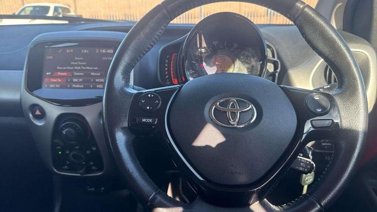 Bluetooth system, Digital clock, Electric power steering, Fuel indicator with low level warning, Lights on warning, Speed limiter, Tachometer, Vehicle Stability Control (VSC), 4 speakers, Auxiliary input socket, DAB Digital radio, Stereo radio, USB connection, 2 speed wipers/variable intermittent/mist function, Black front X, Body colour bumpers, Body colour door handles, Body colour door mirrors, Carbon rear diffuser, Electric adjustable door mirrors, Electric front windows, Green tinted glass, Headlamp levelling, Heated door mirrors, Heated rear windscreen, LED daytime running lights, Rear spoiler, Rear window demister, Rear wiper, Roof mounted aerial, 12V Accessory socket, 3 spoke leather steering wheel, 50/50 split folding rear seat, Air conditioning, Air recirculation system, Centre console storage, Chrome insert to gearknob, Chrome interior door handles, Driver and passenger sunvisors, Driver's seat height adjuster, Driver/passenger seat recline/slide adjust, Driver/passenger vanity mirrors with covers, Front and rear door pockets, Front cupholder, Front map reading lights, Gleam cloth upholstery, Glovebox, Height adjustable front head restraints, Isofix system on outer rear seats, Leather gear knob, Pollen filter, Rear cupholders, Rear headrests, Steering wheel mounted radio/phone controls, Stepless tilt adjustable steering column, Storage bins on all doors, Tonneau cover, ABS, Driver and passenger airbags, ESP, Fasten seatbelt reminder, Front side airbags, Height adjustable front seatbelts with pre-tensioners and load limiters, Hill start assist, Passenger airbag deactivate switch, Rear child proof door locks, Side curtain airbags, Tyre pressure warning, Engine immobiliser, Lockable fuel cap, Remote central locking, Grey dashboard trim, Tyre repair kit,