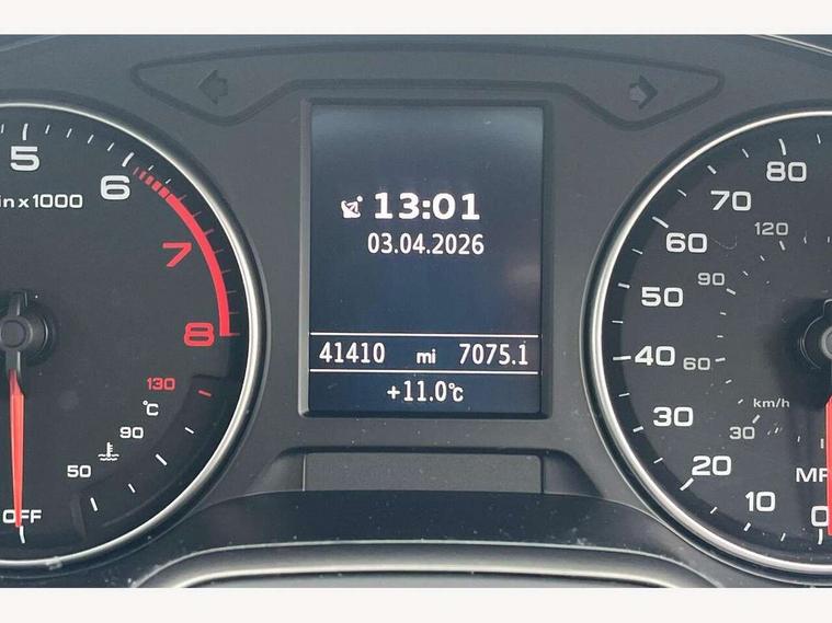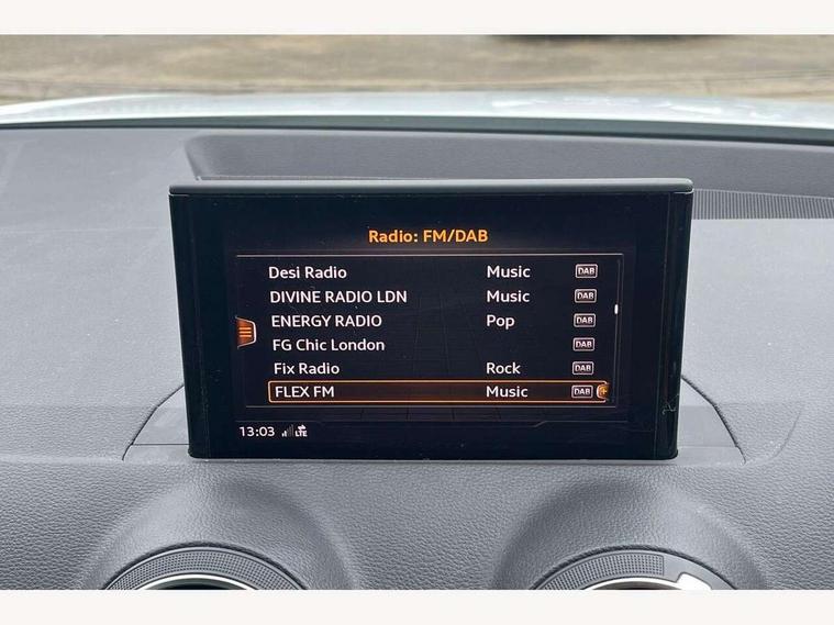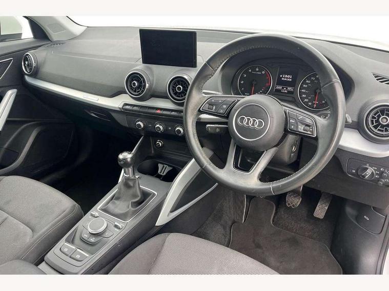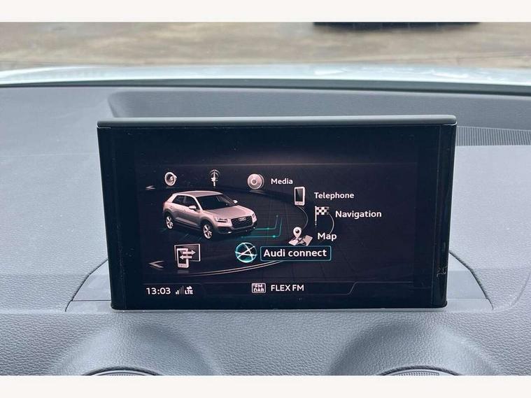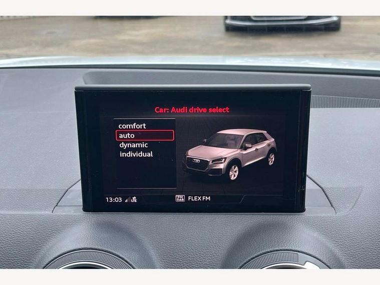 Audi drive select, Audi smartphone interface, Automatic start/stop system with recuperation, Bluetooth interface includes bluetooth audio streaming, Cruise control, MMI - Multi Media Interface control system, MMI SD card integrated nav with 3D map display, dynamic route guidance with TMC, MMI search, natural voice recognition and myAudi special destinations, Power operated tailgate, Progressive steering, Service interval indicator, Dynamic suspension, 2 x SDXC card reader, Audi music interface - apple iPod, apple iPhone, USB storage media, compatible MP3 players, 2 x USB charging points and 1 x Aux-in, CD Drive, DAB digital radio and AM/FM radio, MMI radio plus with 7" colour MMI screen and MMI controller, Air inlet in manhattan grey metallic, Black window trims, Body colour door mirrors, Chrome exhaust tailpipe, Electrically adjustable and heated door mirrors with integrated LED side indicators, Front and rear electric windows, Front underbody guard and rear diffuser trim in selenite silver, Front windscreen with grey tinted sunband, Halogen headlights including headlight range adjustment, High gloss black radiator grille, Interior mirror, LED indicator lights, Manual folding door mirrors, Rain and light sensors, Rear wiper, Side skirts in manhattan grey, Wheel arch trims in manhattan grey, 60/40 split folding rear seat bench, Door sill trims with aluminium inlay, Front centre armrest, Front headrests, Front sports seats, Front/rear floor mats, Height/reach adjust steering wheel, ISOFIX child seat mounting for front passenger with airbag deactivation and outer rear seat including top tether attachment point for outer rear seats, Manual seat adjustment including seat height adjustment for front seats, Storage compartments - Glovebox, cupholder compartment in centre console, storage compartment in rear centre console, front and rear door pockets, Three rear headrests, Titanium grey cloth headlining, Non smoking pack - Q2, 3x3 point rear seatbelts, 6 airbags - Front, curtain and front side airbags, Electromechanical parking brake, Electronic stabilisation control including ABS, ASR and EDL, Extended and proactive pedestrian protection, Hill hold assist, Multi collision brake assist, Pre-sense front with pedestrian recognition, Seatbelt monitoring, Tyre pressure warning light, Warning triangle and first aid kit, Anti theft alarm, Anti theft wheel bolts, Central locking system with remote control key, Electronically operated child locks, Aluminium interior element,