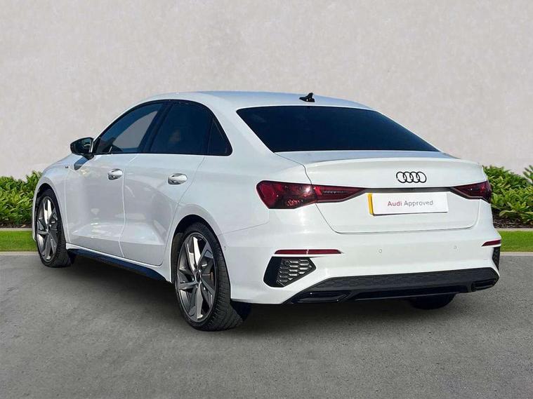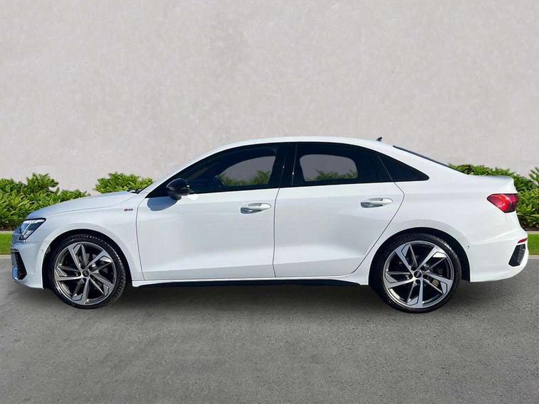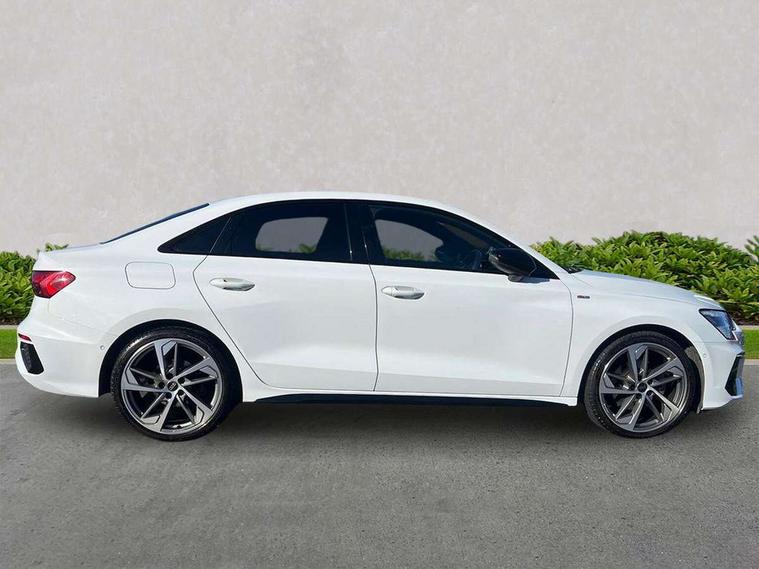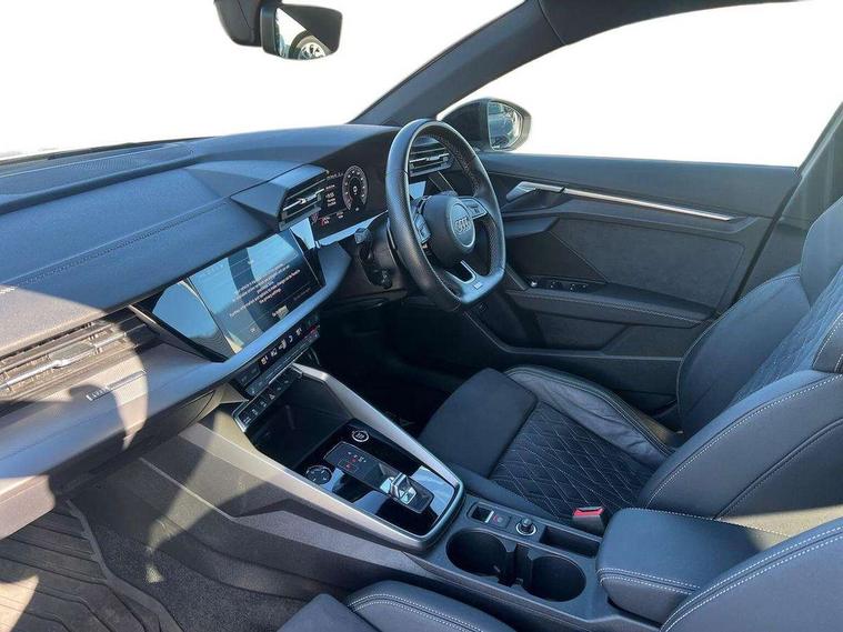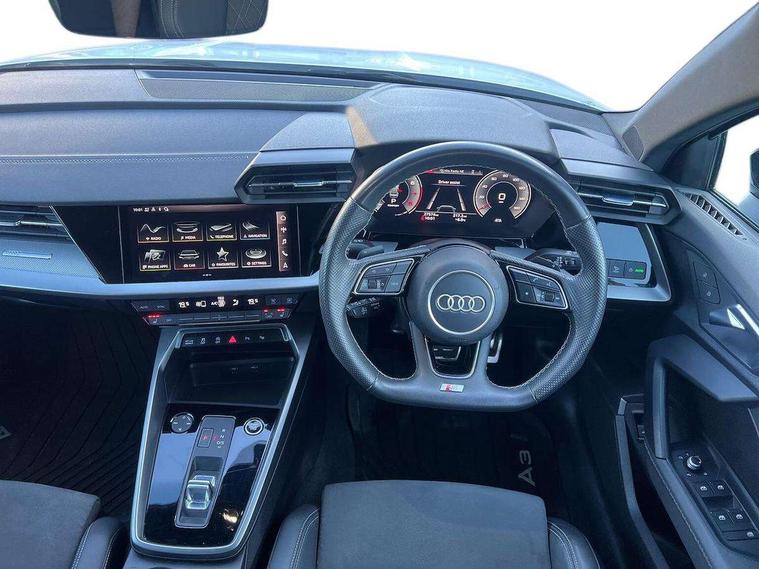 Audi connect emergency call and service, Audi drive select (Auto, Comfort, Dynamic, Efficiency and Individual), Audi smartphone interface, Audi virtual cockpit plus - 12.3" dynamic digital instrument cluster, Automatic start/stop system with recuperation, Bluetooth interface, Collision avoidance assistant, Electromechanical power speed sensitive steering, Lane departure warning system, MMI Navigation Plus with high resolution 10.1" colour touch screen display, Service indicator, Voice control system with natural language interaction, Sports suspension, 2x USB Type C ports (for charging and data transfer), 6 passive loudspeakers, CD player, DAB Digital radio, 3rd brake light, Acoustic glass windscreen, Audi matrix LED headlights, LED rear lights, dynamic front and rear indicators and headlight cleaning system, Auto dimming frameless rear view mirror, Electrically adj heated/folding + automatically dimming exterior mirrors + automatic kerb side function for passenger side exterior mirror, Front electric windows, Illuminated door sills with aluminium inserts at the front with S logo, Integrated LED indicators in door mirrors, LED daytime running lights, Light and rain sensors, Model and engine designation badges at rear, Privacy glass - dark tinted rear window, rear door and side windows, Rear boot, Rear electric windows, Rear side wing doors, S roof spoiler, 12V socket and storage compartment in front centre console, 3 seat bench in 2nd row, 4 way electrically adjustable lumbar support for driver and front passenger, 40/20/40 split folding rear seat bench with cupholder, Black cloth headlining, Dual zone electronic climate control, Electrically adjustable front seats, Front and rear centre armrest in leather, Front and rear headrests, Front/rear floor mats, Heated front seats, Height and reach adjustable steering wheel, Illuminated vanity mirror, Interior lighting - glove compartment light and right hand side, Luggage compartment floor covering, Manual boot compartment lid, Single front passenger seat, Stainless steel pedals and front footrest in black, Aluminium interior elements pack - A3, Black styling pack - A3/S3, Dinamica microfibre/mono.pur 550 artificial leather pack - A3 Saloon, Extended ambient lighting pack - A3/S3 Saloon, LED interior lighting pack - A3 Saloon, 3x3 point rear seat belts, Driver and front passenger airbag with passenger airbag deactivation, Electronic Stabilisation Control (ESC) including ABS, ASR and EDL, First aid kit with warning triangle and 2 safety vests, Front side airbags with head airbags and interaction airbag, Hill hold assist, Pre-sense front with pedestrian and cyclist detection, Seatbelt monitoring, Tyre pressure loss indicator, Anti theft alarm, Anti-theft wheel bolts, Electronically operated child locks, Immobiliser, Remote control central locking, Aluminium air vent surrounds, Aluminium trim elements, Dark spectrum aluminium inlays, accent surfaces in the dashboard and centre console in platinum grey silk effect paint finish, 19" 5 arm trapezoid design alloy wheels in matt grey with diamond cut finish,