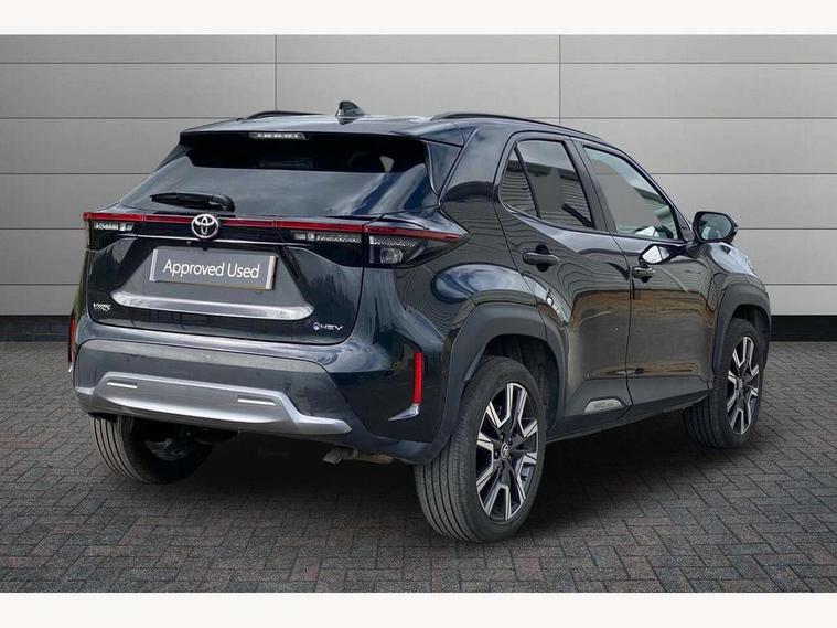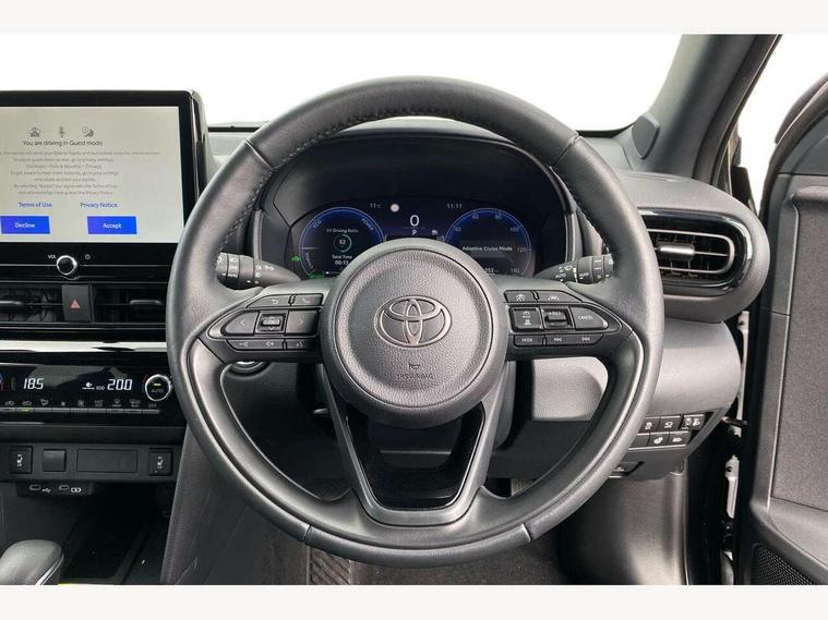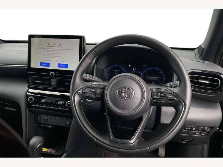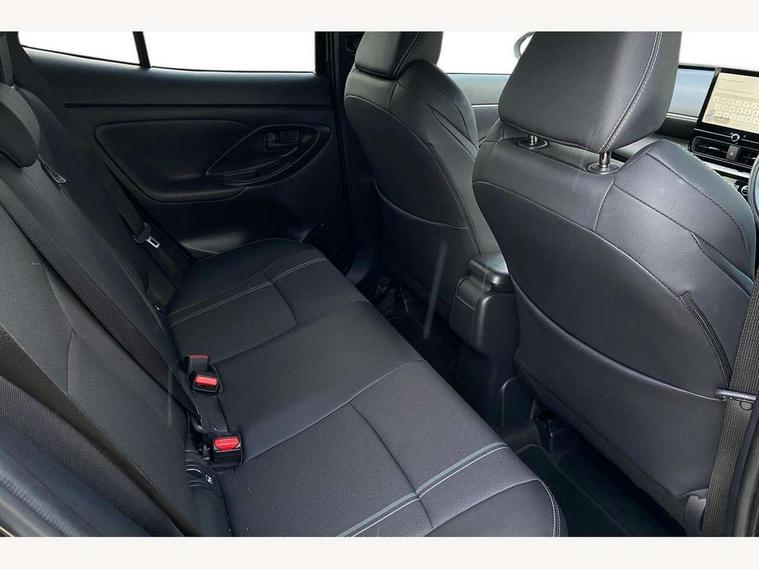 10.5" Multimedia display screen, 10.5" Toyota smart connect+ with navi multimedia system with wireless Smartphone integration incl Apple CarPlay, 360 degree panoramic view monitor, 7" Multi information display screen, Adaptive cruise control, multi info switches on steering wheel, Adjustable speed limiter, Advanced parking assist, Blind spot monitoring, Bluetooth connectivity, Color multi-information display, Digital speedometer, Digital tachometer, Drive mode selector, Driver attention alert system, Dynamic guide lines on reversing camera, eCall emergency system, Electric power steering, Emergency driving stop system, Full range intelligent adaptive cruise control, Hybrid system indicator, Intelligent front and rear parking sensors with clearance sonar and automatic braking, Intersection turn assist, Key reminder warning, Lane change assist, Lane trace assist, My T Connected services, Power tailgate, Pre-collision system enhanced with emergency steering assist, Rear cross traffic alert, Remote boot door release in cabin, Road sign assist - RSA, Safe exit assist, Tailgate, Telephone switch on steering wheel, Wireless Mobile Phone Charger, Steering assisted vehicle stability control, 6 speakers, DAB Digital radio, Front USB Type-C connector, Front USB-C device charger, Acoustic windscreen glass, Anti-jam protection on power windows, Auto dimming rear view mirror, Auto high beam [AHB] with on/off switch, Auto intermittent windscreen wipers, Automatic headlights, Automatic headlights cut-off, Automatically retractable door mirrors, Black door moulding, Black lower front grille, Black protection moulding on side doors, Black roof rails, Black wheel arch mouldings, Body colour door handles, Body colour front bumper, Body colour rear bumper, Electric adjustable heated door mirrors, Follow me home headlights, Front and rear electric windows with auto up/down function, Gloss black upper front grille, Headlight cut off reminder, Indicators integrated on door mirrors, Intermittent rear wiper, Kick activated power back door, LED 3rd brake light, LED daytime running lights guide, LED front fog lights, LED front light guide, LED Indicators, LED projector headlights, LED rear lights with sequential indicators, Manual headlight levelling, Meshed shape upper front grille, Noise reduction layer on windscreen, Pre wiring for towing hook, Privacy glass, Rain sensor, Rear roof spoiler, Rear side wing doors, Rear window defogger, Shark fin antenna, 12v power outlet - front, 12V power point in boot, 2x Rear coat hooks, 3 seat bench in 2nd row, 3 spoke leather steering wheel, 40/60 split deckboard, 40:20:40 split folding rear bench seat, Adjustable rear headrests, Adjustable speed limiter switch on steering wheel, Boot light, Central armrest, Driver and front passenger personal lights, Driver and front passenger Whiplash injury Lesseing seats, Driver and passenger seatback pockets, Dual zone automatic air conditioning, Fabric door trim, Front console box, Front cup holders, Front door pockets, Front head restraints, Front sport seats, Front/rear assist grips, Gear shift indicator, Grey roof lining, Heated driver and passenger seats, Heated steering wheel, Height adjustable driver's seat, Height adjustable front passenger seat, Hooks for luggage holding belts, ISOFIX child restraint system, Lane departure alert switch on steering control, Leather gearshift, LED centre room light, Light on driver and passenger sun visor, Manual telescopic and tilting steering wheel, Mirror on driver and passenger sun visor, Nanoe-X air purifier, Partial synthetic leather upholstery, Pollen air filter, Power adjustable lumbar support on driver seat, Rear cup holders, Rear door pockets, Rear head restraints, Remote air-conditioning system, Single compartment glovebox, Single front passenger seat, Soft tonneau cover, Storage box under boot floor, Voice recognition switch on steering wheel, White ambient lighting in centre console, White ambient lighting in footwell, White ambient lighting on front doors, Yaris cross floor mats, Tech pack - Yaris Cross, 3x3 point rear seat belts, ABS+EBD+Brake assist, Downhill Assist Control (DAC), Driver and passenger central airbags, Driver and passenger front airbags, Driver and passenger side airbags, Electronic parking brake, Emergency brake light system (EBS), Front seat belt reminder, Hill start assist control (HAC), Passenger airbag on/off switch, Pre-collision system with pedestrian and cyclist detection, Rear door child safety locks, Rear passenger side airbags, Rear seat belt reminder, Traction control, Tyre pressure warning system, Immobiliser, Intrusion alarm, Keyless smart entry with push button start, Power door locks, Power passenger window lock, Remote door lock, Gloss black side air vent surrounds, Tyre repair kit,