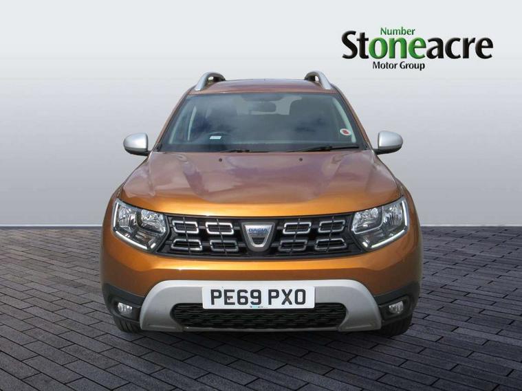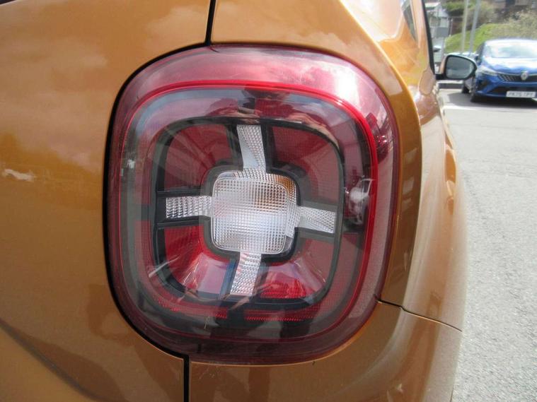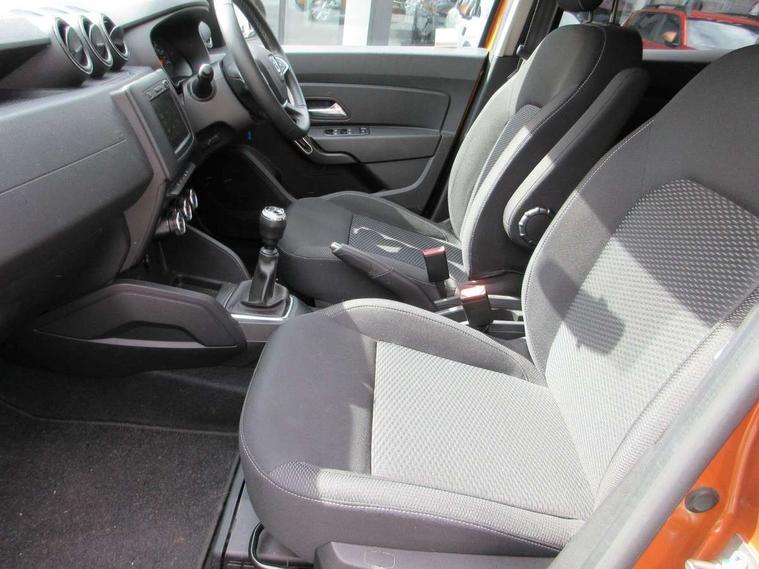 Bluetooth connectivity, Cruise control, Eco mode, Electric power assisted steering, MediaNav Evolution 7" touchscreen multimedia system with satellite navigation with Apple car play and Android auto, On board computer, odometer, trip computer, average fuel consumption, average speed, service indicator, outside temperature gauge, Rear parking camera, Rear parking sensors, Rev counter, Speed limiter, Stop/start system, 4x 20W FM/AM/DAB tuner with steering column mounted fingertip controls, Aux-in socket, USB connection for MP3 players, 3 speed windscreen wipers, Black side sills, Body coloured door handles, Body coloured front and rear bumpers, Chrome front grille, Dark metal door mirrors in grey, Dark tinted windows, Double optic headlights, Dusk sensor, Electric adjustable/heated door mirrors, Electric front windows, Electric rear windows, Front door sill protection strip, Front fog lights, Heated rear window, High level third rear brake light, LED daytime running lights, Rear wash/wipe, Satin chrome front and rear skid plates, Satin chrome longitudinal roof bars, Tailgate trim with satin chrome Duster inscription in black background, 3 rear height adjustable headrests, 4 speed heating and ventilation with air recirculation, 60/40 split folding rear seat, Boot light, Driver seat lumbar adjustment, Fabric decorative insert on door panels, Front passenger reading light, Front seat armrests, Front under seat storage, Gear shift indicator, Glovebox light, Graphite cloth upholstery, Height adjustable driver seat, Height adjustable front headrests, Height adjustable steering wheel, Isofix points for child seats in both outer rear seats, Manual air conditioning, Map pocket on front seat backs, Matt black front door handles, Matt black rear door handles, Passenger sunvisor with vanity mirror, Rear passenger reading light, Satin chrome gear lever cap insert, Satin chrome lower steering wheel insert, Soft feel steering wheel, 3x3 point rear seatbelts, ABS and Emergency brake assist, ASR traction control with Electronic stability control, Child locks on rear doors, Door open warning, Driver airbag, Driver and passenger seatbelt not fastened - visual and audible warning, Front passenger airbag deactivation, Front seatbelt pretensioners, Front side airbags, Height adjustable front seatbelts, Tyre pressure monitor, Remote central locking, Thatcham approved engine immobiliser, Dark carbon central console surround, Matt black central console fascia, Piano black decorative insert on door panels, Satin chrome air vent surround, Satin chrome instrument dial surrounds, 16" Cyclade aluminium Alloy wheels,