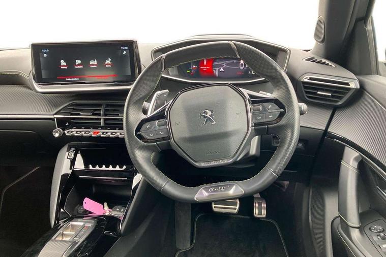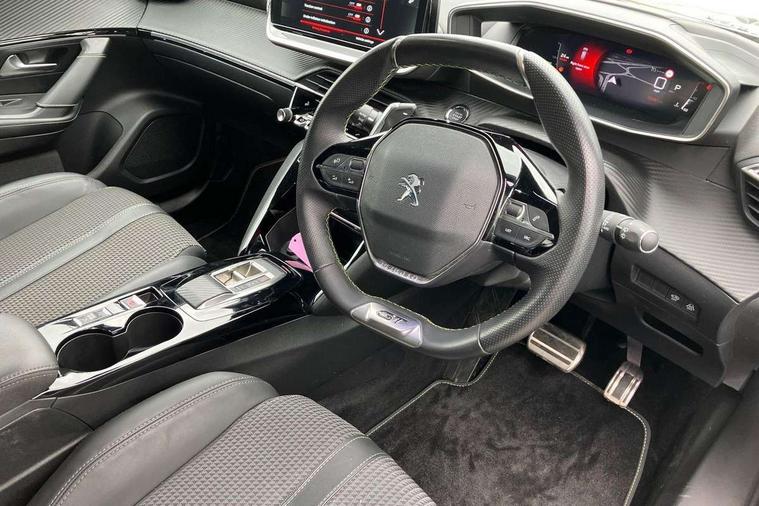 10" Capacitive colour touchscreen with connected 3D navigation, Bluetooth telephone facility, Driver attention warning, e-Toggle driving selector, Exterior temperature indicator with ice warning, Front and rear parking sensors, Mirror screen with mirror link, apple carplay and android auto, Multi function trip computer, PEUGEOT i-Cockpit with compact steering wheel, PEUGEOT i-Cockpit with configurable 3D headup instrument panel, PEUGEOT SOS and assistance, Smart phone docking station, Speed limit recognition and recommendation, Start/stop system, Visio Park 1 with 180 degree Colour reversing camera, 2 front USB socket with USB-C, 2 USB sockets in rear, 6 speakers radio with mp3 compatible, DAB Radio (Digital Audio Broadcasting), Voice recognition for radio, navigation and telephony features, 2 X Rear number plate lights, Acoustic windscreen, Automatic hazard light activation upon heavy brake application, Black diamond roof, Black front wing trim with gloss black detail and GT badging, Body coloured exterior door handles, Chrome Lion Badge front and rear, Dark tinted rear side and tailgate windows, Diamond black mirror shells, Diamond black rear spoiler (roof), Electric, heated, and power folding door mirrors, Frameless electrochrome interior rear view mirror, Front bumper - Silver lower trim, Front tinted windscreen, Full LED headlights with smartbeam assist, Gloss black finish on B pillar, Gloss black longitudinal roof rails, Gloss black rear cluster connecting strip, Gloss black roof bars, Gloss black window surround, GT model designation badging on tailgate, Headlights left on audible warning, LED daytime running lights with 3 claw headlight with distinctive tooth design, LED side indicator lights integrated into door mirrors, LED third brake light, Lower door protection with silver inserts, Model designation badges front and rear, One touch electric front/rear windows with pinch protection, Radiator grille - Dark chrome chequered and gloss black edge trim, Radiator grille - gloss black top edge trim, Rear full LED 3D peugeot signature claw effect lights with daylight function, Rear lower bumper gloss black diffuser effect trim, Rear reversing lights, Rear side wing doors, Rear windscreen wiper triggered automatically in reverse gear, Stainless steel door sill scuff plates, Tailgate with heated rear windscreen and wiper blade, Trailer Stability Programme, Twin chromed exhaust pipes, Variable front intermittent wipers, Welcome lighting, Wheel arch extensions, 1/3 to 2/3 split folding rear seats, 12v power outlet - front, 12V socket, 3 seat bench in 2nd row, 8 Colour personalisable ambient lighting, Aluminium pedals, Automatic air conditioning with pollen and active carbon filter, Central front armrest with storage compartment, Driver and front passenger dynamic seats, Electric power steering with reach and rake adjustable steering column, Front and rear carpet mats in black with lime green stitch detail, Front LED interior light with 2 reading spotlights and rear interior light with timer, Front passenger seat manual adjustment - height, longitudinal and back rest angle, Heated front seats, High centre console with 2 cup holders, ISOFIX child seat mounting points on passenger seat, Lime green contrast stitching to front centre console, door panels and dashboard facia, Map pockets on front seat backs, Mistral full-grain perforated leather steering wheel with Lime Green stitch detail and satin chrome 'GT' emblem, Modular boot floor, Multifunction steering wheel, Paddle shifts, Piano keys: Gloss black and chrome toggle switches to access main functions of the vehicle and touchscreen functions, Roof lining - Mistral black, Seatbelt unfastened on the move audible and visual alert for front and rear seats, Single front passenger seat, Switch for Push Button Start finished in black with chrome surround, Visibility pack - 2008, 2x 2nd row ISOFIX child seat mountings, ABS (Anti-lock Braking System) with EBD (Electronic Brakeforce Distribution) and EBA (Emergency Braking Assistance), Acoustic vehicle alerting system, Active safety brake with night function/cyclists/pedestrians, Adaptive driver and front passenger airbags with passenger airbag deactivation function, Child locking functionality on rear doors, Driver/front passenger side airbags, Electric parking brake, ESP (Electronic Stability Program) + Hill Start Assist, Front and rear curtain airbags, Front and rear disc brakes, Front and rear three-point retractable seatbelts, with force limiters, Front optimised safety headrests and rear retractable headrests (x3), height adjustable, Tyre pressure sensor, Alarm system with anti-lift sensor, Automatic door locking when moving off, Deadlocks, Electronic code immobiliser, Exterior door lock x1 (Left-hand or passenger’s side), Remote central locking, Carbon effect Dashboard, front and rear door panel finish,