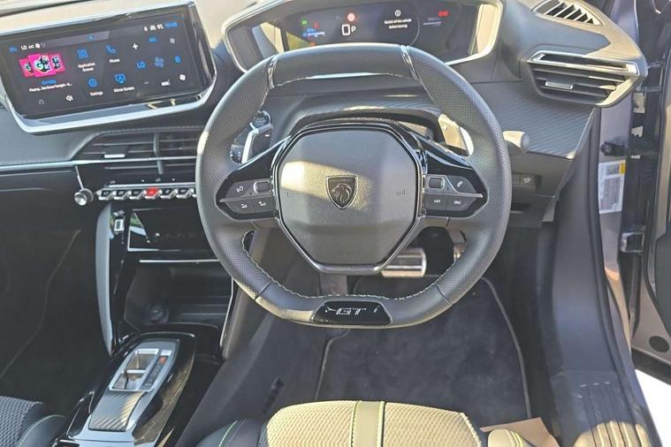 Bluetooth telephone facility, Driver attention warning, E-call, Exterior temperature indicator with ice warning, Front and rear parking sensors, Multi function trip computer, PEUGEOT i-Cockpit with 10" high definition capacitive touchscreen, PEUGEOT i-Cockpit with compact steering wheel, PEUGEOT i-Cockpit with configurable 3D headup instrument panel, PEUGEOT SOS and assistance, Speed limit recognition and recommendation, Wireless mirror screen with mirror link, apple carplay and android auto, Petrol Particulate Filter, 1x USB-C socket in rear and 1x USB-A socket in rear, 2 USB-C ports in the front, 6 speakers radio with mp3 compatible, DAB Radio (Digital Audio Broadcasting), Voice recognition for radio, navigation and telephony features, 2 X Rear number plate lights, Aluminium door sill scuff plates with peugeot lettering, Automatic hazard light activation upon heavy brake application, Black diamond roof, Black front wing trim with gloss black detail and GT badging, Body coloured exterior door handles, Dark tinted rear side and tailgate windows, Diamond black mirror shells, Diamond black rear roof spoiler, Electric, heated, and power folding door mirrors, Frameless electrochrome interior rear view mirror, Front bumper - Meteor grey lower trim, Full LED headlights with smartbeam assist with auto height adjustment, Gloss black finish on B pillar, Gloss black rear cluster connecting strip, Gloss black roof bars, Gloss black window surround, GT model designation badging on tailgate, Headlights left on audible warning, LED daytime running lights with distinctive 3 claw signature, LED side indicator lights integrated into door mirrors, LED third brake light, Model designation badges front and rear, One touch electric front/rear windows with pinch protection, Radiator grille - body coloured vertical chequered grille, Radiator grille - gloss black top edge trim, Rear full LED 3D peugeot signature claw effect lights with daylight function, Rear reversing lights, Rear side wing doors, Rear windscreen wiper triggered automatically in reverse gear, Reinforcement of the front bumper, Tailgate with heated rear windscreen and wiper blade, Twin chromed exhaust pipes, Wheel arch extensions, 1/3 to 2/3 split folding rear seats, 12V socket, 3 seat bench in 2nd row, 8 Colour personalisable ambient lighting, Automatic air conditioning with pollen and active carbon filter, Central front armrest with storage compartment, Driver and front passenger sport seats, Electric power steering with reach and rake adjustable steering column, Front and rear carpet mats in black, Front LED interior light with 2 reading spotlights and rear interior light with timer, Front passenger seat manual adjustment - height, longitudinal and back rest angle, High centre console, ISOFIX child seat mounting points on passenger seat, Mistral full-grain perforated leather steering wheel with Lime Green stitch detail and satin chrome 'GT' emblem, Multifunction steering wheel, Piano keys: Gloss black and chrome toggle switches to access main functions of the vehicle and touchscreen functions, Roof lining - Mistral black, Seatbelt unfastened on the move audible and visual alert for front and rear seats, Single front passenger seat, Two position modular boot floor, Visibility pack - 2008, 2x 2nd row ISOFIX child seat mountings, ABS (Anti-lock Braking System) with EBD (Electronic Brakeforce Distribution) and EBA (Emergency Braking Assistance), Active safety brake with night function/cyclists/pedestrians, Adaptive driver and front passenger airbags with passenger airbag deactivation function, Advanced emergency braking system (AEB) with enhanced camera with the high beam and radar, Child locking functionality on rear doors, Driver/front passenger side airbags, Electric parking brake, ESP (Electronic Stability Program) + Hill Start Assist, Front and rear curtain airbags, Front and rear disc brakes, Front and rear three-point retractable seatbelts, with force limiters, Front optimised safety headrests and rear retractable headrests (x3), height adjustable, Tyre pressure sensor, Automatic door locking when moving off, Deadlocks, Electronic code immobiliser, Thatcham category 1 alarm, Carbon effect Dashboard, front and rear door panel finish,