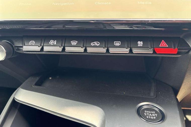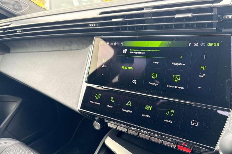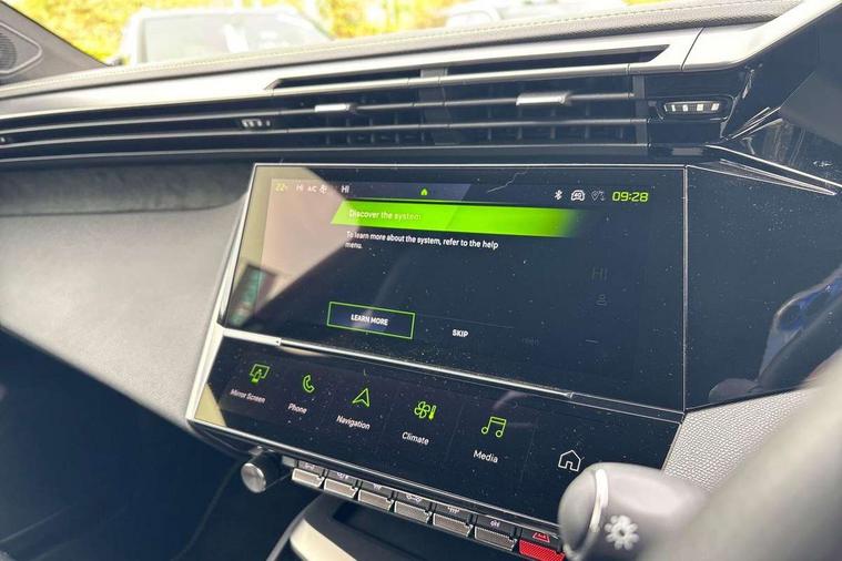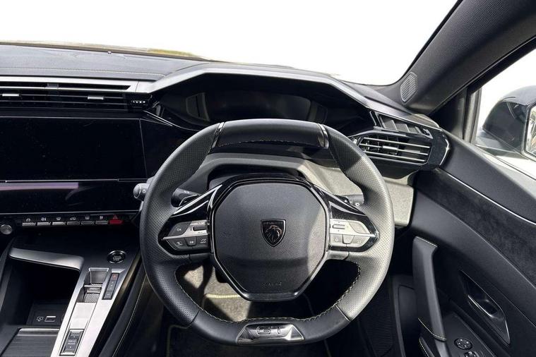 Bluetooth telephone facility, Compact automatic gearbox impulse selector, Driver attention warning, Driver's profile setting, Emergency call service, Extended traffic sign recognition, Exterior temperature indicator with ice warning, Front and rear parking sensors, Intelligent speed adaptation, Lane keep assist, Multi driving mode selector - Eco / Normal / Sport mode selector, Multi function trip computer, PEUGEOT i-Cockpit with 10.0" high definition (HD) capacitive touchscreen, PEUGEOT i-Cockpit with compact steering wheel, PEUGEOT i-Connect Advanced - Over the air updates, PEUGEOT SOS and assistance, Push button start, Speed limit recognition and recommendation, Wifi and voice recognition, Wireless apple car play/android Auto, 2x USB sockets in front, 2x USB sockets in rear, DAB Digital radio, PEUGEOT i-Cockpit with PEUGEOT configurable i-Toggles, 3rd brake light, 408 Model designation badges on front and rear, Acoustic laminated front windows, Acoustic tinted windscreen, Automatic hazard light activation upon heavy brake application, Body colour door handles, Body colour rear spoiler, Dark tinted rear side and tailgate windows, Electric, heated, and power folding door mirrors, Electrochrome rear view mirror, Front and rear electric windows with one touch/anti pinch, Front grille with vertical body colour stamping, Full LED matrix headlights with automatic adjustment, Gloss black finish B pillar, Gloss black rear cluster connecting strip, High beam assist, LED rear number plate lights, LED side indicator lights integrated into door mirrors, Lower body and wheel arch "SUV style" protection, Nera black door mirrors, PEUGEOT shield on front doors, PEUGEOT signature LED front daytime running lights incorporating indicators, Rear bumper grained black, Rear full LED 3D Peugeot new claw effect lights with sequential welcome sequence upon unlocking the vehicle, Rear Hybrid badging, Rear reversing lights, Rear side wing doors, Roof mounted 'fin' style antenna, Smart electric tailgate, Tailgate with heated rear windscreen and wiper blade, 1/3 2/3 'Magic Flat' folding rear seats with controls located in the boot, 2x 12V sockets, 3 seat bench in 2nd row, 4 Grab handles retractable and damped, 8 Colour personalisable ambient lighting, Aluminium door sills and boot sill, Aluminium pedals and footrest, Arch design central console with storage, Central front armrest with storage compartment, Dual Zone automatic air conditioning with AQS 3, Dynamic front seats, Electric power steering with reach and rake adjustable steering column, Front central console with two cup holders, Gloss black waistbelt (window weather strips), Glovebox with LED lighting, Heated steering wheel, High air vent system, Luggage cover, Luxury carpet mats with adamite green stitching, Multifunction full grain leather steering wheel with admite green stitching & GT badging, Piano keys toggle switches to access main functions, Roof lining - Mistral black, Seatbelt unfastened on the move audible and visual alert for front and rear seats, Single front passenger seat, Ski hatch with central rear armrest with cup holder, Steering wheel mounted gearshift paddles, Sunvisor with concealable vanity mirrors with LED lighting, Driver Sport Pack - 408, Visibility pack - 408, 2x Isofix child seat fitting on outer rear seats, 3x3 point rear seat belts, ABS + EBD + EBA, Active safety brake with night function/cyclists/pedestrians, Adaptive driver and front passenger airbags with passenger airbag deactivation function, Advanced emergency braking system (Video - AEB) includes Radar, Automatic post collision braking, Child locks on rear doors, Driver/front passenger side airbags, Electronic parking brake, ESP, Front and outer rear seatbelts with pyrotechnic pretensioners, Front and rear curtain airbags, Front and rear disc brakes, Front optimised safety headrests and rear retractable headrests (x3), height adjustable, Front three point retractable seatbelts with force limiters, Hill start assist, Tyre under inflation monitoring and indirect detection with visual indicator and warning sound, 2x keys, Acoustic vehicle alert system (AVAS), Anti-theft wheel bolts, Automatic door locking when moving off, Deadlocking system, Electronic code immobiliser, Locking wheel nuts, Peugeot open and go system includes keyless entry with proximity locking and unlocking, Thatcham cat. 1 alarm with anti lift sensor, 19" Graphite diamond cut alloy wheels in Onyx black gloss, Alloy wheel 'star' centre cap,