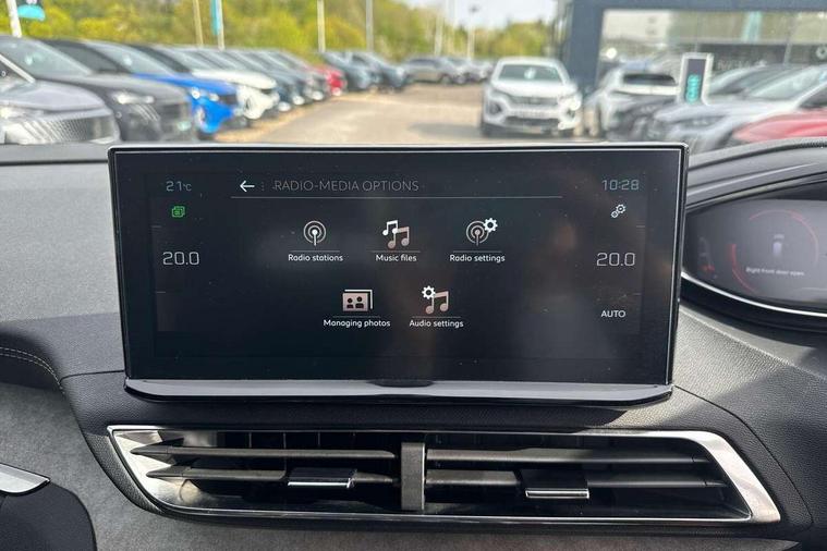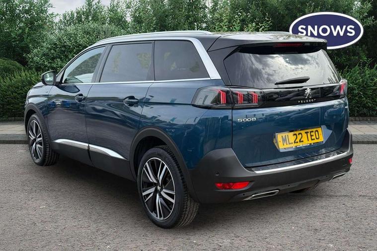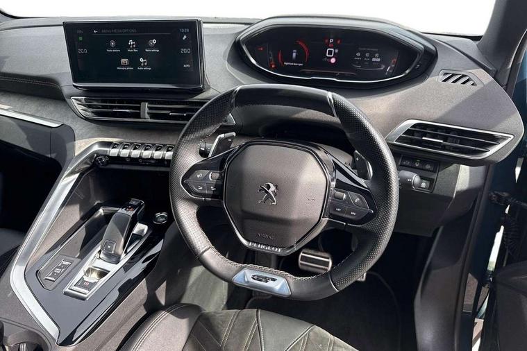 10" High Definition Capacitive Touchscreen, 3D connected navigation + voice control, Bluetooth telephone connection, Drive mode selector (Eco, Normal and Power), Driving timer alert system, Emergency services call system, Extended traffic sign recognition, Exterior temperature indicator with ice warning, Lane departure warning system, Mirror screen with Apple CarPlay and Android auto, Motorised Electric Tailgate (key plip and foot operated), Multi function trip computer, Passive blind spot monitoring without Steering correction, Peugeot i-cockpit with configurable 12.3" headup digital instrumental panel and compact sports steering wheel, PEUGEOT SOS and assistance, Rear passenger USB charging sockets (x2) (type A), Speed limit recognition and recommendation, Sports button, Voice recognition for radio and telephone, Dynamic stability control and electronic anti-skid system, Bi Tuner radio including DAB, Focal premium HiFi sound system, USB socket, Auto self levelling headlights, Automatic activation of hazard warning lights, Black diamond roof and nera black door mirror shells, Body colour door handles, Body coloured rear spoiler, Body protectors in black, Chrome side window trim, Dark tinted rear side and tailgate windows, Door mirrors with auto dipping function in reverse gear, Dynamic frameless design in front radiator grille, Electric folding door mirrors with exterior courtesy LED lighting, Electrically heated door mirrors, FOCAL tweeter speaker grilles in 'belem bronze metal effect finish, Frameless electrochrome rear view mirror, Front windscreen wiper with magic wash cleaning system, Full LED headlights with fog mode, Gloss black B and C pillar and aerodynamic deflector trim, Gloss black rear cluster connecting strip, GT emblem (front wings and tailgate), Headlights left on audible warning, Heated rear windscreen with integrated antenna, LED daytime running lights in fang style, LED front indicator, LED rear lights including reversing lights, scrolling indicators and PEUGEOT '3Claw Effect' light signature (with daylight function), LED rear number plate lighting, LED side indicator lights integrated into door mirrors, LED third brake light, One touch electric front/rear windows with pinch protection, Rear side wing doors, Rear windscreen wiper with auto activation when reversing, Silver front lower bumper, Twin exhaust effect trim, 2 cupholders in front centre console, 2 separate seats in 3rd row, 3 bench rear seats in 2nd row, 3 x 12V power sockets, 4 Grab handles retractable and damped, Aikinite stitching in armrest, gear lever and dashboard facia, Aluminium pedals, Automatic and dual zone diffusion air conditioning system, Blue ambient lighting for connecting zone, Blue ambient lighting to front door panels, central storage and cupholders, Blue ambient lighting to head up instrument panel, Brumeo fabric trimmed door armrests, Central front armrest with butterfly wing opening, Tramontane double stitching and illuminated storage compartment, Electric power steering with reach and rake adjustable steering column, Flocked front door pocket interior with blue ambient lighting, Flocked glovebox interior, Fold flat front passenger seat with picnic table, Footwell lighting, Front ambient lighting, Front interior light with reading spotlights (x2), row 2 interior light with reading spotlights (x2), Front passenger seat manual adjustment (longitudinal and back rest angle), Gear shift indicator, Height adjustable driver seat, Height adjustable passenger seat, Illuminated glovebox, Illuminated vanity mirror, Isofix child seat fittings x 3 in the second row, LED interior lighting, Map pocket on front seat backs, Mistral floor mats with Aikinite contrast stitching, Mistral full grain perforated leather steering wheel with aikinite stitch detail and satin chrome 'GT' emblem, Rear ventilation system, Retractable parcel shelf, Roof lining and windscreen pillars in Mistral black, Satin chrome digital instrument panel and touchscreen trim, Satin chrome front door panel recess trim, Satin chrome interior door handles, Satin chrome scorpion's tail and toggle switch trim, Seatbelt not fastened audible and visual alert for front seats, Seatbelt unfastened on the move audible and visual alert for front and rear seats, Single front passenger seat, Third row seats (can be stored under bootfloor or removed completely), Twin rear coat hooks, Children's pack - 5008, Drive Assist Plus Pack - 5008, Driver sport pack - 5008, Visibility pack - 5008, Visio Park 2 pack - 5008, ABS + EBD + EBA, Adaptive driver and front passenger airbags including passenger airbag deactivation function, Electronic parking brake, ESP and ASR traction control with deactivation switch, Five 3 point rear safety belts, Front and rear curtain airbags, Front optimised safety headrests and rear retractable headrests (x3), height adjustable, Front side airbags, Front three point retractable seatbelts height adjustable with pre tensioners and force limiters, Front ventilated disc brakes, Hill start assist, Manual child lock in rear doors, Rear disc brakes, Rear three-point retractable seatbelts (x3) with pre-tensioners and force limiters in the outer rear seats, Two tone horn, Automatic door locking when moving off, Child lock control of rear doors and windows, Electronic code immobiliser, key operated exterior door lock from the left hand door, Keyless start, Perimetric and volumetric alarm with lift and tilt sensor, Peugeot Open and Go System, Remote control central locking with two plip keys, Satin chrome dash trim, Puncture repair kit including compressor, sealant cartridge and towing eye,