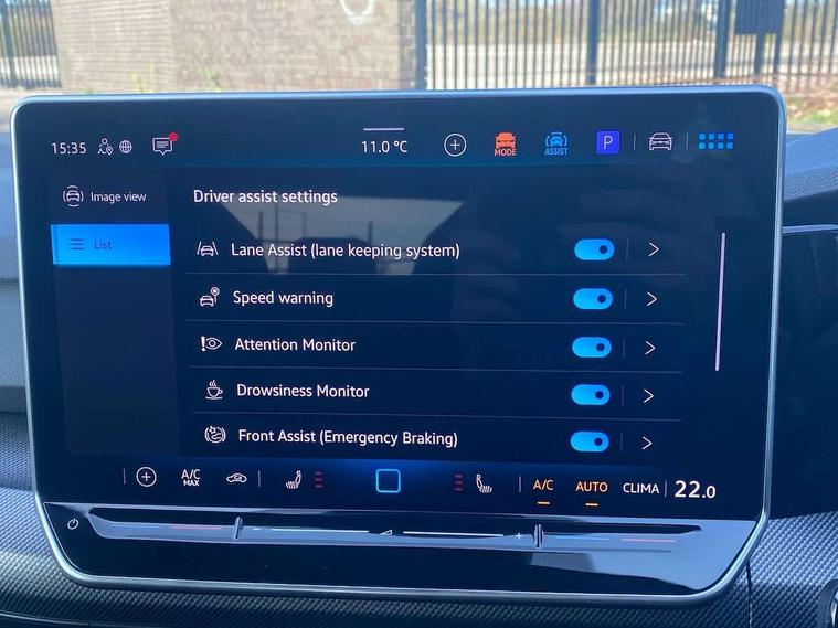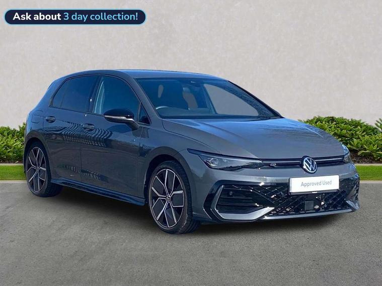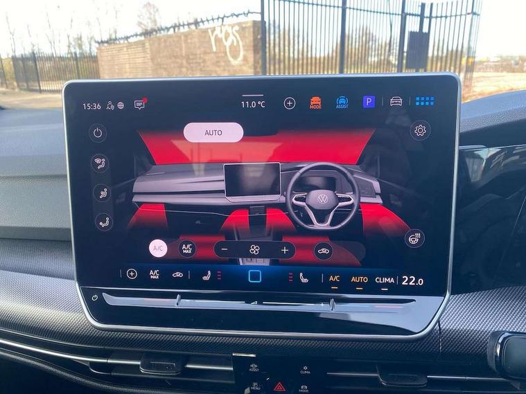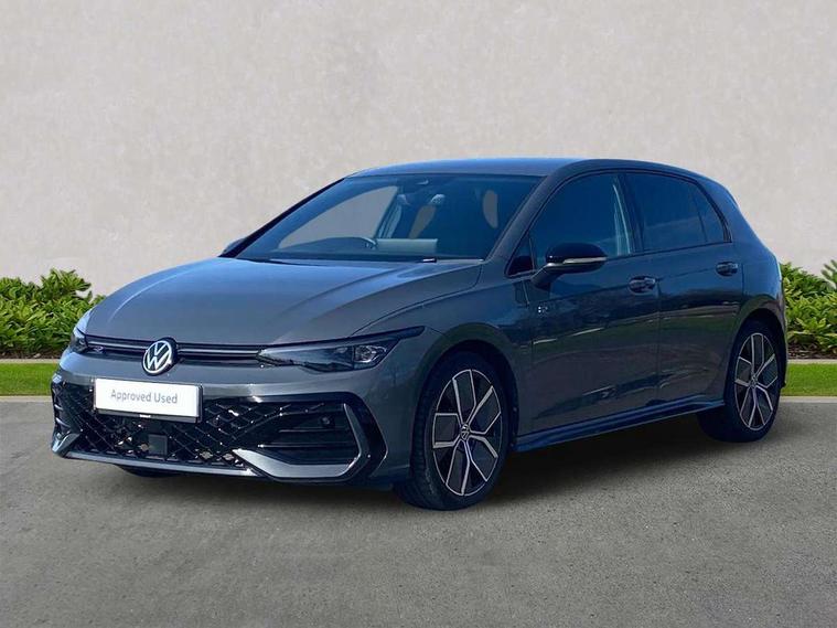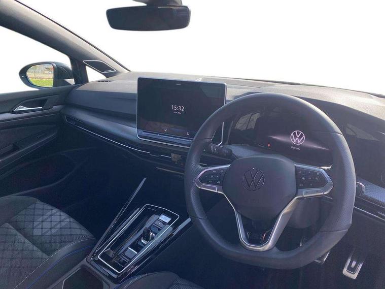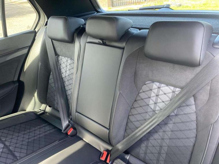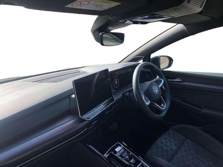 Activated carbon canister, Adaptive cruise control (ACC), Advanced driver attention and drowsiness monitor, Dynamic road sign display, Dynamic steering, E-Sim card for online connectivity, eCall emergency call system, Multi-color Digital cockpit pro, selection of different info profile possible, Multifunction front facing camera for distance control, Navigation system, Oncoming vehicle braking when turning including swerve support, Speed limiter, Speedo, rev counter, electronic odometer, trip, service interval display, exterior temperature and fuel gauge, Traffic jam assist, Voice enhancer and voice control, Warning signal and warning light for front and rear seatbelts not fastened, We connect plus preparation, We connect preparation, Wireless app connect, Hybrid propulsion system, Petrol Particulate Filter, Start-stop system with battery regeneration (recuperation - energy recovery during braking), XDS electronic differential lock for improved traction and handling, 2 USB C ports in front, 2 USB charging sockets on the centre console in the rear charging capacity upto 45W, Digital radio reception (DAB), Diversity antenna for FM reception, Gaming platform via car app, Infotainment system with 12.9" display, Mobile phone interface with inductive charging feature, 3rd brake light, Auto dimming rear view mirror, Automatic headlamp activation with Coming home and Leaving home feature, Body colored bumpers in R-Line style, Body colour door handles, Exterior ambient lighting, Exterior mirrors convex on the left and aspherical on the right, Front and rear electric windows, Heat insulating windshield made of laminated glass, LED separate daytime running light, Rain sensor, Rear exhaust tailpipe, Rear fog light on one side and reversing lights on both sides, Rear side wing doors, Rear windscreen washer and wiper with interval delay, Remote electrically foldable door mirrors, puddle lights and reverse activated passenger's door mirror, Volkswagen logo in front, illuminated lighting animation with wake up/goodbye scenario and illuminated door handles, Welcome light with surround lighting, 12V socket in front centre console, 12V socket in luggage compartment, 3 rear head restraints, 3 seat bench in 2nd row, Ambient lighting with 30 colour including LED light unit in front footwell with selectable light colour, Black roof lining, Brushed stainless steel pedals, Chrome plated radiator grille inserts, air vent surrounds and light switch surrounds, Door insert, side trim panel and arm support in leatherette, Front + rear black carpet mats, Front centre armrest, Front seat lumbar support adjuster, Integrated front head restraints, ISOFIX anchors for child seats on outer rear bench seats and on front passanger seat compatible for i-Size, Luggage compartment lighting, Manual height adjustable front passenger seat, Manually height adjustable driver seat, Plastic gear knob, Premium sports seats in front, Rear cupholder and loadthough, Sardegna cloth upholstery with front and outer rear seats Art Velour inner sides of bolsters, Single front passenger seat, Split folding backrest with centre armrest and unsplit rear seat bench, Sun visors with illuminated vanity mirrors, Titanium black instrument panel, Black exterior Styling package with Matrix LED headlights - Golf, Winter package - Golf DSG Estate/Hatchback, 3 point height adj front seatbelts + pretensioners, 3 rear three point seatbelts, ABS, Autonomous emergency braking front assist with pedestrian and cyclist monitoring, Child locks on rear doors, Driver and front passenger airbag with front passenger airbag deactivation, Electronic parking brake with auto hold, ESC (Electronic Stability Control), Extended pedestrian protection measures, Hill start assist, Rear disc brakes, Two tone horn, Tyre pressure loss indicator, Volkswagen roadside assistance, Anti theft wheel bolts, Preparation for alcohol interlock, Decorative inserts carbon grey for dashboard and front door trim panels, 18" Leeds alloy wheels, Tool kit for tyre mobility set, Tyre mobility kit Includes 12V compressor and tyre sealant,