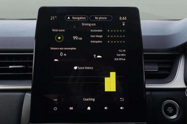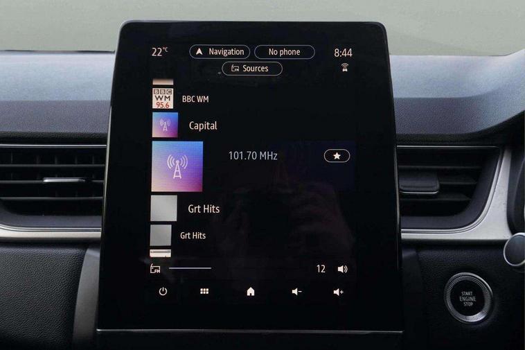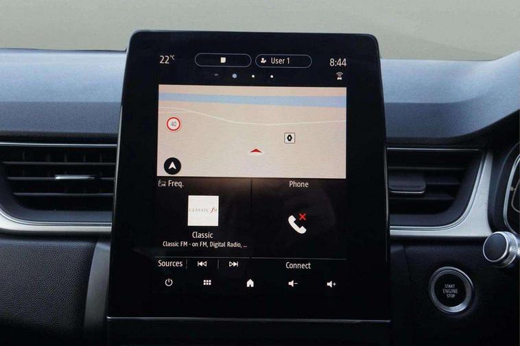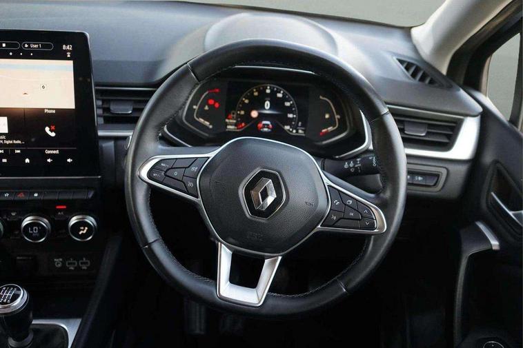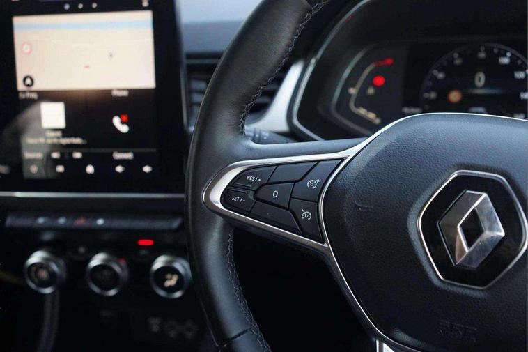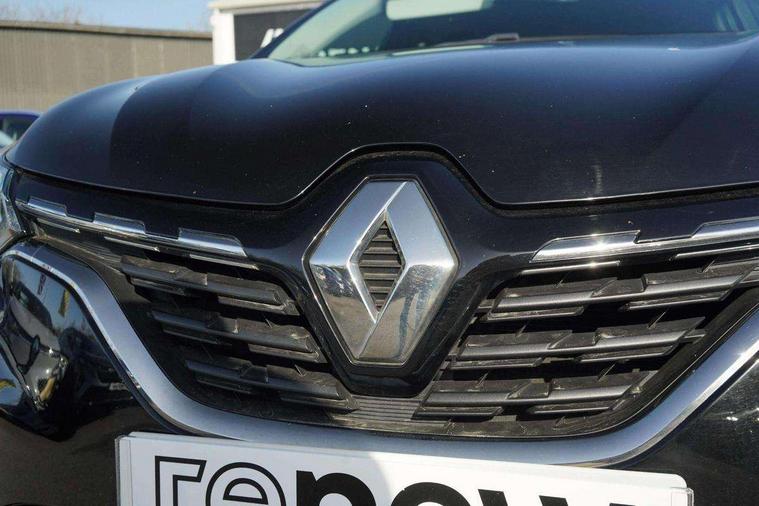 Blind spot warning, Cruise control + speed limiter, eCall emergency call system, Eco mode, Front and rear parking sensors with rear view camera, Gear change indicator, Lane departure warning system, Lane keep assist, Multisense system - Ambient lighting and Driving mode selector, Renault automatic emergency assist, Traffic sign recognition, Trip computer, Variable assistance power steering, Wireless Mobile Phone Charger, EasyLink Nav 9.3" touchscreen, 4x20W amp, FM DAB, sound auditorium, 2xUSB, 1xJack, Bluetooth, smartphone integration plus, Apple carplay/Android auto, Auto dimming rear view mirror, Automatic front wipers with rain sensors, Automatic headlights, Automatic high beam - AHB, Body colour door handles, Body coloured bumpers, Body coloured door mirrors, Electric adjustable/heated/folding door mirrors, Electric front windows + one touch + anti-pinch, Electric rear windows, Extra tinted glass in rear windows and tailgate, Full C-shape LED front and rear signature lighting with daytime running lights at the front and at the rear, Gloss black side door protection with chrome effect, LED front fog lights, Rear fog lights, Rear wiper, Roof bars, Shark fin antenna, Variable speed on front windscreen wipers, 12V Accessory socket, 3 rear headrests, 5.2L front glovebox, 60/40 split folding rear seat bench, Automatic climate control with one touch demist function, Centre console storage tray, Front head restraints, Heating system with pollen filter, Height adjustable driver's seat, Height/reach adjust steering wheel, ISOFIX child seat fixing points on rear outermost seats, Leather steering wheel, Middle console with armrest and storage, Rear air vents, 3 rear seatbelts, ABS+EBA, AEBS, Distance warning alert, Driver and front passenger, side, head and curtain airbags, Driver height adjustable seat belt, Electric parking brake with auto hold function, Electronic stability control, Front and rear no seatbelt warning sound, Front dash warning indicator in case of heavy braking, Front driver and passenger side airbag deactivation, Hill start assist, Rear door and window child locking function for rear door, Tyre pressure warning light, Anti drill door locks and locking fuel cap, Deadlocking system, Hands free keycard with push button and start/stop function, RAID (Renault Anti-Intruder Device) automatic door locking, Remote central locking with thatcham approved immobiliser, Black soft touch dashboard with black gloss air vent surrounds,