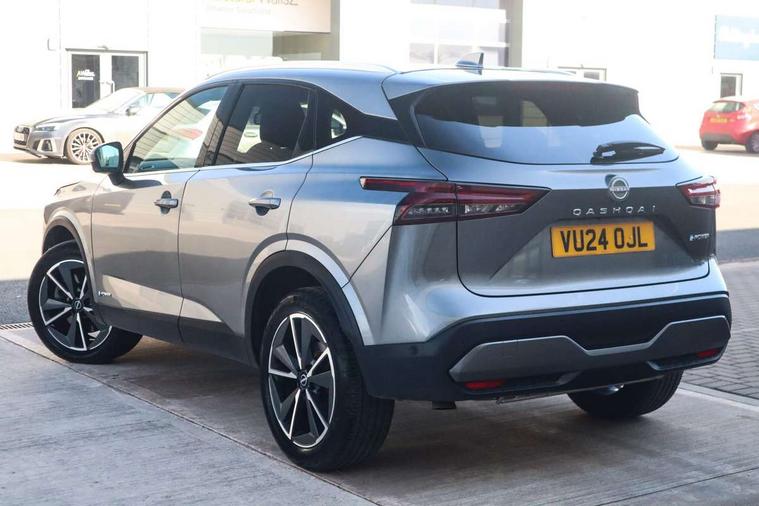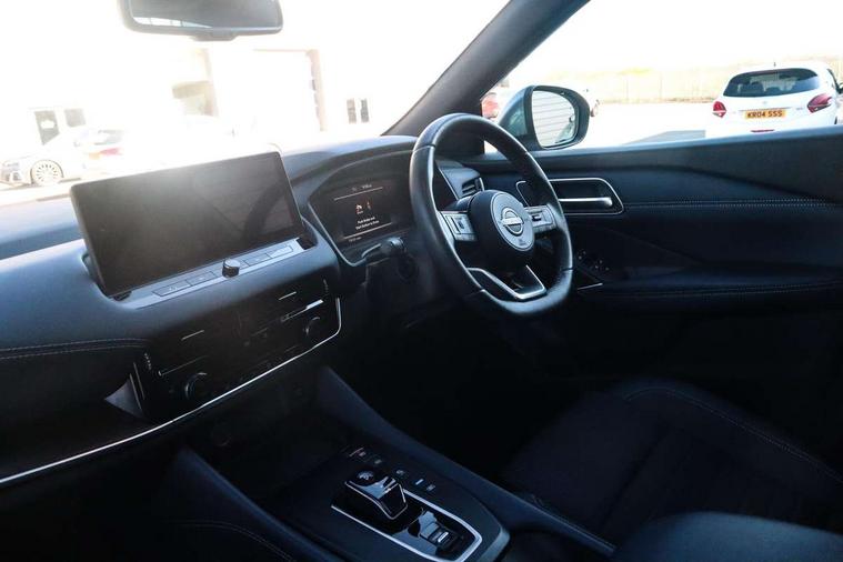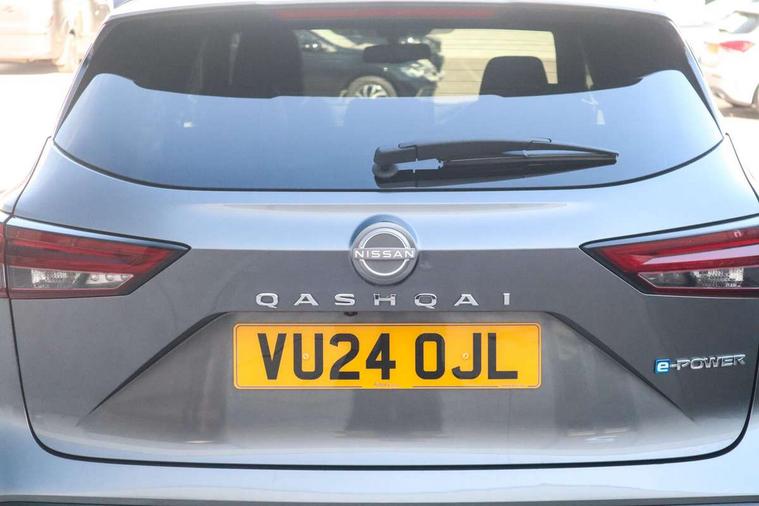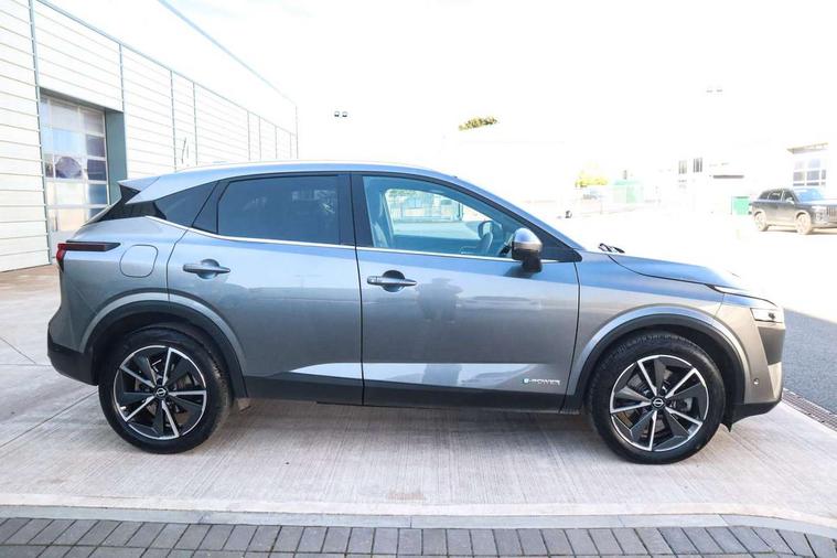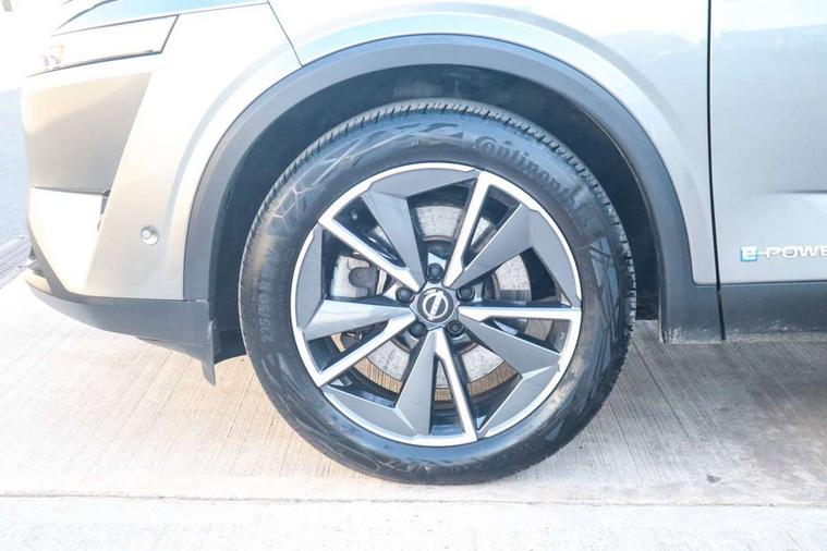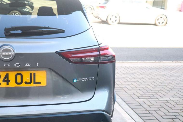 Advanced windscreen head up display, Blind spot warning, Drive modes (sport, normal, eco), e-Pedal step, Electric speed sensitive power steering, Emergency and breakdown call, Front and rear parking sensors, Full Digital 12.3" TFT Digital Combimeter, Google maps services - search, weather, 3D maps and Google street view, Hands free power tailgate, Idle stop/start system, Intelligent around view monitor, Intelligent Cruise control (ICC), Intelligent driver alert system, Intelligent forward collision warning, Intelligent lane intervention, Lane departure prevention, Lane departure warning system, Lane keep assist, Moving object detection, Nissan connect 12.3 inch touchscreen infotainment system, Nissan connect navigation, ProPILOT with Navi-Link, Push button starter, Rear cross traffic alert, Rear view camera, Remote control services - door locks, lights, horn and car locator, Telematics - notifications and connectivity services, TomTom live traffic services, Traffic sign recognition with legal speed adjustment, Trip computer, Virtual personal assistant and firmware over the air capability, Wireless Apple CarPlay and wired Android Auto, Wireless charging pad, 6 speakers, AM/FM audio system with DAB, Bluetooth audio streaming, Front USB connections (Type-A and Type-C), Rear USB charging only ports (Type-A and Type-C), Auto dimming rear view mirror, Auto rear wiper when reversing, Automatic hazard signal with emergency stop signal, Body colour mirror caps, Body coloured door handles, Bodyside mouldings, Chrome side window finisher, Door handle with button, e-POWER badging, Electric auto folding door mirrors, Electrically adjustable and heated door mirrors with LED turn indicator, Follow me home headlights, Front and rear LED turning signals, Headlights auto levelling system, Intelligent auto headlights, LED 3rd brake light, LED daytime running lights, LED headlights with adaptive driving beam, LED rear lights, One touch front and rear electric windows with remote opening and closing, Partially body coloured bumpers, Privacy glass, Rear bumper with graphite insert, Rear reversing light (bulb lighting), Rear roof spoiler, Rear side wing doors, Rear styling plate, Shark fin antenna, Splash free rain sensing wipers, Super UV and infrared cut glass, Thermaclear heated windscreen, Three blink turn signal, 12v power socket in dashboard and luggage, 2x Rear coat hooks, 3 bench rear seats in 2nd row, 3 rear headrests, 4 folding assist grip, 6 Luggage hooks - 4 on floor, 2 on side, 60/40 split folding rear seat bench, Ambient lighting around centre console, Ambient lighting in front doors, Centre console storage tray, Chrome interior door handles, Cloth/syntech leather monoform upholstery, Dark black/blueish PVC wrapping, Dark headlining, Driver and front passenger sunvisors with illuminated vanity mirrors, Driver seat back pocket, Dual zone automatic climate control with pollen filter, e-POWER shifter, Electrically adjustable driver seat, Electrically adjustable lumbar support for driver, Front and rear door storage, Front centre console and armrest, Front cupholders x 2, Front door with bottle holders, Glovebox with light, Hard trunk cover, Heated front seats, Heated steering wheel, Height adjustable driver's seat, Height adjustable front headrests, Height adjustable passenger seat, Leather steering wheel, Luggage board system, Luggage space lighting, Manual lumbar support on passenger seat, Manually adjustable passenger (slide recline + lifter), Multifunction steering wheel, Passenger seat back pocket, Rear armrest with 2 cupholders, Rear door bottle holders, Single front passenger seat, Soft PVC kneepad, Steering wheel switches, Tilt/telescopic adjustable steering wheel, Two rear isofix child seat anchorage points with top tether, Welcome light and doors with console tray ambient lighting, Glass roof pack with roof rails - Qashqai, 3x3 point rear seatbelt pretensioners + load limiters, ABS with EBD and brake assist, Active brake limited slip, Auto hold function, Child locks on rear doors, Curtain and front side, far side airbags, Driver and passenger airbags, Driver, passenger and 2nd row rear seat belt reminder, Electronic parking brake, Front seatbelt pretensioners + load limiters, Height adjustable front seatbelts, Hill start assist, Intelligent blind spot intervention, Intelligent front emergency braking with pedestrian, cyclist recognition and junction assist, Intelligent rear automatic braking, Tyre pressure monitoring system, Vehicle dynamic control, Capless fuel filler, Engine immobiliser, Intelligent Key, Remote central door locking with deadlocking, Thatcham Cat.1 alarm, Interior instrumental panel C finisher, 19" Diamond cut alloy wheels, Tyre puncture repair kit,