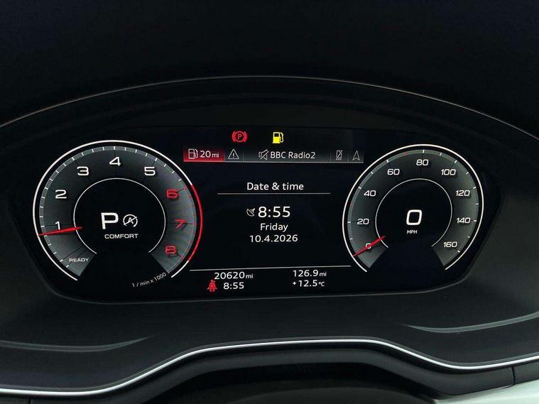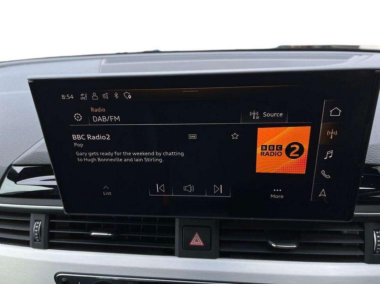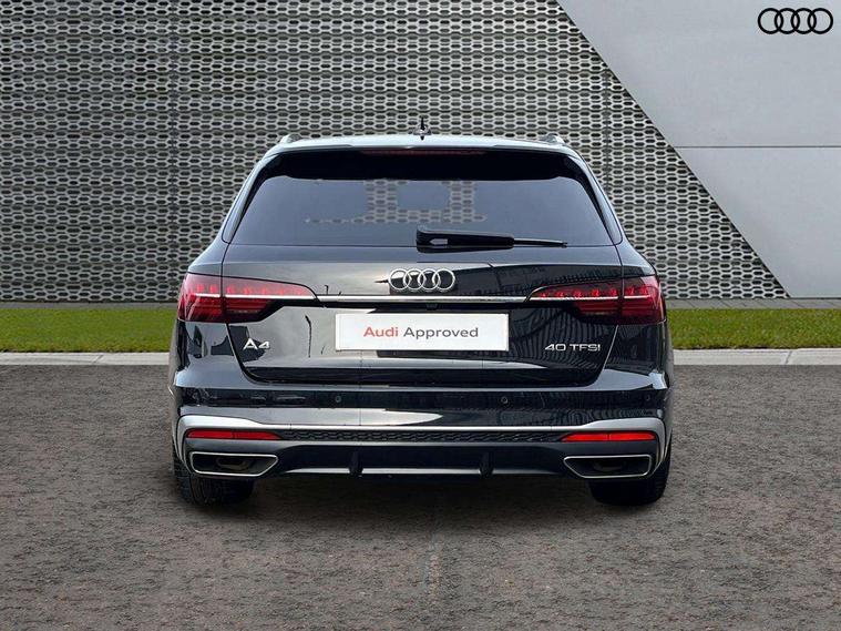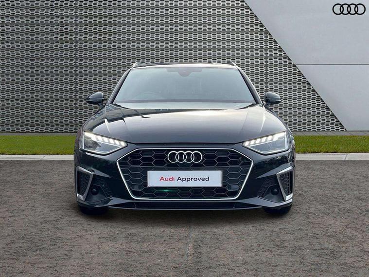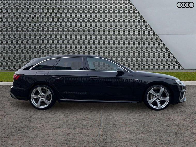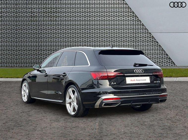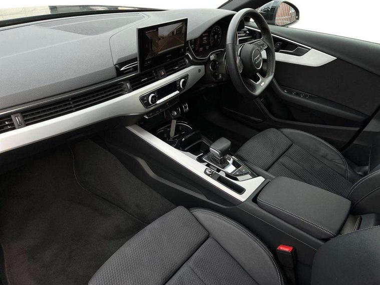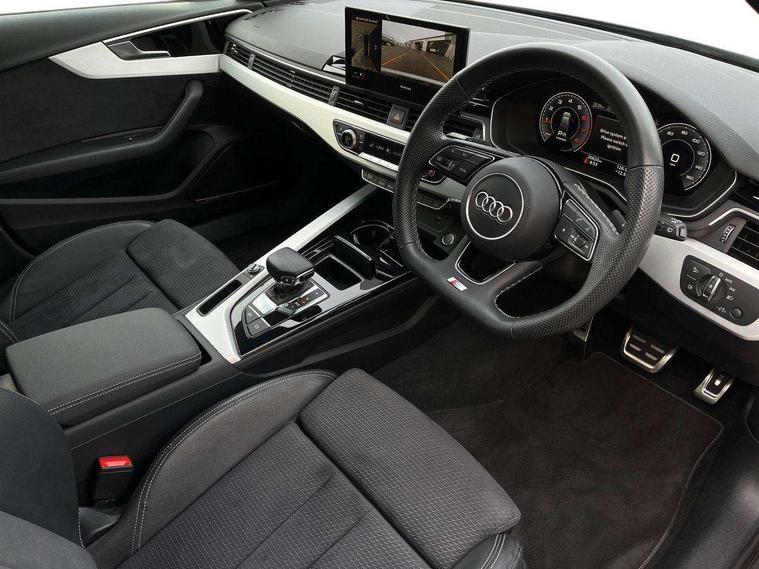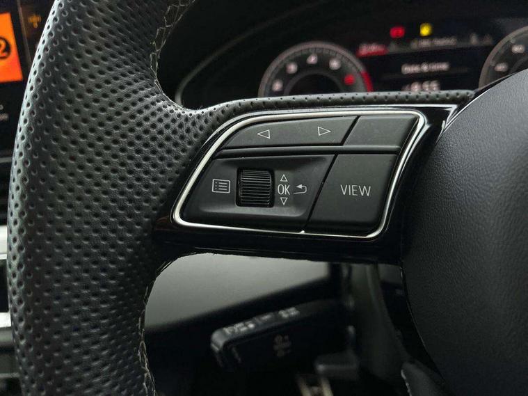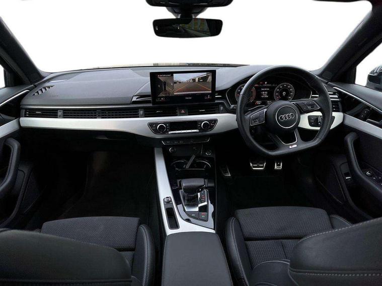 Audi connect safety and service (e-call), Audi connect with Amazon Alexa Integration, Audi drive select, Audi smartphone interface, Audi virtual cockpit, Automatic start-stop system with coasting functionality and efficiency programme, Bluetooth interface, Electromechanical power steering, Email, calendar and text messages displayed via MMI, MMI Navigation plus with MMI touch includes 10.1" high resolution colour MMI display, 3D map, Power operated tailgate, Voice control system, 54 litre fuel tank, Sports suspension lowered by 23mm, 2 USB charging ports, 8 passive loudspeakers, DAB digital radio reception, Aluminium roof rails, Auto dimming rear view mirror, Body colour door handles, Body colour front spoiler lip, Body colour side sill trim, Body coloured door mirrors, Electrically folding auto dimming/adjustable/heated door mirrors with LED side indicators and kerb view function for passenger side, Grained matt black side air inlets with matt aluminium silver inlay, High beam assistant, Honeycomb structure radiator grille in grained matt black, LED headlights with LED rear lights + dynamic rear indicators + headlight adjustment and high beam, turning light + LED daytime running lights, LED third brake light, Matt aluminium silver tailpipe trim, Privacy glass, Rain and light sensors, Rear side wing doors, Rear wiper, S Line badges on the front wings, S line front and rear bumpers with side skirts, S Line rear diffuser in matt anthracite black with trim strip in matt aluminium silver, S Line roof edge spoiler, Variable intermittent front wash/wipe, Windscreen with acoustic glazing, 3 spoke high multi-function sports leather steering wheel grips in perforated leather with S badging including paddle shift, 4 way electric lumbar support for driver and front passenger, 40/20/40 split folding 3 rear seat bench in 3 parts with rear centre armrest, Black cloth headlining, Black perforated leather gearknob, Contrast stitching on seats, steering wheel and gear lever gaiter, Deluxe 3 zone electronic climate control, Door sill trims with aluminium inlay, Electric load area cover, Front and rear head restraints, Front centre armrest, Heated front seats, Illuminated door sill trims with S logo, ISOFIX child seat mounting and top tether, Manual seat adjustment, Single front passenger seat, Stainless steel pedals and foot rest, Tool kit, High gloss package - A4, LED Interior light pack - A4/S4, 3 rear seatbelts, 6 airbags - Driver, front passenger, curtain and side windows, Electronic Stabilisation Control (ESC) including ABS, ASR and EDL, Hill hold assist, Multi collision brake assist, Pop-up bonnet for pedestrian protection, Pre sense city, Rear door child safety locks, Seatbelt monitoring, Warning triangle and first aid kit, Anti theft alarm, Anti theft wheel bolts, Central locking, Keyless Go, Matt brushed aluminium inlays, Tyre repair kit,