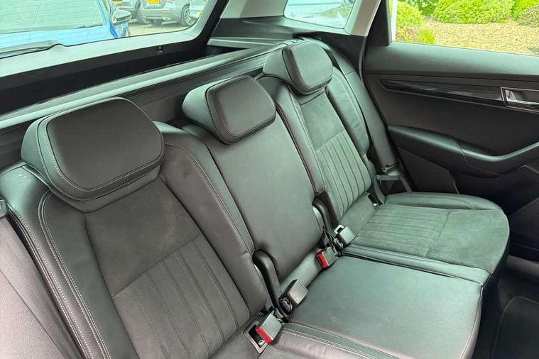 Driver alert system, Driver fatigue sensor, Driver profile selection, Electro-mechanical PAS, Front and rear parking sensors, Multifunction colour trip computer, Outside temperature gauge, Rear view camera, Service interval indicator, Start/stop system with regenerative braking, Diesel particulate filter, DAB radio with Bluetooth, SD card slot, USB connection, Acoustic glass, Aero front windscreen wipers with intermittent function, Automatic headlight control system, Body colour door mirrors and handles, Body coloured bumpers, Chrome outside aluminium bar around the window, Chrome roof rails, Full LED headlights + adaptive front light system + LED daytime running lights and front cornering fog lights, Headlight washers, Heated rear windscreen, LED rear lights with high functionality, Light assistant (coming/leaving home/tunnel light), Privacy glass, Safety reflectors on front doors, Third brake light, 1.5 litre bottle holders in driver and front passenger door panels, 12V socket in boot, 12v socket in front centre armrest with storage compartment and rear air vents, 2 Folding hooks and nets in boot, 2 Front readings lights for driver and passenger, 3 rear height adjustable headrests, 4 foldable roof handles with rear coat hooks, 4 lashing points on luggage floor, Backrest release, Cargo elements in boot, Chrome inner door handles, Dual zone climate control, Folding tables on the front seat backrests, Front seat and rear pockets, Height adjustable front three point seats belts with tensioners, Height adjustable passenger seat, Height/reach adjust steering wheel, Ice scraper, Illuminated and cooled glovebox, Illuminated luggage compartment, Isofix child seat preparation outer rear, Net programme in boot, Pen holder, Pollen filter, Rear boot cover, Rear reading lights, Rear seats fixed folding and divided 60:40, Removable LED torch in the boot, Retractable parcel shelf attachable to tailgate, Safety vest holder, Storage box in upper central dashboard closed, Storage compartment below the passenger seat, Storage net on centre console passenger side, Sunglasses storage compartment, Sunvisors with illuminated vanity mirrors, Textile floor mats, Umbrella under passenger seat, VarioFlex seats with retractable parcel shelf, Airbags - Front side, head, knee and curtain, Automatic door unlocking in case of crash, Automatic fuel cut off in case of crash, Brake energy regeneration, Driver airbag, Electronic parking brake with auto hold function, Emergency rear braking signal, ESC including ABS, MSR, ASR, EDS, HBA, DSR, RBS, MKB and traction control, Front assist radar scanning of the space in front of the car with automatic braking, Hill hold control, Passenger airbag with switch-off function, Pedestrian monitor, Seatbelt reminder signalisation and pretensioner for all seats, Three point seatbelts rear, Two tone horn, Tyre pressure display, Tyre pressure monitor, Alarm with interior monitoring, back up horn and tilt sensor with safe function, Electronic engine immobiliser, Keyless entry and keyless start with safe system, Remote central locking with 2 remote folding keys, Chrome framed air vents, Storage on wheel cover,