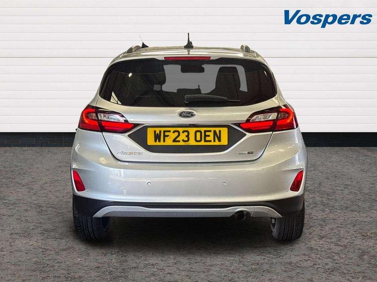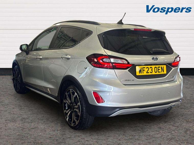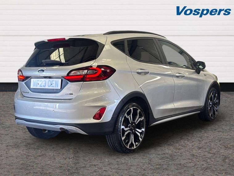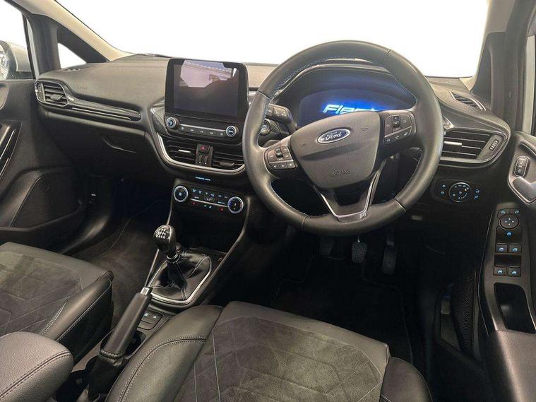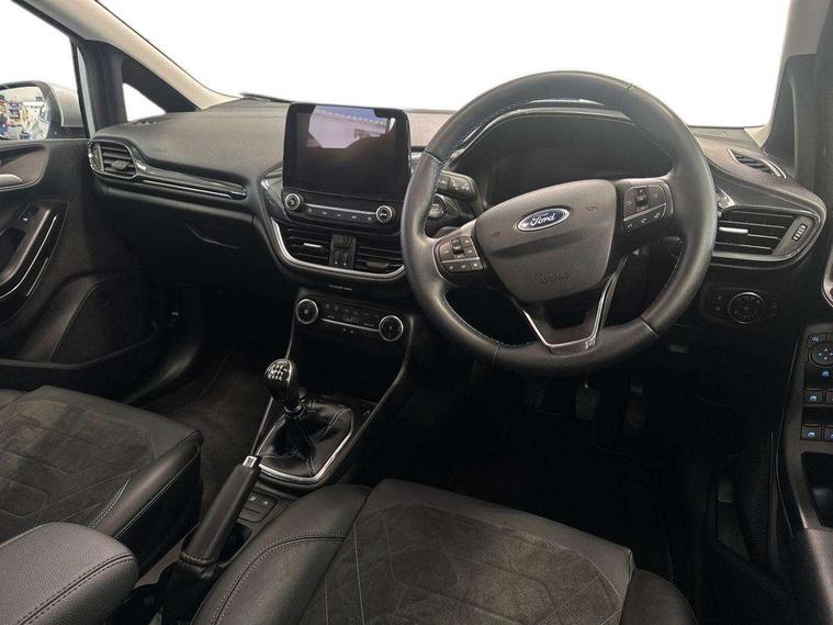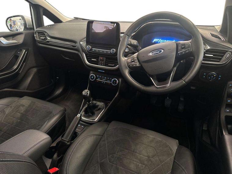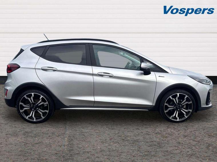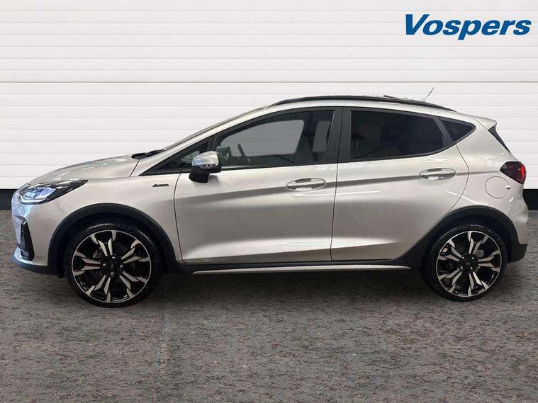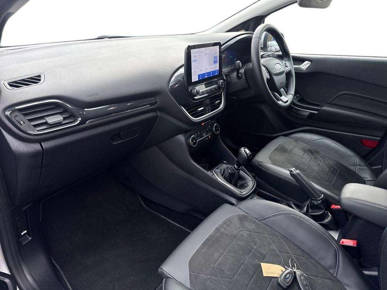 4.2" TFT instrument cluster screen, Bluetooth system, Electric power steering, Extra selectable drive modes ( Trail, Slippery), Ford easy fuel, Rear parking distance sensors, Selectable drive modes (Normal, Sport, Track), Traffic sign recognition, Trip computer, Rough road suspension with increased ride height adjust, 2 USB ports, Auxiliary input socket, B&O Premium audio system with 8" touchscreen, 10 speakers, 360 degree sound system, Ford SYNC 3 navigation system and Ford pass connect, DAB Digital radio, Steering wheel mounted controls, Auto high beam, Body colour bumpers, Body colour door handles, Body colour rear spoiler, Chrome beltline trim, Cornering front fog lights, Electric front windows/one touch facility, Electric rear windows, LED Night signature to rear lights, Mesh design front grille with chrome surround, Power foldable door mirrors with puddle lights, Quickclear heated windscreen, Rain sensing wipers and auto dimming rear view mirror, Rear privacy glass, Rear wiper, Rugged body styling kit with active front wing badges, 3 spoke leather trimmed steering wheel with audio control, 60/40 split folding rear seat, Adjustable head restraints, Boot carpet, Centre console with opening armrest, 2x cupholders, 12v and USB, Chrome inner door handles, Drivers and Passenger lumbar support, EATC - Electronic Auto Temperature control, Footwell illumination, Front floor mats in velour, Front map reading lights, Front seat and rear pockets, Height adjustable passenger seat, Illuminated glovebox, Leather gaiter, LED ambient lighting, Load area light, Manual 4-way driver seat adjust, Overhead console with sunglasses holder, Pollen filter, Rake/reach adjustable steering wheel, Sensico partial premium upholstery, Sensico wrapped steering wheel, NCAP Pack - Fiesta, 3 point seatbelts on all rear seats, ABS+EBA, Curtain airbags, Driver and passenger airbags, Drivers knee airbag, Electronic stability control with hill start assist, Front passenger airbag deactivation, Front side airbags, Seatbelt warning, Two tone horn, Tyre pressure monitoring system, Ford keyfree system with Keyless entry and keyless start, MyKey system, Remote central locking & engine immobiliser, Thatcham Cat.1 alarm, 18" 5 spoke alloy wheels with shadow black machined finish,