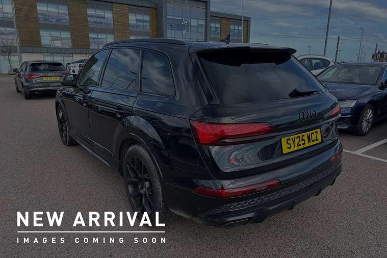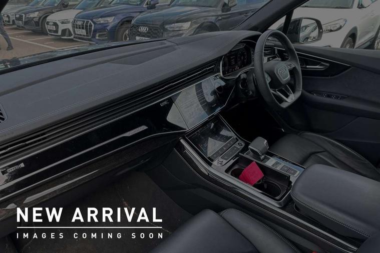 Audi connect safety and service (e-call), Audi connect with Amazon Alexa Integration, Audi drive select (Auto, Comfort, Dynamic, Efficiency, Individual, Off-road and All road), Audi phone box light with wireless charging, Audi virtual cockpit - 12.3" high-resolution LCD display with fully customisable instrument cluster, Bluetooth interface, Camera based traffic sign recognition, Electromechanical power steering, MMI navigation plus with MMI touch screens includes 10.1" and 8.6" screens with haptic feedback, Natural voice recognition, Operating buttons in Matte black, Parking system plus with 360 degree display (front, rear and side sensors) - acoustic and visual park assist system, Power operated tailgate, Rear view camera, Smartphone interface includes wireless Apple carplay/Android Auto, Start/stop system, 48V Mild hybrid technology, Adaptive air sports suspension, Quattro all wheel drive with self locking centre differential, Audi music interface - front 2 USB-C ports with charger and data functions, Audi sound system with 6 channel amplifier, 180 watt amplifying capacity and 10 loudspeakers including subwoofer, DAB digital radio module, Audi Beam uses LEDs to project S emblem with red rhombus onto the ground when opening the side doors (front/rear), Auto dimming frameless rear view mirror, Black exhausts, Black roof rails, Electrically adj heated/folding + automatically dimming exterior mirrors with memory + automatic kerb side function for passenger side exterior mirror, Heat insulating glass in windshield, Integrated LED indications in door mirrors, LED 3rd brake light, LED daytime running lights, LED rear tail lights, Loading edge protection in stainless steel, Matrix LED headlights with dynamic front and rear indicators, Privacy glass - dark tinted rear and rear side windows from B-pillar backwards, Rear side wing doors, Rear wiper, 2 seat bench in 3rd row, 2 zone automatic climate control, 3 seat bench in 2nd row, 7 seat layout with ISOFIX points for the front passenger seat and rear passenger seat, Black cloth headlining, Comfort front centre armrest, Electric adjustable front seat with 4 way lumbar support, driver memory functionality, Folding rear seats, Front head restraints, Front/rear floor mats, Heated front seats, Illuminated door sill trims with S logo, ISOFIX child seat mounting for front passenger seat and 2 outer rear seats with top tether child seat mounting for all 3 rear seats, LED interior ambient lighting, Luggage compartment cover, Luggage compartment sill protection in stainless steel, Rear head restraints, Single front passenger seat, Stainless steel pedals, Sunvisors with illuminated vanity mirrors, Black styling pack plus - Q7, 3 point seatbelts on all rear seats, Audi pre sense front, Child locks on rear doors, Convenience key with safelock and gesture tailgate, Driver and front passenger, front side and curtain airbags, Electromechanical parking brake, Electronic Stabilisation Control (ESC) including ABS, ASR and EDL, Extended pedestrian protection measures, Hill hold assist, Seatbelt reminder, Tyre pressure loss indicator, Warning triangle and first aid kit, Anti theft alarm with tow away protection, Anti-theft wheel bolts and wheel loosening detection, Keyless Go, Remote central locking, Polished oak trim with grey finish inlay, Tool kit, Tyre repair kit,