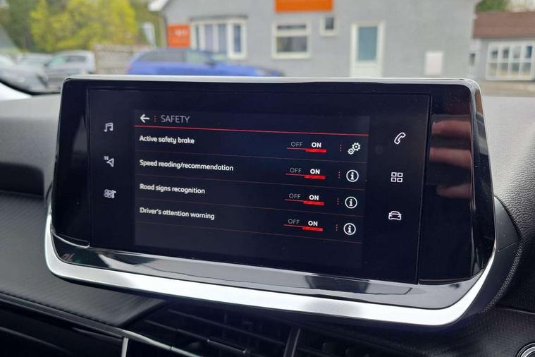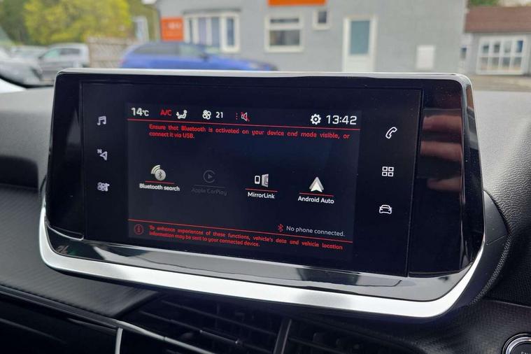 Bluetooth telephone facility, Driver attention warning, Exterior temperature indicator with ice warning, Lane keep assist, Mirror screen with mirror link, apple carplay and android auto, Multi function trip computer, PEUGEOT i-Cockpit with compact steering wheel, PEUGEOT i-Cockpit with configurable 3D headup instrument panel, Smart phone docking station, Speed limit recognition and recommendation, Visio Park 1 with 180 degree Colour reversing camera, 2 front USB socket with USB-C, 2 USB sockets in rear, 6 speakers radio with mp3 compatible, DAB Radio (Digital Audio Broadcasting), Voice recognition for radio, navigation and telephony features, 2 X Rear number plate lights, Automatic front windscreen wipers, Automatic hazard light activation upon heavy brake application, Black front wing trim with gloss black detail, Body coloured exterior door handles, Chrome Lion Badge front and rear, Colour coded rear spoiler, Colour coded roof, Dark tinted rear side and tailgate windows, Diamond black mirror shells, Eco LED headlights, Electric, heated, and power folding door mirrors, Electrochrome rear view mirror, Front bumper - Silver lower trim, Gloss black finish on B pillar, Gloss black longitudinal roof rails, Gloss black rear cluster connecting strip, Gloss black roof bars, Headlights left on audible warning, LED daytime running lights with distinctive tooth design, LED third brake light, Model designation badges front and rear, One touch electric front/rear windows with pinch protection, Radiator grille - gloss black top edge trim, Radiator grille chrome chequered, Rear full LED 3D peugeot signature claw effect lights with daylight function, Rear reversing lights, Rear side wing doors, Rear windscreen wiper triggered automatically in reverse gear, Tailgate with heated rear windscreen and wiper blade, Wheel arch extensions, 1/3 to 2/3 split folding rear seats, 12V socket, 3 seat bench in 2nd row, Automatic air conditioning with pollen and active carbon filter, Central front armrest with storage compartment, Driver and front passenger comfort seats, Driver seat manual adjustment - height, longitudinal and back rest angle, Electric power steering with reach and rake adjustable steering column, Front LED interior light with 2 reading spotlights and rear interior light with timer, Front passenger seat manual adjustment - height, longitudinal and back rest angle, Gear lever top - manual in full grain leather, Gear shift indicator, High centre console, Leather steering wheel, Mint green contrast stitching to front centre console, door panels and dashboard facia, Modular boot floor, Piano keys: Gloss black and chrome toggle switches to access main functions of the vehicle, Roof lining - light grey, Seatbelt unfastened on the move audible and visual alert for front and rear seats, Single front passenger seat, Switch for Push Button Start finished in black with chrome surround, Tri material cloth/leather upholstery, Visibility pack - 2008, 2x 2nd row ISOFIX child seat mountings, ABS (Anti-lock Braking System) with EBD (Electronic Brakeforce Distribution) and EBA (Emergency Braking Assistance), Acoustic vehicle alerting system, Active safety brake with night function/cyclists/pedestrians, Adaptive driver and front passenger airbags with passenger airbag deactivation function, Child locking functionality on rear doors, Driver/front passenger side airbags, Electric parking brake, ESP (Electronic Stability Program) + Hill Start Assist, Front and rear curtain airbags, Front and rear disc brakes, Front and rear three-point retractable seatbelts, with force limiters, Front optimised safety headrests and rear retractable headrests (x3), height adjustable, Tyre pressure sensor, Alarm system with anti-lift sensor, Automatic door locking when moving off, Deadlocks, Electronic code immobiliser, Exterior door lock x1 (Left-hand or passenger’s side), Carbon effect Dashboard, front and rear door panel finish, 17" Salamanca diamond cut alloy wheels,