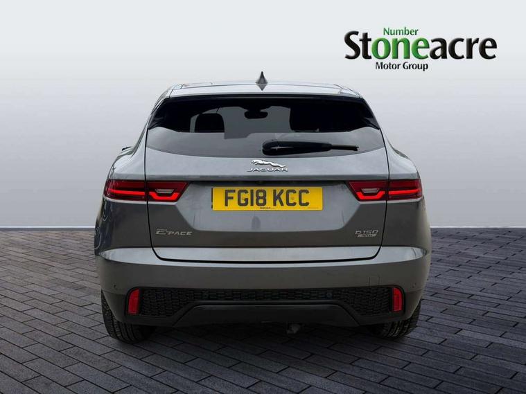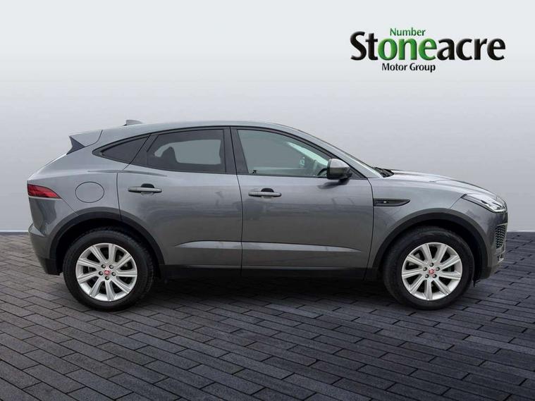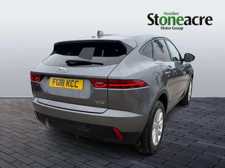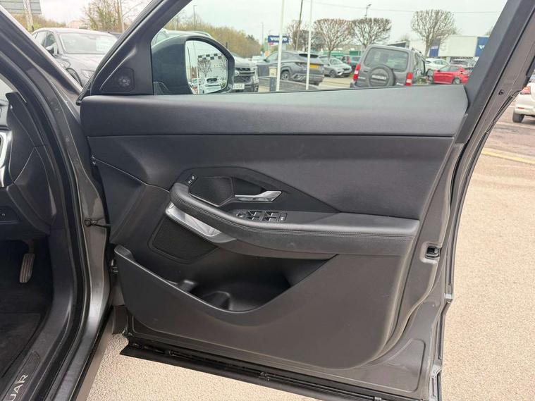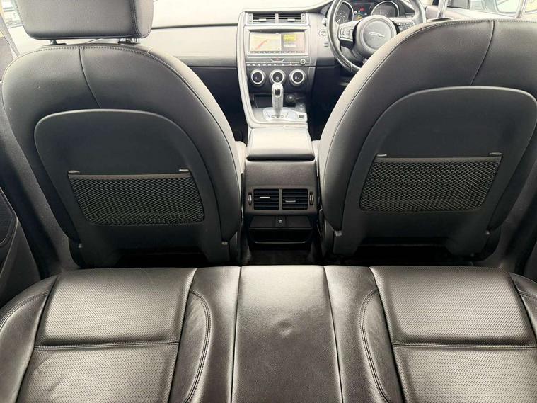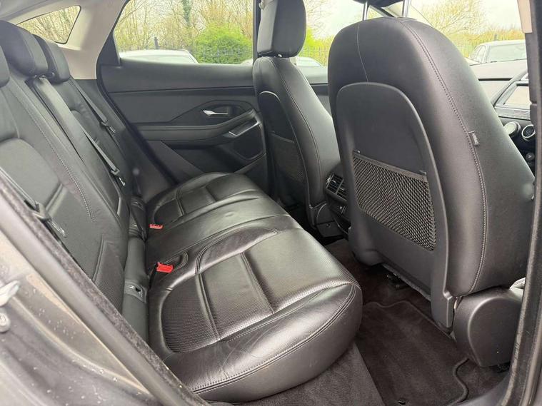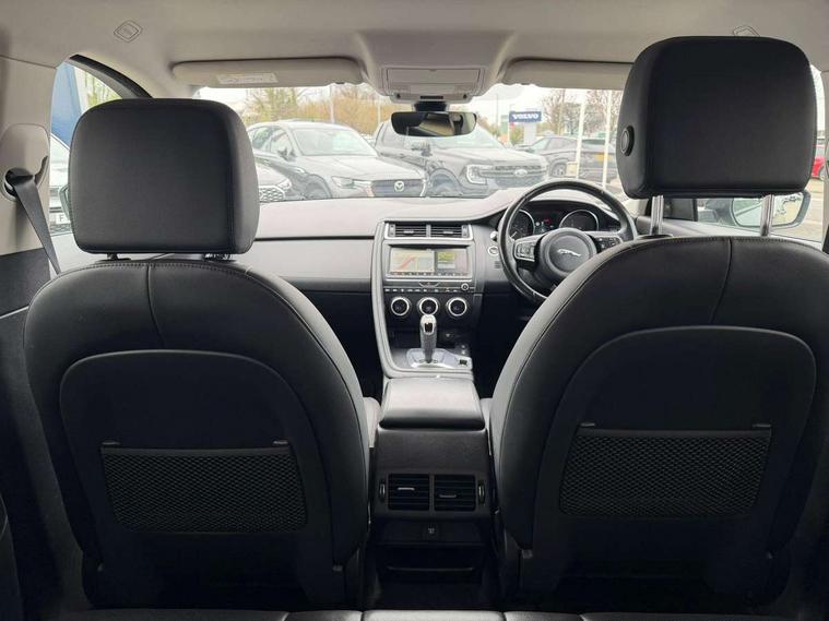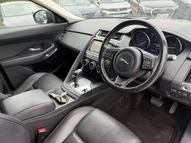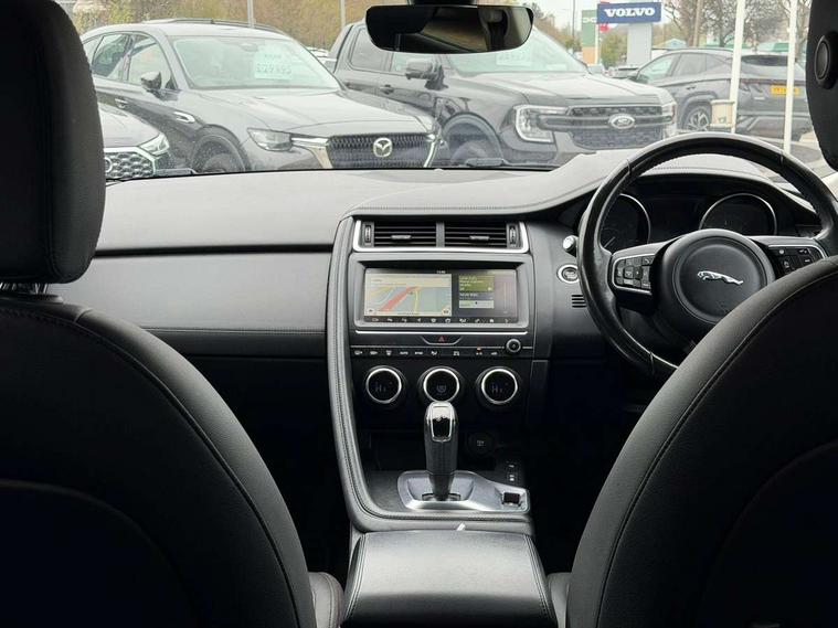 Driver condition monitor, EPAS, InControl Touch navigation pro, Lane keep assist, Outside temperature gauge, Push button starter, Traffic sign recognition with adaptive speed limiter, Trip computer, Voice control system, Diesel particulate filter, AM/FM DVD MP3 radio, Bluetooth connectivity including audio streaming, DAB Digital radio, Dynamic volume control, Approach Illumination, Auto dimming rear view mirror, Automatic headlights, Body colour bumpers, Electric front/rear windows with one touch/auto up/down, Grained black door claddings, Heated front windscreen, Heated rear window with timer, Heated washer jets, Rain sensor windscreen wipers, Tailgate spoiler, 12V power socket in rear, 2nd row 60/40 split/fold, 2nd row air vents, 3 seat bench in 2nd row, Centre armrest console, Centre headrest in row 2, Dual zone automatic climate control, Front head restraints, ISOFIX on outer rear seats, JaguarDrive selector, LED lighting in overhead console, Loadspace cover, Loadspace lamp, Storage net in luggage compartment, Sunvisors with illuminated vanity mirrors, Tie down hooks in luggage area, Twin front covered cupholders, Connect pro pack - E-Pace, Parking pack - E-Pace, Smartphone pack - E-Pace, 3x3 point rear seatbelts, ABS, All surface progress control (ASPC), Driver/Front Passenger airbags, DSC - Dynamic Stability Control, Electronic brake force distribution, Electronic parking brake, Emergency brake assist, Front and rear curtain airbags, Front and rear seatbelt reminder, Front passenger seat occupancy sensor, Front side airbags, Hill start assist, Power child locks, Torque vectoring brake, Tyre pressure monitoring system, Intrusion sensor and alarm, Locking wheel nuts,