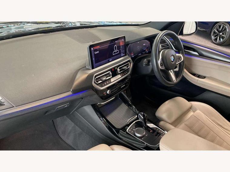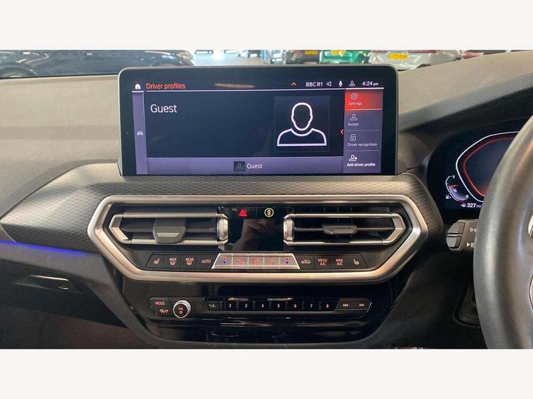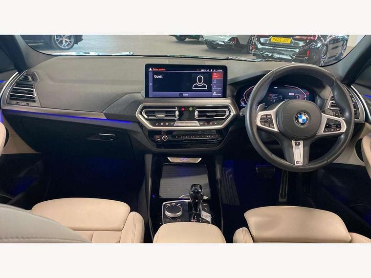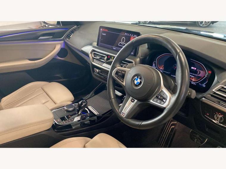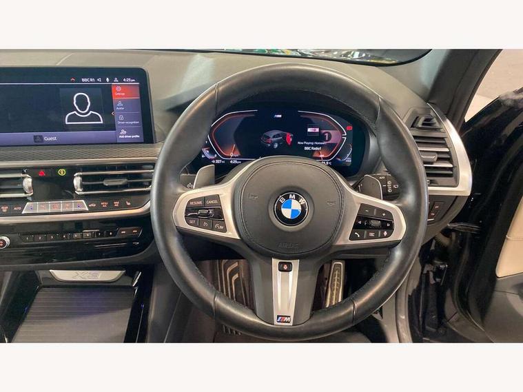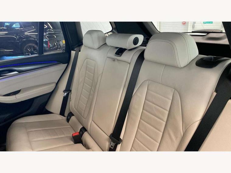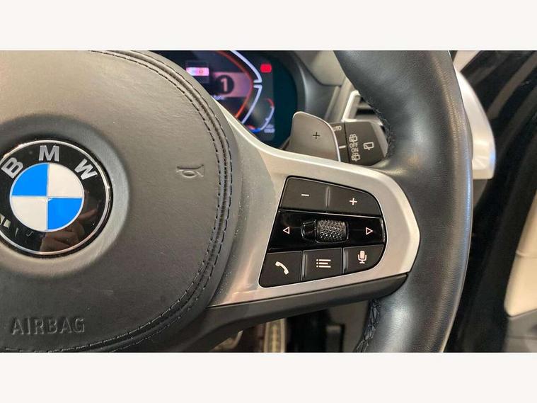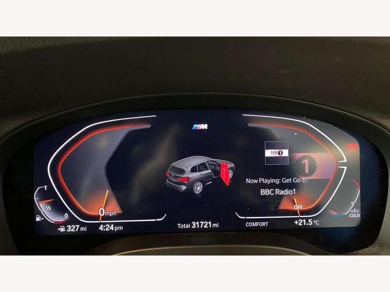 Active Guard, Attentiveness assist, BMW Live Cockpit Professional nav system including 12.3" instrument display + 12.3 high resolution control display, BMW Online services, BMW Teleservices, Brake pad wear indicator in front and rear, Check Control warning system for monitoring of lights and door/luggage compartment open warning, Condition based service - BMW service history, electronic service booklet, integrated owner's handbook, Connected drive services, Cruise control with brake function + speed limiter, Electric boot lid, Front/rear Parking distance control, iDrive Controller with 8 favourite buttons, Instrument cluster with speedometer with mph readout, tachometer, fuel gauge and oil temperature gauge, Lights on warning by audio warning signal when ignition is switched off, Oil sensor for level and grade, warning by check control system, On board computer - average speed+fuel consumption, service interval, clock/date, odometer/trip meter, outside temperature display and ice warning, Optimum shift indicator, Personal Profile - automatic lock when driving away selectable, Run flat indicator, Stop/start system, Variable sports power steering with drive performance control Sport+ mode, Automatic transmission with gearshift paddles, Incorrect fuelling protection, M sport suspension, Multi-link rear suspension, Performance Control, BMW professional radio/CD/MP3, DAB tuner, Acoustic glazing, Automatic windscreen wipers and automatic headlight, Black finish on B pillars, Body colour door handles, Body colour electric adjust heated aspherical door mirrors, Body colour roof mouldings, Body coloured bumpers, Direction indicator, side repeaters, integrated in exterior mirrors, Dynamic brake lights, Exhaust tailpipes - dual, round, split left and right with chrome finisher, Fingertip control / anti-trap function on electric window, Folding wing mirrors with auto dimming, Follow me home headlights, Front and rear bumper system with replaceable deformation elements, Front and rear electric windows, Gloss chrome tailpipes finishers, Green tinted heat insulating glass, Heated windscreen washer jets, High beam assistant, High gloss black shadow line roof rails, High gloss shadowline exterior trim in decorative moulding side frame/recess cover/guide rail/B, C pillars/mirror frame and triangle with mirror base, High level 3rd brake light incorporating LED Technology, Interior rear view electrochromatic mirror with automatic anti dazzle function, LED tail lights, Lightweight engineering, M aerodynamic bodystyling, M Sport entry door sill strips, Model designation, Rear side wing doors, Rear wing door, Rear wiper, Shark fin antenna, Side exterior M designation badges, Visible VIN plate, Welcome lighting, Windscreen wipers with adjustable interval, 12V power socket in front centre console, 3 rear headrests, 3 seat bench in 2nd row, 3 zone automatic air conditioning, 4 lashing points to secure luggage, 40:20:40 split folding rear seat with loading system, Ambient lighting, Anthracite headlining, Automatic interior light when door is opened/ignition switched off or via remote key, Driver seat backrest width adjustment, Floor mats in velour, Foldable storage floor with compartment, Four grab handles integrated in roof lining, Front and rear bottle holders integrated into door trim storage compartments, Front and rear side armrests integrated into door trim, Front centre armrest with storage compartment, Front footwell lights, Front head restraints, Front passenger seat, Front sports seats, Front/rear courtesy lights with soft on/off dimming, Front/rear reading lights, Heated front seats, Isofix rear child seat preparation, Leather gear knob, Luggage area underfloor compartment, Luggage compartment lighting, M sport leather steering wheel, Multifunction steering wheel, Parcel shelf removeable and storable under boot floor, Reach and rake adjustable steering column, Rear centre armrest with 2 cupholders, Removable / retractable luggage cover, Slope adjustable rear seats, Storage compartment in rear centre console and front/rear door trims, Sun visors with vanity mirrors and ticket pocket, Toolkit located in luggage compartment, Two front cupholders with removable oddments tray/lid, Vernasca leather upholstery, Connected pro pack - X3, Driving assistant pack - X3, ADB - Automatic Differential Brake, Anti-lock braking system (ABS) with brake assist, Automatic Stability Control (ASC), Battery safety cut-off, BMW emergency call, Brake drying, Brake energy regeneration, Braking pre-tensioning, Child locks on rear doors, Cornering brake control (CBC), Crash Sensor - activation of central locking release, hazard warning light and interior lighting, Deactivation of fuel pump in the event of a crash, Driver and front passenger front and side airbags with passenger deactivation and ITS front and rear head airbags, DSC+, Dynamic brake control, Dynamic Traction Control - DTC, Electromechanical parking brake, Hill descent control, Hill start assist, Seatbelt security check for front seats, Side impact protection, Three point seatbelts to all seats with front and outer rear pyrotechnic belt tensioners and seat belt force limiters, Two tone horn, Tyre pressure sensor, Ventilated front and rear disc brakes, Warning triangle and first aid kit, Central locking switch for all doors, fuel filler cap and luggage compartment, Electronic engine immobiliser, Locking wheel nuts, Remote control including two integrated key - one button for open/close all lockable content, windows and separate button for open luggage compartment, Remote control Thatcham category 1 alarm, Start/stop button with Comfort Go keyless engine start and auto Start/stop deactivation button, Low rolling resistance tyres,