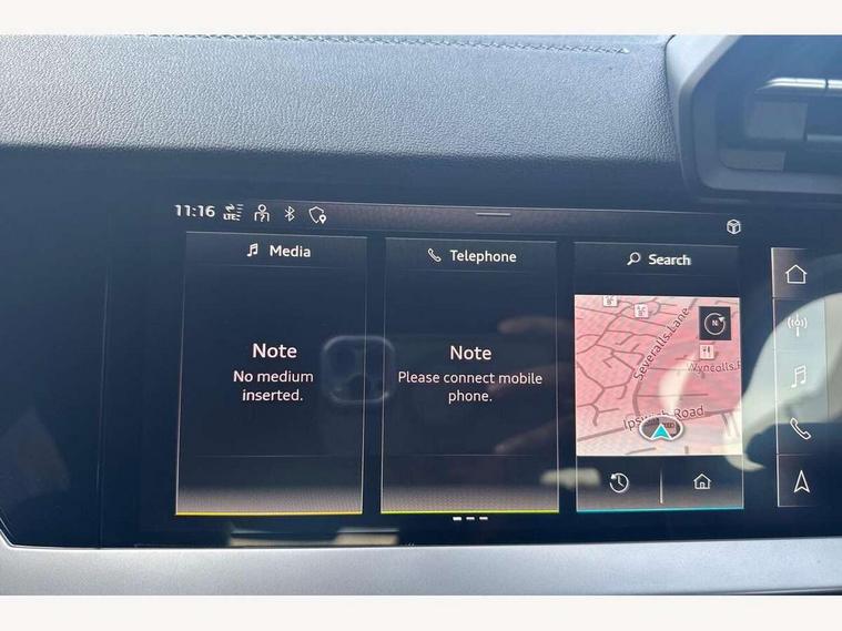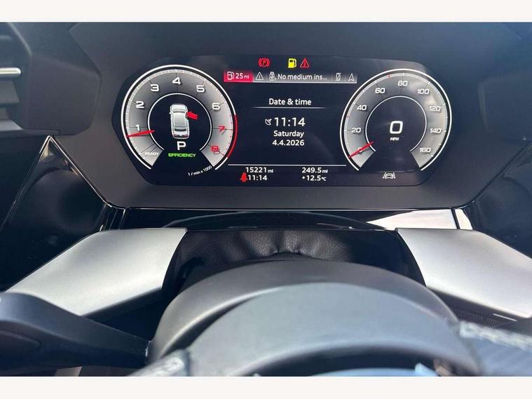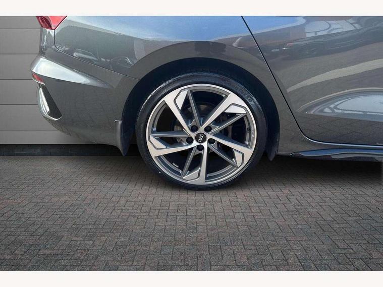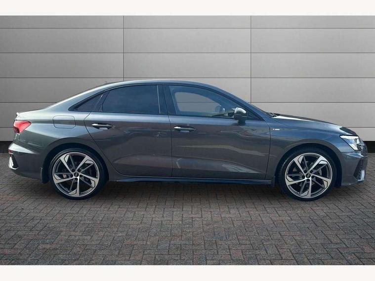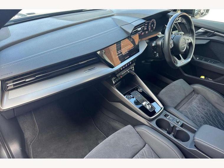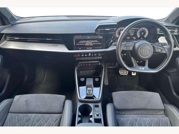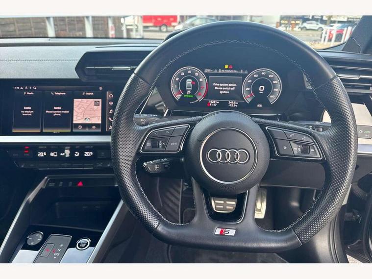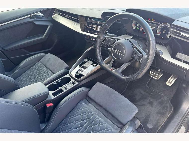 Audi connect emergency call and service, Audi drive select (Auto, Comfort, Dynamic, Efficiency and Individual), Audi smartphone interface, Audi virtual cockpit plus - 12.3" dynamic digital instrument cluster, Automatic start/stop system with recuperation, Bluetooth interface, Collision avoidance assistant, Electromechanical power speed sensitive steering, Lane departure warning system, MMI Navigation Plus with high resolution 10.1" colour touch screen display, Service indicator, Voice control system with natural language interaction, Sports suspension, 2x USB Type C ports (for charging and data transfer), 6 passive loudspeakers, CD player, DAB Digital radio, 3rd brake light, Acoustic glass windscreen, Audi matrix LED headlights, LED rear lights, dynamic front and rear indicators and headlight cleaning system, Auto dimming frameless rear view mirror, Electrically adj heated/folding + automatically dimming exterior mirrors + automatic kerb side function for passenger side exterior mirror, Front electric windows, Illuminated door sills with aluminium inserts at the front with S logo, Integrated LED indicators in door mirrors, LED daytime running lights, Light and rain sensors, Model and engine designation badges at rear, Privacy glass - dark tinted rear window, rear door and side windows, Rear boot, Rear electric windows, Rear side wing doors, S roof spoiler, 12V socket and storage compartment in front centre console, 3 seat bench in 2nd row, 4 way electrically adjustable lumbar support for driver and front passenger, 40/20/40 split folding rear seat bench with cupholder, Black cloth headlining, Dual zone electronic climate control, Electrically adjustable front seats, Front and rear centre armrest in leather, Front and rear headrests, Front/rear floor mats, Heated front seats, Height and reach adjustable steering wheel, Illuminated vanity mirror, Interior lighting - glove compartment light and right hand side, Luggage compartment floor covering, Manual boot compartment lid, Single front passenger seat, Stainless steel pedals and front footrest in black, Aluminium interior elements pack - A3, Black styling pack - A3/S3, Dinamica microfibre/mono.pur 550 artificial leather pack - A3 Saloon, Extended ambient lighting pack - A3/S3 Saloon, LED interior lighting pack - A3 Saloon, 3x3 point rear seat belts, Driver and front passenger airbag with passenger airbag deactivation, Electronic Stabilisation Control (ESC) including ABS, ASR and EDL, First aid kit with warning triangle and 2 safety vests, Front side airbags with head airbags and interaction airbag, Hill hold assist, Pre-sense front with pedestrian and cyclist detection, Seatbelt monitoring, Tyre pressure loss indicator, Anti theft alarm, Anti-theft wheel bolts, Electronically operated child locks, Immobiliser, Remote control central locking, Aluminium air vent surrounds, Aluminium trim elements, Dark spectrum aluminium inlays, accent surfaces in the dashboard and centre console in platinum grey silk effect paint finish, 19" 5 arm trapezoid design alloy wheels in matt grey with diamond cut finish,