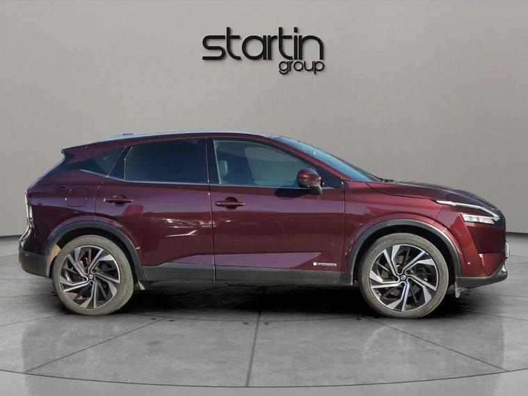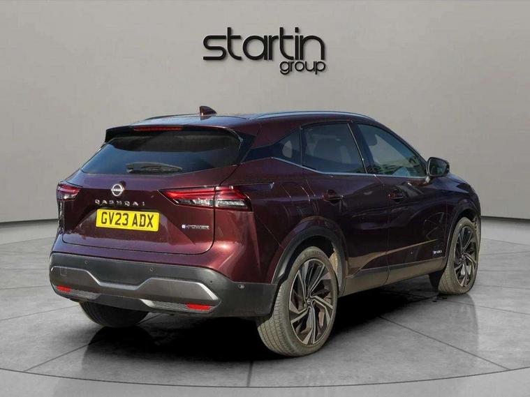 Advanced windscreen head up display, Android auto/Apple CarPlay (Wired), Blind spot warning, Drive modes (sport, normal, eco), Electric speed sensitive power steering, Emergency and breakdown call, Front and rear parking sensors, Full Digital 12.3" TFT Digital Combimeter, Google maps services - search, weather, 3D maps and Google street view, Hands free power tailgate, Idle stop/start system, Intelligent around view monitor, Intelligent Cruise control (ICC), Intelligent driver alert system, Intelligent forward collision warning, Intelligent lane intervention, Lane departure prevention, Lane departure warning system, Lane keep assist, Moving object detection, Nissan connect 12.3 inch touchscreen infotainment system, Nissan connect navigation, Pro pilot park assist, ProPILOT with Navi-Link, Push button starter, Rear cross traffic alert, Rear view camera, Remote control services - door locks, lights, horn and car locator, Telematics - notifications and connectivity services, TomTom live traffic services, Traffic sign recognition with legal speed adjustment, Trip computer, Virtual personal assistant and firmware over the air capability, Wireless apple carplay, Wireless charging pad, 10 Bose speakers - 2 tweeters, 6 high and medium frequency door speakers and 2 in subwoofer, AM/FM audio system with DAB, Bluetooth audio streaming, Bose acoustimass bass box, Digital amplifier, Front USB connections (Type-A and Type-C), Rear USB charging only ports (Type-A and Type-C), Auto dimming rear view mirror, Auto rear wiper when reversing, Automatic hazard signal with emergency stop signal, Body colour mirror caps, Body coloured door handles, Bodyside mouldings, Chrome side window finisher, Door handle with button, Door mirror memory, e-POWER badging, Electric auto folding door mirrors, Electrically adjustable and heated door mirrors with LED turn indicator, Follow me home headlights, Front and rear LED turning signals, Headlights auto levelling system, Intelligent auto headlights, LED daytime running lights, LED front fog lights, LED headlights with adaptive driving beam, LED rear lights, One touch front and rear electric windows with remote opening and closing, Privacy glass, Rear bumper with graphite insert, Rear reversing light (bulb lighting), Rear roof spoiler, Rear side wing doors, Rear styling plate, Reverse tilting door mirrors, Shark fin antenna, Splash free rain sensing wipers, Super UV and infrared cut glass, Thermaclear heated windscreen, Three blink turn signal, 12v power socket in dashboard and luggage, 2x Rear coat hooks, 3 bench rear seats in 2nd row, 3 rear headrests, 4 folding assist grip, 6 Luggage hooks - 4 on floor, 2 on side, 60/40 split folding rear seat bench, Ambient lighting around centre console, Ambient lighting in front doors, Centre console storage tray, Chrome interior door handles, Dark black/blueish PVC wrapping, Dark headlining, Driver and front passenger sunvisors with illuminated vanity mirrors, Driver seat back pocket, Dual zone automatic climate control with pollen filter, e-POWER shifter, Electric 4-way lumbar support for drivers seat, Electric adjustable 4 way lumbar support for passenger seat, Electrically adjustable driver seat with massage and memory functions, Front and rear door storage, Front centre console and armrest, Front cupholders x 2, Front door with bottle holders, Glovebox with light, Hard trunk cover, Heated front seats, Heated steering wheel, Height adjustable driver's seat, Height adjustable front headrests, Height adjustable passenger seat, Leather steering wheel, Luggage board system, Luggage space lighting, Manually adjustable passenger (slide recline + lifter), Multifunction steering wheel, Passenger seat back pocket, Quilted premium leather upholstery, Rear armrest with 2 cupholders, Rear door bottle holders, Single front passenger seat, Soft PVC kneepad, Steering wheel switches, Tilt/telescopic adjustable steering wheel, Two rear isofix child seat anchorage points with top tether, Welcome light and doors with console tray ambient lighting, Glass roof pack with roof rails - Qashqai, 3x3 point rear seatbelt pretensioners + load limiters, ABS with EBD and brake assist, Active brake limited slip, Auto hold function, Child locks on rear doors, Curtain and front side, far side airbags, Driver and passenger airbags, Driver, passenger and 2nd row rear seat belt reminder, Electronic parking brake, Front seatbelt pretensioners + load limiters, Height adjustable front seatbelts, Hill start assist, Intelligent blind spot intervention, Intelligent front emergency braking with pedestrian, cyclist recognition and junction assist, Intelligent rear automatic braking, Tyre pressure monitoring system, Vehicle dynamic control, Advance intelligent key with driver memory storage (seats, mirrors, audio), Capless fuel filler, Engine immobiliser, Remote central door locking with deadlocking, Thatcham Cat.1 alarm, Interior instrumental panel C finisher, 20" Diamond cut alloy wheels, Tyre puncture repair kit,