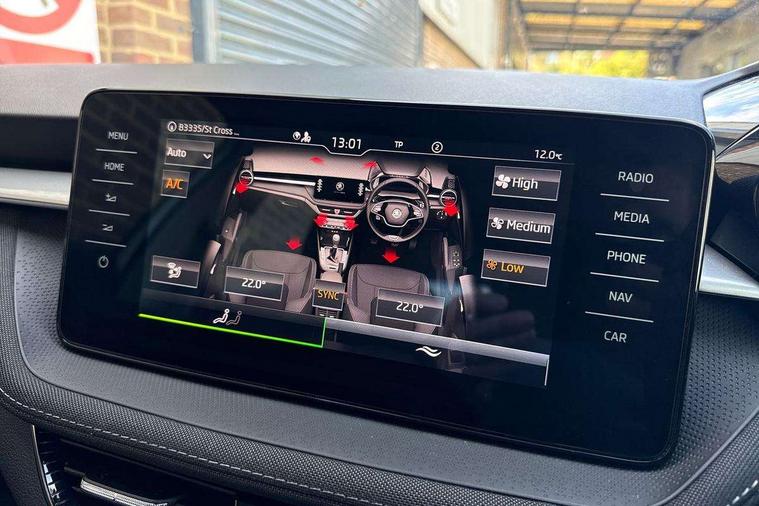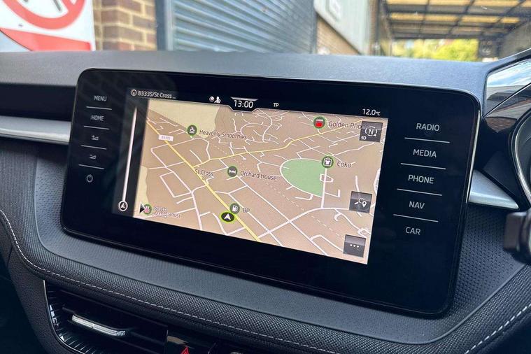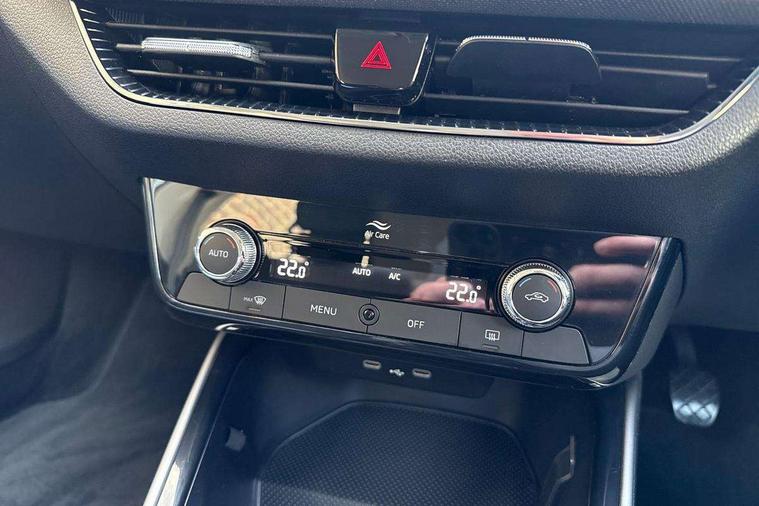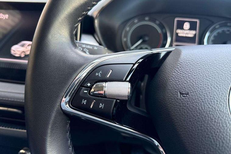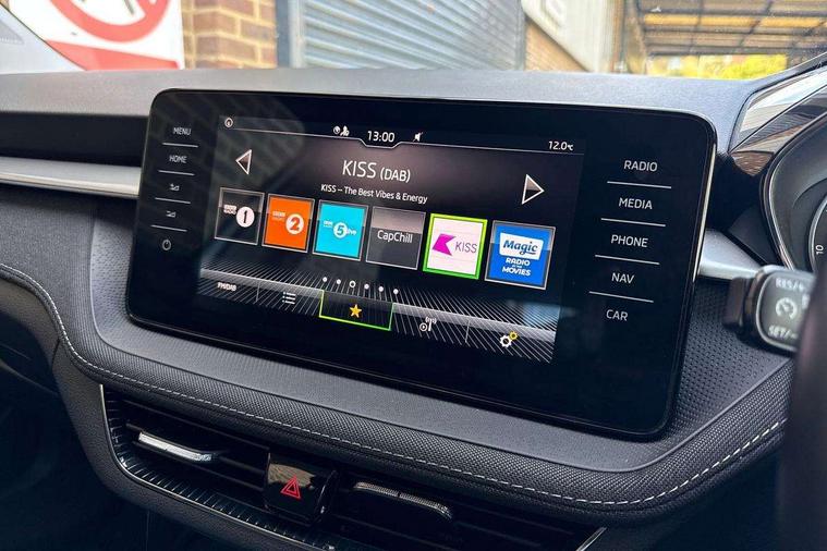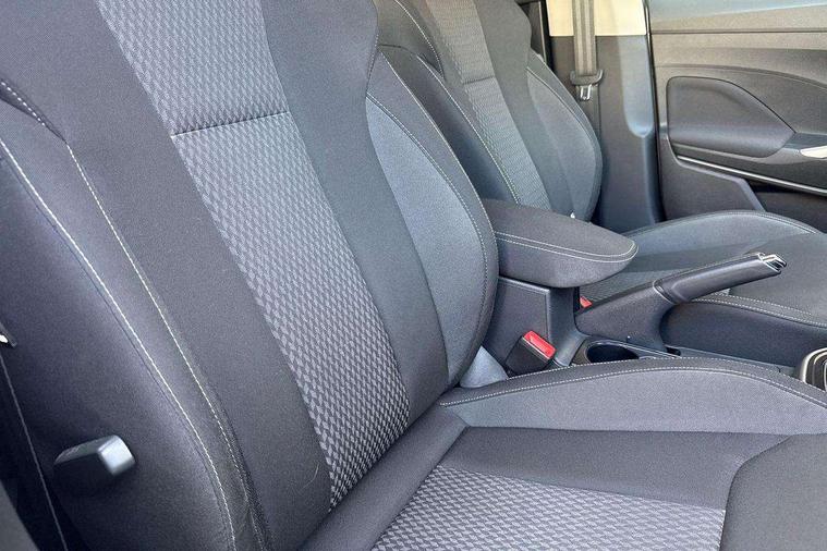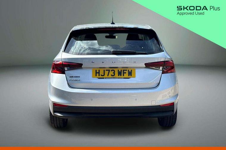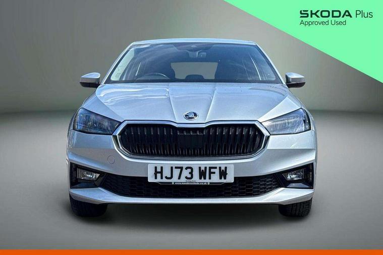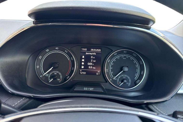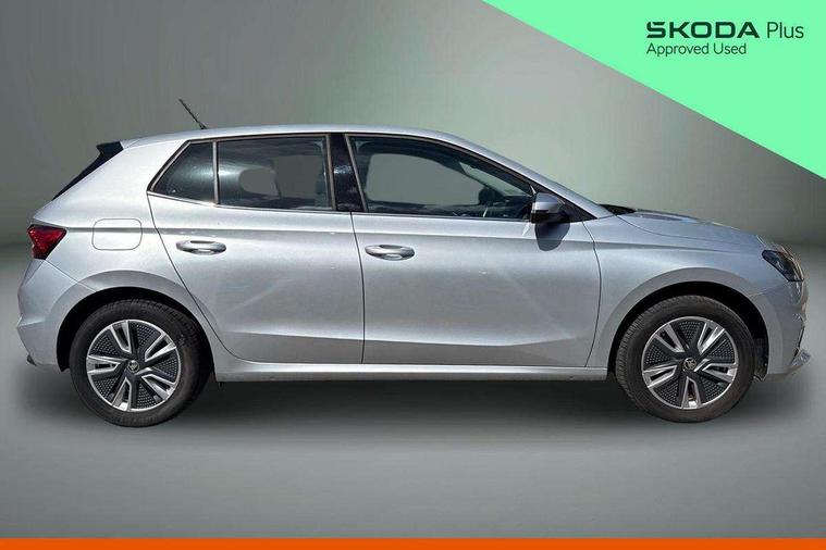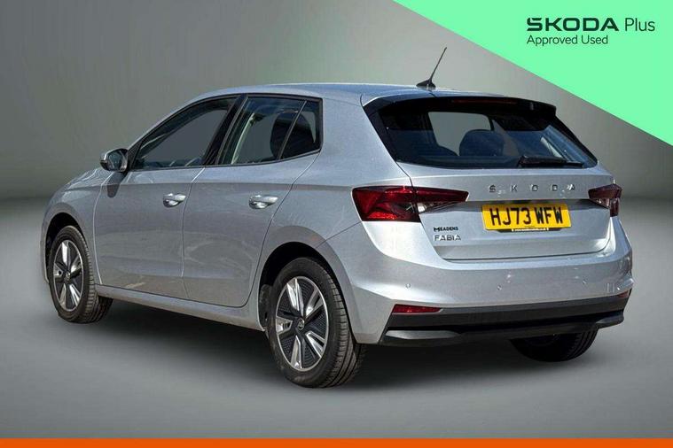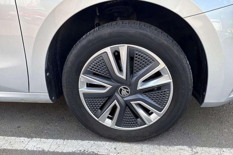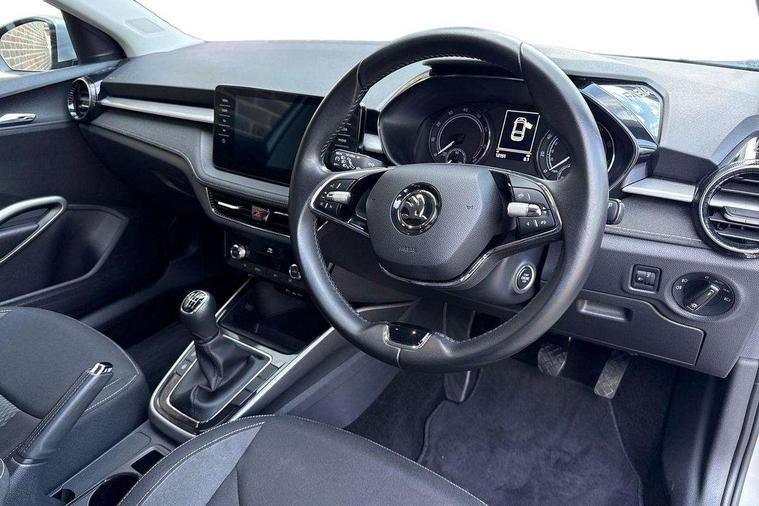 Bluetooth connection, Driver alert system - DAS, Electromechanical power steering, Exterior temperature gauge, Service interval indicator, 2x USB-C in the front (for data transmission and charging), 6 Speakers (4 in front and 2 in rear), Auxiliary socket for external MP3 player, DAB digital radio reception, Web radio, Auto dimming rear view mirror, Body colour door mirrors, Body coloured bumpers, Chrome window surround, Door mirror integrated indicators, Electrically adjustable and heated door mirrors, Front and rear electric windows, Front window wiper intermittent control, Headlight range control - Automatic, Ice scraper in fuel cap, LED daytime running lights with coming and leaving home feature, Rear LED fog light, Rear side wing doors, Rear window wiper with washing nozzles, Roof mounted spoiler, SKODA tailgate lettering in chrome, Third brake light, 3 rear headrests, Backrest split and folding, Central console with fixed cup holder and storage box, Chrome handbrake release button, Comfort seats, Fabric upholstery, Front centre armrest, Gearshift knob/handle in leather, Hand brake lever handle in leather, Height adjustable front headrests, Height adjustable front seats, Height adjustable steering wheel, ISOFIX and TopTether anchorage points to the outer rear seats, ISOFIX and TopTether on the front passenger seat, Luggage compartment lighting, Manually adjustable lumbar support in front seats, Pollen filter, Rear seat bench unsplit, Removable cup holder, Single front passenger seat, Storm grey headlining, Sun visors with mirror and airbag label on passenger side, Textile floor mats, Ticket holder, Umbrella in drivers door, Ambient lighting pack 2 - Fabia Hatchback, 3-point height adjustable front seats belts with pretensioner and force limiter, Automatic warning lights in case of crash, Driver and passengers airbag with switch off function, e-Call+, ESC including ABS, MSR, ASR, EDS, HBA and XDS, Front and rear seat belt warning, FRONT ASSIST (AEB City and AEB Inter Urban), Front side airbags, Head airbags, One tone horn, Pedestrian protection, Three rear 3-points safety seat belts with pretensioner and force limiter including stop function for outer rear seat belts, Tyre pressure monitoring system, Anti-theft alarm system including immobiliser, interior monitoring, backup horn, and towing protection, Chrome edged air vents, Satin black door and side trim panel in front, Anti-theft wheel bolts protection, Super-low rolling resistance tyres,