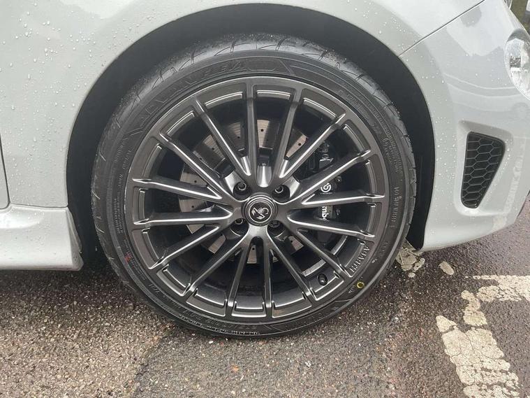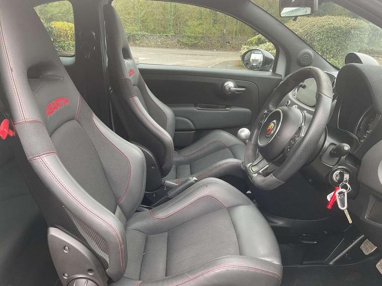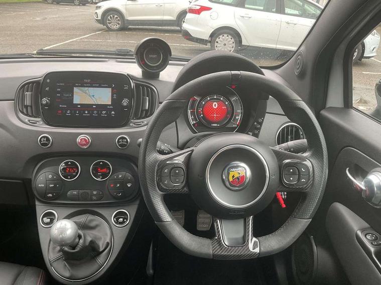 7" TFT instrument display with sports mode, Alcantara cockpit, Apple car play/Android Auto, Dualdrive PAS, eCall emergency call system, Garrett turbo, Rain and dusk sensors, Rear parking sensors, Sports button, Trip computer, Wakeup screen for 7" radio, Koni front and rear suspension with Frequency Selective Damping technology, Torque transfer control (TTC), 3rd brake light, Electric adjustable heated door mirrors, Electric front windows, Front fog lights, LED daytime running lights, Oil cap with key, Privacy glass, Rear window defroster, Rear wiper, Tar cold grey front and rear bumper mouldings and door handles, 12V socket, 2 seat bench in 2nd row, Aluminium gearknob, Driver/front passenger seat height adjustment, English handbook, Floor mats, Front head restraints, Front passenger seat memory, Glovebox, Height adjustable steering wheel, High performance BMC air filter, Rear headrests, Single front passenger seat, Sports steering wheel in leather and Alcantara with carbon fibre detailing, Stainless steel pedal covers, Competizione mechanical limited slip differential pack - 695, Cool Pack - 695/695C, Tech Pack - 695/695C, 240x11 mm Drilled rear brake discs, 305x28 mm Drilled and ventilated front brake discs, ABS, Driver and passenger airbags, Drivers knee airbag, ESP + ASR/MSR + HBA + Hill holder, Front side airbags, Head protection side airbag, Tyre pressure monitoring system, Window airbags, Alarm, Immobiliser, Power door locks, Remote central locking, Tar cold grey dashboard, Fix and go kit,