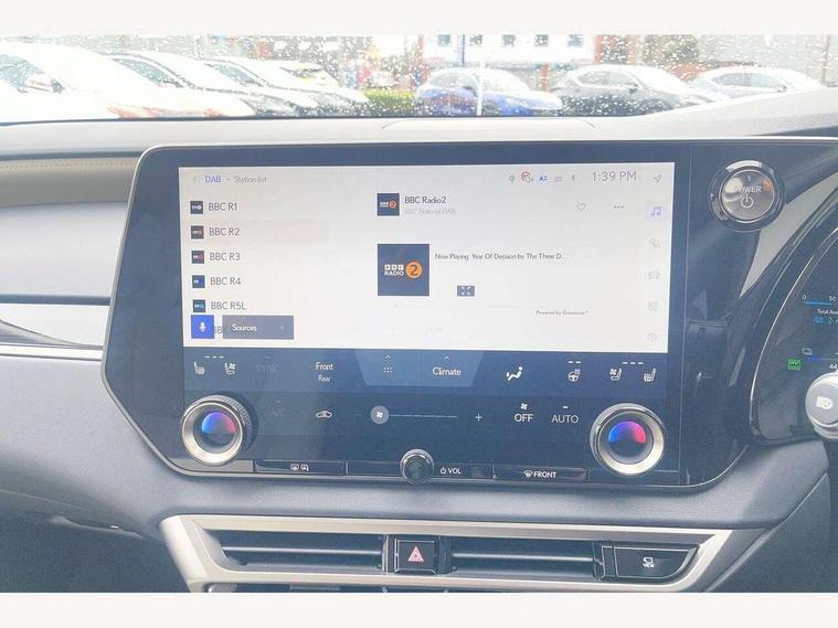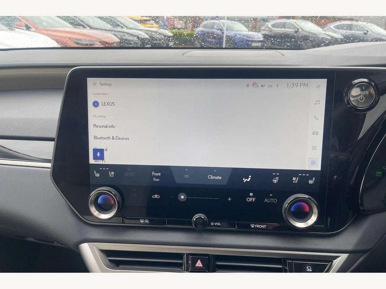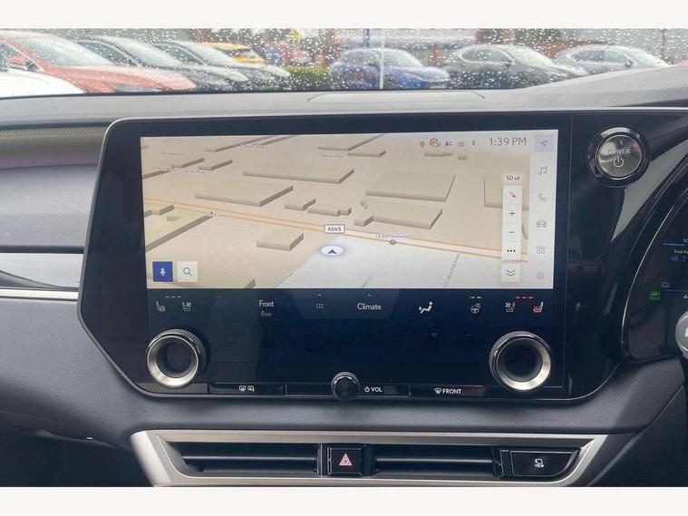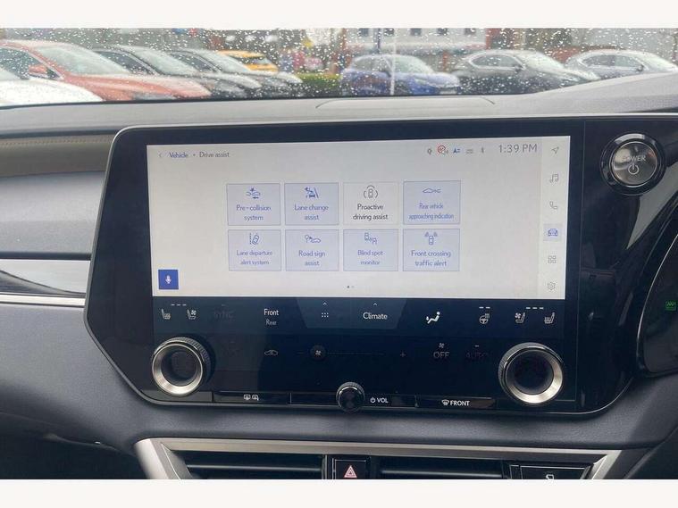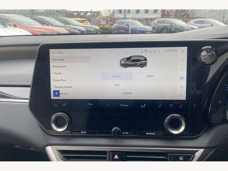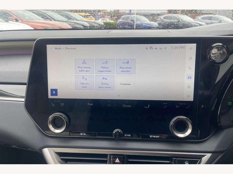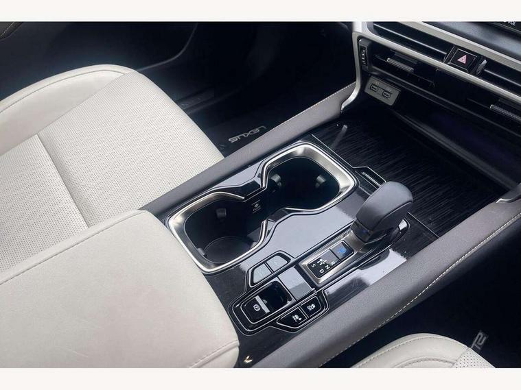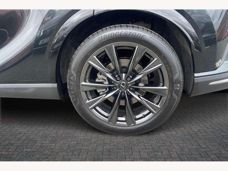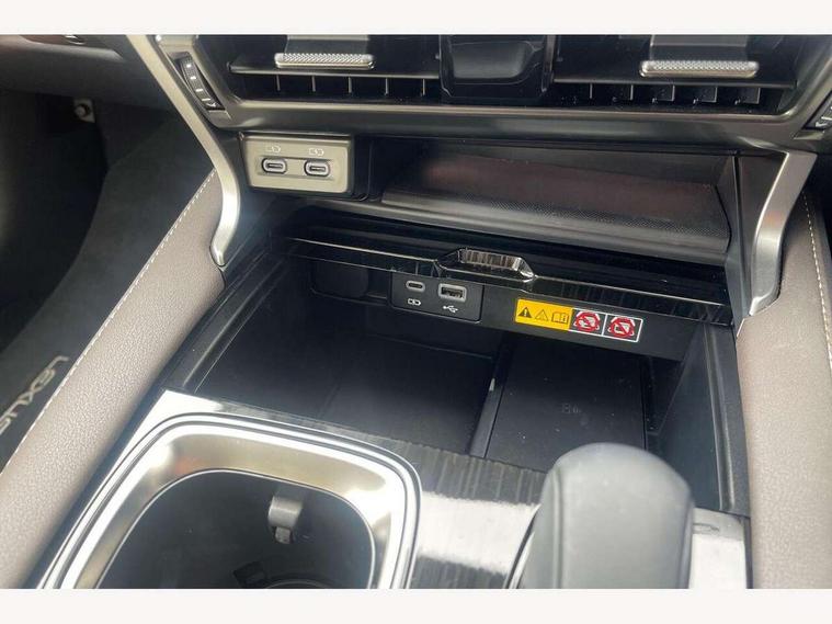 12.3" Tazuna cockpit, 360 degree panoramic view monitor, Auto EV - HV mode, Bluetooth mobile phone connectivity, Boot lid push button release, BSM - Blind spot monitoring, Drive mode select (Eco, Normal, Sport), Driver monitoring system, E-call, Eco driving indicator, Electric tailgate with handsfree function, Emergency driving stop system, Emergency steering assist, EV mode, Front and rear parking sensor with intelligent clearance sonar, Front cyclist, motor cycle, pedestrian detection, HD Digital speedometer, Head up Display, Intersection turn assist, Lane change flasher function, MM21 Lexus link pro - 14" HD touchscreen with embedded and cloud based navigation, voice assistant, connected services, over the air and always online, Proactive driving assist (PDA), Push button starter, Rear cross traffic alert with auto braking, Rear pedestrian detection, Road sign linked speed limiter, Speed sensitive electric power assisted steering, Tachometer/Hybrid system indicator, Tailgate height memory function, Trip meter, Wireless Apple CarPlay and wired Android Auto, Wireless Smartphone charger, 3 pin to Type 2 10A charging cable, 6.6 kW onboard charger, Battery charging mode, E-Four Automatic transmission, Predictive efficient drive, Type 2 AC charging, Type 2 mode 3 32A charging cable, Vehicle Stability Control (VSC), 12 speakers audio, 5 USB ports (3 front USB C and 2 rear USB C), DAB Digital radio, 3 projector bi-beam LED headlight with auto high beam, Acoustic front and rear side glass, Active brake lights, Auto dimming rear view mirror, Auto headlights, Auto levelling headlights, Automatic rear flashing hazard lights, Black outer mirror cover, Black resin rocker panel, Black roof rails, Body colour roof spoiler, Chrome door belt moulding, Chrome window mouldings, Door mirror indicator lights, Electric adjustable, folding, heated, reverse tilt door mirror with electro chromatic on driver side, F SPORT exterior styling, F SPORT front and rear bumpers, F-mesh signature radiator grille, F-Sport design badge in front wings, Front and rear one touch power windows with voice command, Glass breaking sensor, Headlight washers, Hidden exhaust in rear bumper, L-shaped rear light bar, LED brake lights and rear lights with emergency brake signal, LED cornering headlights, LED daytime running lights, LED front and rear fog lights, LED front indicators, Privacy glass, Puddle lights, Rain sensor windscreen wipers, Rear side wing doors, Rear wiper, Shark fin antenna, Tailgate scuff plate in resin, Trailer sway control, Ultra Violet (UV) and heat insulating tinted glass, Variable front intermittent wipers, Water repellent front side glass, 12V accessory port centre console and luggage compartment, 2 way electric lumbar support for driver and front passenger, 2 way manually adjustable front headrests, 2 way manually adjustable rear headrests, 2 x Sunvisors with vanity mirror and lamp, 3 rear headrests, 3 seat bench in 2nd row, 3 spoke leather steering wheel, 40:20:40 split folding rear seats, 64 colour LED ambient interior illumination with 14 pre-set themed colour tones, 8 way electrically adjustable front seats, Ammonite sand interior roof, Automatic air circulation control, Charge cable bag, Clean air filter with pollen PM removal, Climate concierge, Driver seat memory function, Easy access driver seat, Easy access steering wheel, Electric adjustable steering column, Front and rear cup holders, Front stainless steel scuff plate with Lexus logo, Front tray in front of centre console, Heated and ventilated front seats, Heated steering wheel, Humidity sensor for climate control, Leather gearshift, LED Door courtesy lights, LED glove box light, LED luggage compartment lighting, Lever type shft control, Manually folding and reclining rear seat backrest, Manually retractable luggage cover, Paddle shifts, Rear centre armrest, Rear resin scuff plates, Remote climate control, S-Flow technology for climate control, Single front passenger seat, Smooth leather upholstery, Standard front seats, Steering wheel mounted customizable touch control, Storage box in rear centre armrest, Sunglass holder in front overhead console, Tahara door panel finish, Tahara door pocket, Tahara glove box, Textile carpet mats, Three zone climate control air conditioning system with Nanoe technology, Touch Screen Cloth, Towel and glove set, Two way opening centre armrest with storage, USB port (Type - A) front centre console, 18" front disc brake, 3 point ELR front and rear seatbelts with pretensioners, ABS, Curtain shield airbags (front and rear), Driver/front passenger side airbags, Drivers knee airbag, E-Latch with safe exit assist, EBD + Brake Assist, Electronic parking brake, Electronically controlled braking, Extended lexus safety system+ 3 - lane change assist, front cross traffic assist, Front and rear seatbelt audible and visual warning indicator, Front passenger airbag cut off switch, Hill assist control, i-Size and ISOFIX rear child restraint system, Lexus safety system+ 3 - dynamic radar cruise control, pre collision system day and night, lane tracing assist, road sign, Manual child lock in rear doors, Rear disc brakes, Safety kit, Secondary Collision Brake (SCB), SRS driver and front passenger airbag, SRS front centre airbag, Standard front brake calliper, Standard rear brake calliper, Traction control, Tyre pressure warning with auto location, 2 x remote key fobs, Auto door lock, Double door lock, Intrusion sensor, Smart key with smart keyless entry and start, Thatcham category 1 alarm + immobiliser, Tilt sensors, Ultra-wideband, VIN etching, Wireless door lock, Black hologram inlay, Tahara dashboard trim, 21" 10 spoke gloss black alloy wheels, Body coloured moulding wheel arches, Tyre repair kit,
