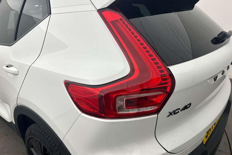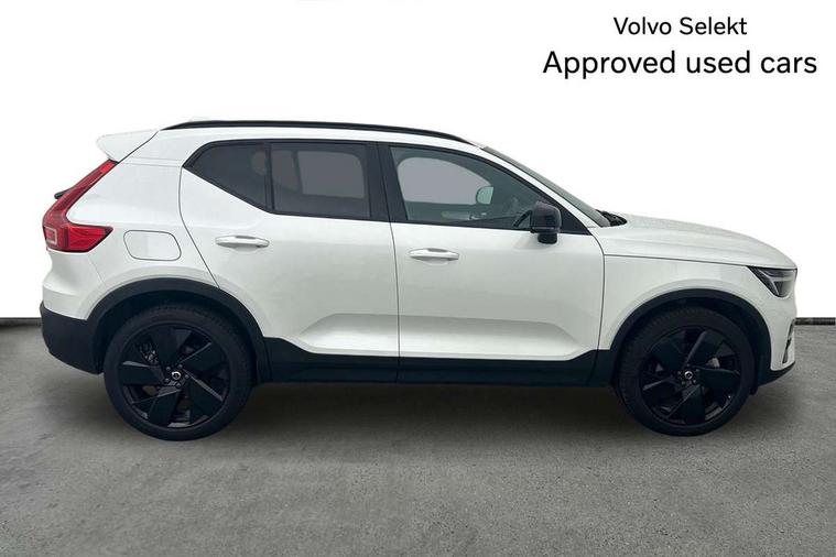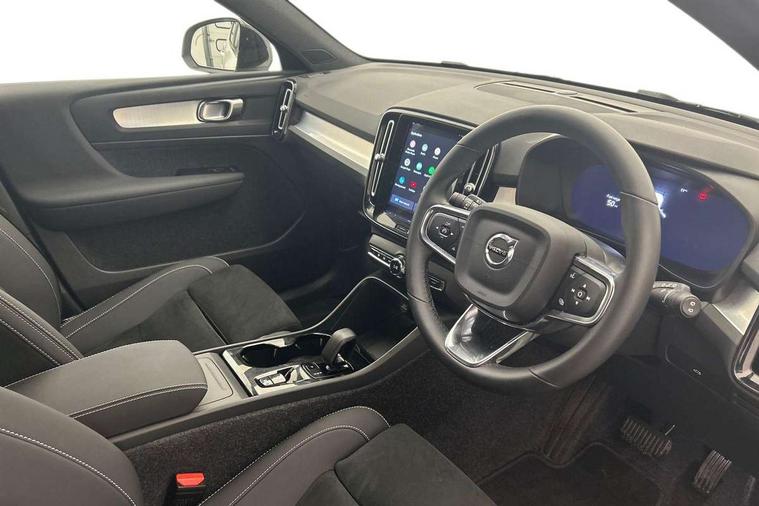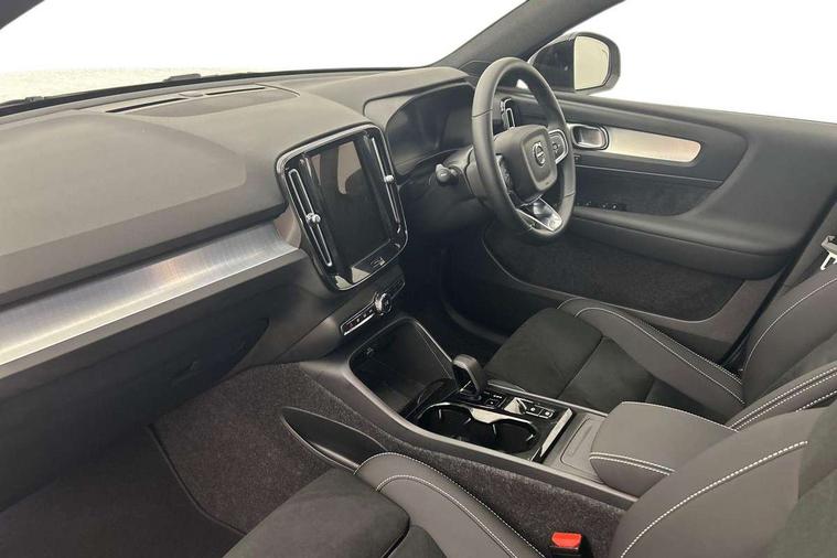 12.3" Progressive Driver Display, 9" centre console portrait touch screen, Adjustable steering wheel force, Android auto (Wired), Apple carplay (wired), Bluetooth handsfree system, Driver alert control, Driver assistance (pilot assist and adaptive cruise control), Driver awareness - Blind spot information system with steer assist, cross traffic alert with autobrake and rear collision warning and mitigation, E-call, Front and rear parking sensors, Front park assist, Google automotive services - Enabled entertainment apps, navigation with google maps, voice recognition with google assistant, Hands free power tailgate, Intelligent speed assistance, Lane keeping aid, Oncoming Lane Mitigation, Speed sensitive steering, Volvo cars services with app - Driving journal, engine remote start, remote door locking/unlocking and vehicle dashboard, Wireless/Inductive Mobile Phone Charging, Automatic transmission with start/stop and manual change functions, Dynamic chassis, DAB Digital radio, Steering wheel mounted remote controls, Adaptive brake lights with high level LED brake lights, Auto dimming feature for exterior door mirrors, Auto dimming interior mirror, Auto folding and heated power door mirrors, Automatic headlamp levelling, Automatic LED Headlights + Active high beam incorporating daytime running lights, Dark tinted windows - rear side windows and rear screen, Front aluminium tread plates, Front and rear electric windows, High gloss black front and rear skid plate, High gloss black front bumper deco, High gloss black front grille strikethrough and ironmark, High gloss black rear model, engine and volvo logo badges, High gloss black window trim, Home safe and approach lighting, Integrated roof rails in high gloss black, LED front fog lights, Puddle lights, Rain sensor with automatic windscreen wiper activation, Rear side wing doors, Rear wiper, Roof antenna, Roof spoiler, Visible VIN plate, 12V socket in front tunnel console and luggage compartment, 2-Zone electronic climate control with CleanZone air quality system and pollen filter, 3 seat bench in 2nd row, 3 Spoke tailored steering wheel with chrome trim, 60/40 versatile split folding rear seat, Centre console cupholders and storage, Charcoal carpet and floor mats, Charcoal headlining, Connect suede textile/microtech upholstery, Flexible load floor and grocery bag holder, Front headrests, Front seat cushion extensions, Glovebox bag hook, Heated front seats, Height adjustable passenger seat, Height/reach adjustable steering column, High gloss centre tunnel deco, High level illumination - Front door pocket, front side step (under door), tailgate, instrument panel, front door inlay, rear courtesy&reading lights, Integrated waste bin, Isofix attachments on outer rear seats, Load cover, Load protection net, Mid level illumination - Front footwell, luggage & glovebox compartment, front cabin courtesy & reading lights, illuminated vanity mirrors+ticket holder, Multi directional lumbar support for driver and passenger seat, Power driver seat with memory + exterior mirrors memory, Rear armrest with cupholders, Rear headrests, Single front passenger seat, Underfloor luggage compartment storage, Climate pack without heated front seats - XC40, 3x3 point rear seatbelts, City safety with steering support with Pedestrian + cyclist + front collision warning with full auto brake and rear auto brake, Driver and passenger airbags, Drivers knee airbag, Electronic parking brake with auto hold, First aid kit, Front and outer rear seatbelt reminder and pretensioners, Front seats SIPS airbags, Hill descent control - Off-road drive mode, Hill start assist, IC (Inflatable Curtains) - Full Length, Passenger airbag cut-off device, Power child locks on rear doors, Road sign information display, Run off Road Protection, SIPS (Side Impact Protection System), Slippery road and hazard light alert, Stability and Traction Control with Spin control, Engine Drag Control and Corner Traction Control, Tyre pressure monitoring system, Vehicle deceleration control with Anti-lock Brake System, Electronic Brake Distribution and Emergency Brake Assist, Warning triangle, WHIPS whiplash protection system - front, 2 x Key integrated remote control central locking including with deadlocking system and auto open/close windows, Anti-theft alarm including immobiliser/volume sensor + level sensor, Keyless drive includes keyless entry and keyless start, Locking wheel nuts, 20" 5 spoke high gloss black alloy wheels,