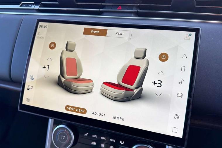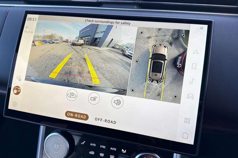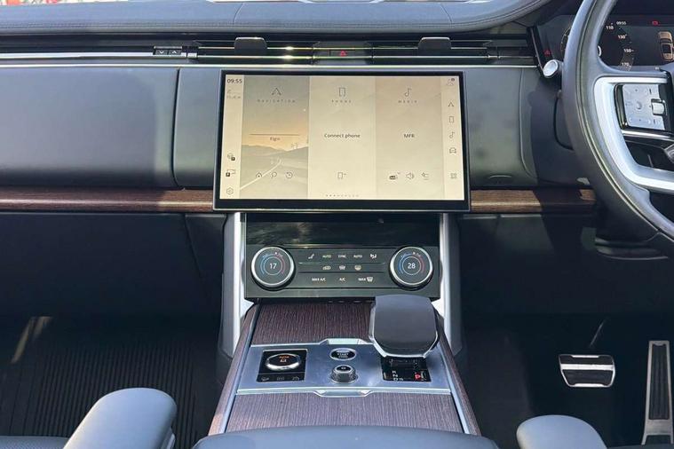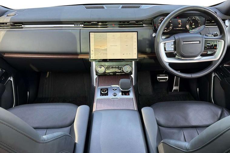 13.1" Touchscreen, 3D surround camera inc frwd traffic detection, vehicle clearance guidance, 3D view, clearsight ground view, manoevure light, 360 parking aid, wade sensing, Adaptive cruise control with steering assist, All Terrain Info Centre, All wheel steering, Android Auto, Apple car play, Blind spot assist, Bluetooth connectivity streaming, Driver condition response, Eco mode, Electric power assisted steering (EPAS), Emergency call service, Front and rear parking aid, Interactive driver display, Lane keep assist, Powered gesture tailgate/boot lid, Rear collision monitor, Rear traffic monitor, Remote, Traffic sign recognition with adaptive speed limiter, Wi-Fi Enabled with data plan, Wireless device charging with phone signal booster, 7 kW onboard charger, 8 speed automatic transmission, Active damper technology system, Adaptive dynamics, All terrain progress control, All Wheel Drive (AWD), Automatic access height, Home charging cable 5m Mode 2 including plugs, Public charging cable 5m Mode 2 including plugs, Terrain Response 2 Auto, Twin speed transfer box, Digital Audio Broadcast radio-DAB, Pivi pro including smart settings, Connected navigation pro, nuance speech, USB socket, Acoustic laminated windscreen, Animated directional indicators, Automatic headlights, Automatic levelling headlights, Centre high mounted stop light, Electric windows with one touch open/close and anti trap, Flush deployable exterior door handles, Front and rear recovery eyes, Front fog lights, Headlamp power wash, Heated rear window, Heated washer jets, LED tail lights, Power fold, auto-dimming, heated door mirrors with approach lights, Rain sensing windscreen wipers, Range rover badge, Rear boot, Rear fog lights, Rear side wing doors, Rear wash/wipe, Side repeater indicators in mirror, Trailer stability assist, Winter wiper park position, 12V power sockets, 3 seat bench in 2nd row, Air quality sensor, Bright metal pedals, Cabin lighting, Customer configurable single point entry, Driver and passenger front seat armrests, Easy boot loading, Ebony Carpet, Front and rear cupholders, Front and rear grab handles, Front head restraints, Gearshift paddles, Heated steering wheel, Hook in load space, Loadspace light, Luggage tie down in loadspace, Multifunction steering wheel, Rear centre armrest, Rear head restraints, Rear ISOFIX, Single front passenger seat, Twin blade sunvisors with Illuminated vanity mirrors, Upper and lower glovebox, Online pack with data plan - Range Rover, 3x3 point rear seat belts, Anti-lock braking system (ABS), Brake hold function, Cornering brake control (CBC), Customer configurable autolock, DSC - Dynamic Stability Control, Electronic brake force distribution, Electronic parking brake, Electronic traction control, Emergency brake assist, Emergency braking, Front airbags with passenger seat occupant detector, Front side airbags, Hill descent control, Hill launch assist, Low traction launch, Occupant protection assist, Power operated child locks, Roll stability control, Tyre pressure monitoring system (TPMS), Immobiliser, Intrusion sensor and alarm, Keyless entry, Locking wheel nuts, Remote central locking, Noble chrome controls,