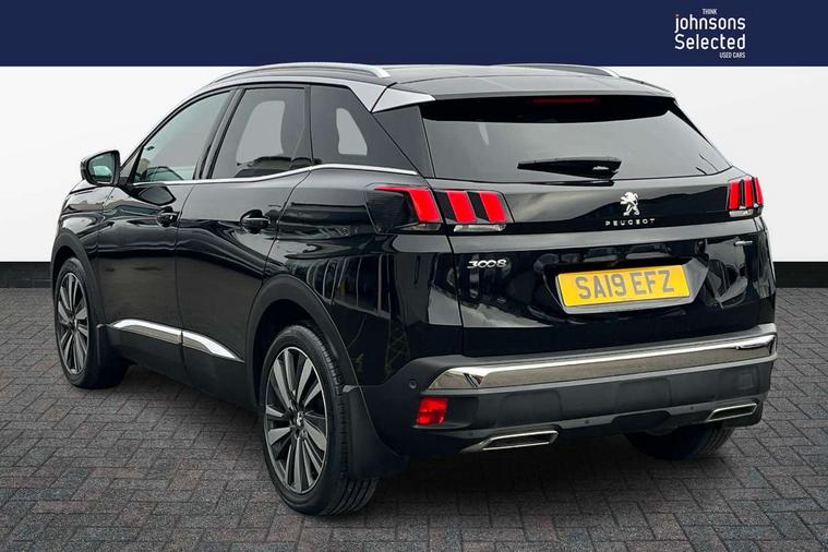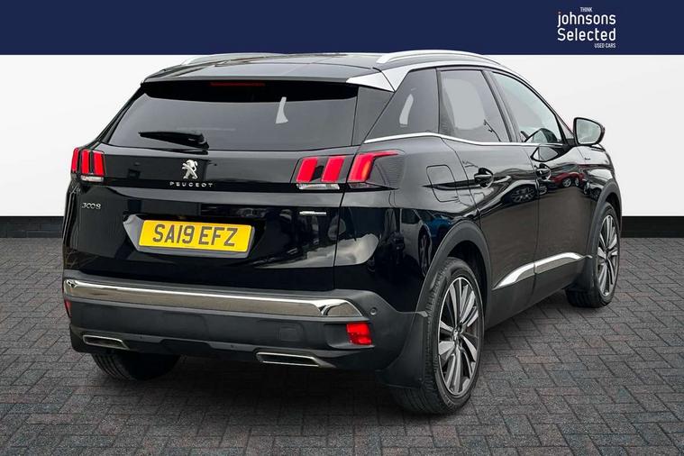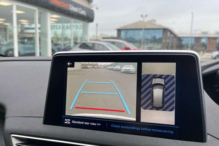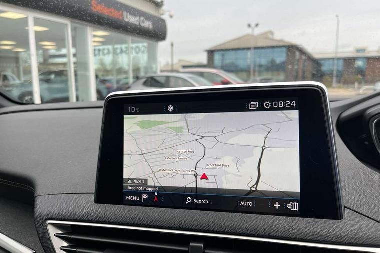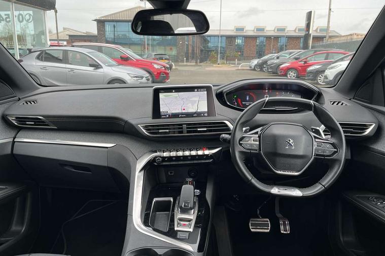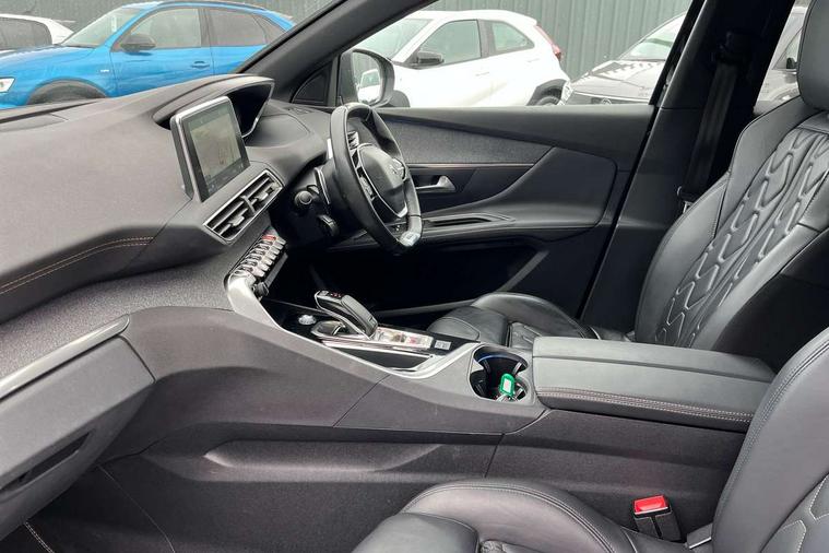 'Lights On' Reminder warning buzzer, 3D connected navigation + voice control + Peugeot connect SOS and assistance, Bluetooth telephone facility, Digital clock, Exterior temperature indicator with ice warning, Front and rear parking sensors, Lane departure warning system, Mirror screen with mirror link, apple carplay and android auto, Multi function trip computer, PEUGEOT i-Cockpit with 8.0" capacitive touchscreen in centre console, PEUGEOT i-Cockpit with amplify (choice of two configurable interior ambiences), PEUGEOT i-Cockpit with compact sports steering wheel, PEUGEOT i-Cockpit with configurable 12.3" Head-up digital instrument panel, Smartphone charging plate, Speed limit recognition and recommendation, Sports button, Diesel particulate filter, Dynamic stability control and electronic anti-skid system, DAB Digital radio, Steering column mounted multifunction controls, USB socket, 2 X Rear number plate lights, Aluminium longitudinal roof bars, Automatic hazard light activation upon heavy brake application, Automatic triggered rear windscreen wiper in reverse gear, Black and chrome front wing trim, Black bumper protection plate, Body colour door handles, Body colour rear spoiler with stainless steel edging trim, Body coloured bumpers, Body protectors (bottom of front and rear bumpers + wheel arches + protection at bottom of doors) in black, Chrome bumper inserts, Chrome front fog light trim, Chrome radiator grille and surround, Chrome rear bumper facia, Chrome side window trim, Dark tinted rear side windows + tailgate window, Door mirror mounted LED Peugeot lion approach lights, Electric operated/heated door mirrors, Front windscreen wiper with magic wash cleaning system, Full LED headlights with LED fog lights with static cornering function, sports front bumper and grille, Gloss black finish B and C pillar, Gloss black rear cluster connecting strip, Gloss black windscreen surround, GT Line emblem in satin copper, Headlights left on audible warning, Heated rear windscreen with integrated antenna, LED daytime running lights, LED sequential scrolling front indicators, LED side indicator lights integrated into door mirrors, Lion grey front bumper scuff plate, Nera black door mirrors, One touch electric front/rear windows with pinch protection, Panoramic opening glass roof, Power folding door mirrors with blind spot detection indicator and auto dipping function in reverse gear, Radiator grille in chrome edge trim with chequered design and black 'PEUGEOT' lettering, Rear LED Peugeot signature 'Claw Effect' lights, Sports front bumper, Stainless steel roof arches, Twin exhaust tailpipe, 1/3 to 2/3 split folding rear seats, 12V Sockets in dashboard, rear cabin and load area, 2 cupholders in front centre console, 2 rear reading spotlights, 230V socket on rear centre console, 2x Rear coat hooks, 3x Isofix child seat fittings in the front passenger and outer rear seats, 4 Grab handles retractable and damped, 4 Lashing eyes in boot, Aikinite stitching in armrest, gear lever and dashboard facia, Automatic gear lever in satin chrome, Blue ambient lighting for connecting zone, Blue ambient lighting to front door panels, central storage and cupholders, Blue ambient lighting to head up instrument panel, Centre front armrest with butterfly wing opening and illuminated storage compartment, Driver and front passenger seat height adjustment, Driver seat manual adjustment, Dual zone automatic climate control, Electric power steering with reach and rake adjustable steering column, Fixing rings 4 in load compartment, Flocked front door pocket interior with blue ambient lighting, Flocked glovebox interior, Fold flat front passenger seat with picnic table, Footwell illumination, Front headrests, Front interior light with 2 reading spotlights and rear interior light with timer, Front seat back map pockets, Gear shift indicator, Height adjustable headrests, Illuminated glovebox, Illuminated vanity mirrors, LED interior lighting in storage spaces and load area, Mistral floor mats with Aikinite contrast stitching, Mistral full grain perforated leather steering wheel with aikinite stitch detail and satin chrome 'GT Line' emblem, Rear armrest with ski flap and two cup holders, Rear centre console ventilation system, Rear headrests, Reclining front seats, Roof LED interior lighting, Roof lining - Mistral black, Satin chrome dashboard trim, Satin chrome digital instrument panel and touchscreen trim, Satin chrome front door panel recess trim, Satin chrome interior door handles, Satin chrome scorpion's tail and toggle switch trim, Seatbelt not fastened audible and visual alert for front seats, Seatbelt unfastened on the move audible and visual alert for front and rear seats, Stainless Steel Scuff Plates, Two position boot floor, Safety pack - 3008, Safety Plus Pack - 3008, Visibility pack - 3008, 3x Rear three-point retractable seatbelts with force limiters in the outer rear seats, Adaptive driver and front passenger airbags with passenger airbag deactivation function, Anti-lock braking system with electronic braking distribution and emergency braking assistance, Auto city emergency braking, Driver and front passenger side airbags, Driver SMART airbag, Electric child locking functionality on rear windows and doors, Electric parking brake, ESP with ASR, Front and rear curtain airbags, Front optimised safety headrests and 3 x rear retractable headrests with height adjustable, Front passenger SMART airbag with deactivate switch, Front three point retractable seatbelts with pre tensioners and force limiters, Front ventilated disc brakes and rear disc brakes, Height adjustable front seatbelts, Hill start assist, Tyre pressure sensor, Anti theft alarm, Automatic door lock/re-lock after 30 seconds, Central locking button on dash, Deadlocks, Electric tailgate with Peugeot open & go system, Electronic immobiliser, Locking wheel bolts, Remote control central locking with two plip keys, Brumeo fabric Dashboard, front and rear door