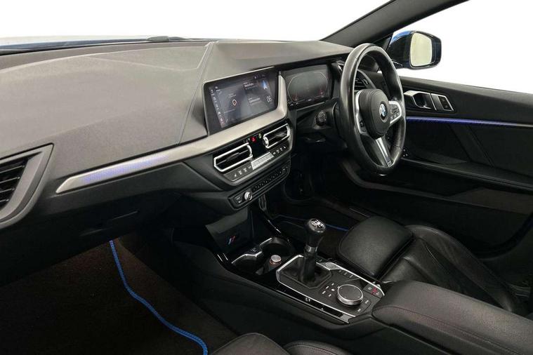Active guard plus, Attentiveness assist, Auto start-stop, BMW iDrive controller on centre console, BMW Intelligent Personal Assistant, BMW Live Cockpit Professional with 10.25" high resolution instrument and control display, BMW Online services, BMW operating system with 7.0 mid interface, BMW Teleservices, Check Control warning system for monitoring of lights and door/luggage compartment open warning, Connected eDrive Services, Cruise control with braking function, Eco pro mode, Electric Power Steering (EPS) with Servotronic, Integrated navigation data with map data via USB +features such as 3D landmarks and micro city models, Integrated owners handbook, Intelligent voice assistant, Lane departure warning system, On board computer - average speed+fuel consumption, service interval, clock/date, odometer/trip meter, outside temperature display and ice warning, Optimum shift indicator, Personal Profile, Pull away assistant, Smartphone integration, Speed limiting function, 6 speed manual transmission, Anti roll bar front and rear, Balancer shaft, Double VANOS, Drive performance control with ECO PRO comfort + sport mode, Electronic differential lock, High precision injection, M sport suspension, Performance Control, Petrol Particulate Filter, Twin tube gas filled shock absorbers with degressive characteristic curve, VALVETRONIC engine management, 2x USB Type C ports (for charging and data transfer), 4G LTE Connectivity with hard wied 4G network sim card, Bluetooth audio streaming, BMW Music, Connected music, DAB digital radio, MP3 players and RDS double tuner, Automatic headlight beam throw control, Automatically dimming rear view mirror, Body colour door handles, Body colour mirror caps, Chrome 'M' logo side designation, Chrome exhaust single tailpipe, round, Direction indicator side lights integrated exterior mirrors, Electric windows - front and rear, with open/close fingertip control and trap release, Exterior mirrors - electrically folding with anti-dazzle, Fading support, Follow me home headlights, Front and rear bumper system with replaceable deformation elements, Front door sill finishers in black plastic with M designation in metallic look, Heated, electrically adjustable exterior mirror aspheric on driver side, convex on passenger side, High gloss black B pillar finish, High gloss shadow line exterior trim, High level third brake light, LED daytime running lights, LED front fog lights, Lightweight engineering, Model designation on right side of tailgate, Preparation for high beam assistant, Rain sensor with automatic headlight activation, Rear boot, Rear fog lights, Rear side wing doors, Reversing light in rear light cluster, Welcome lighting, 12V power socket in centre console, 2 cupholders in front centre console, 3 rear seat head restraints, 3 rear seats, 3 spoke M sports design leather steering wheel finished in nappa leather with specific M badge, Anthracite floor mats, Anthracite headlining, Automatic two zone climate control air conditioning, Child seat ISOFIX attachment for two outer rear seats and front passenger seat with anchorage points, Conditioned based service, Dakota leather upholstery with perforation and contrast stitching, Driver and front passenger seat heating, Front and rear door pockets, Front and rear side armrests integrated into door trim, Front armrest foldable with integrated storage compartment, Front centre interior light over interior mirror and rear centre automatic interior light when door is opened/ignition switched off or via remote key, Front head restraints, Front passenger seat, Front sports seats with electric side bolster adjustment, Gearshift lever with M designation, Glove compartment, Glovebox with light, Luggage compartment lighting, Manually adjustment steering wheel column, Multi-function controls for steering wheel, Sun visors with vanity mirrors and insert tab, Through loading system with 40/20/40 split folding rear seat, Two lashing eyes, Connected pack professional - 2 Series Gran Coupe, Extended Lighting pack - 2 Series Gran Coupe, Extended storage pack - 2 Series Gran Coupe, M Sport exterior styling aerodynamics pack - 2 Series Gran Coupe, 2 tone horn, Airbag - Front driver and passenger, front and rear head, front side, curtain head protection, manual deactivation of front passenger airbag possible, Anti lock braking system (ABS) with cornering brake control, BMW emergency call, Brake drying, Braking readiness, City braking function, Crash sensor activating of airbags, Unlocking doors, hazard warning lights, interior light, safety battery terminal, Dynamic stability control + (DSC+), Dynamic Traction Control - DTC, Electrically operated hand brake, Rear brake discs, Rear child proof door locks, Seat belt security check for driver and front passenger, Seatbelt warning, Side impact protection, Three point seat belts on all seats including front belt stopper, pyrotechnic belt tensioners and belt force limiters, Trailer stability control, Tyre pressure monitoring system, Ventilated front disc brakes, Warning triangle and first aid kit, Central locking switch for all doors, fuel filler cap and luggage compartment, Deadlocking function system to all doors, Drive away locking system on all doors and luggage compartment, Locking wheel bolts, Remote control with integrated key with High-gloss Black inlay and M designation and 1 button for open/ close lock, window, open luggage compartment, Start/stop button with Comfort Go keyless engine start and auto Start/stop deactivation button, Thatcham Cat.1 alarm and immobiliser, Two remote control key with integrated key - one button for open and close doors/fuel flap/tailgate and separate button for unlock luggage compartment, Contrast stitching on instrument panel, 18" Burnished M double spoke bi-colour alloy wheels finished in orbit grey - style 819M, Reduced rolling resistance tyres,