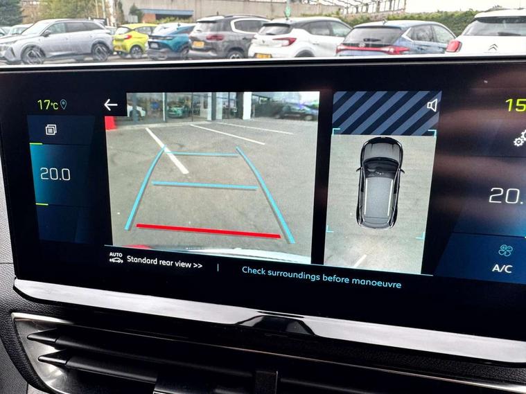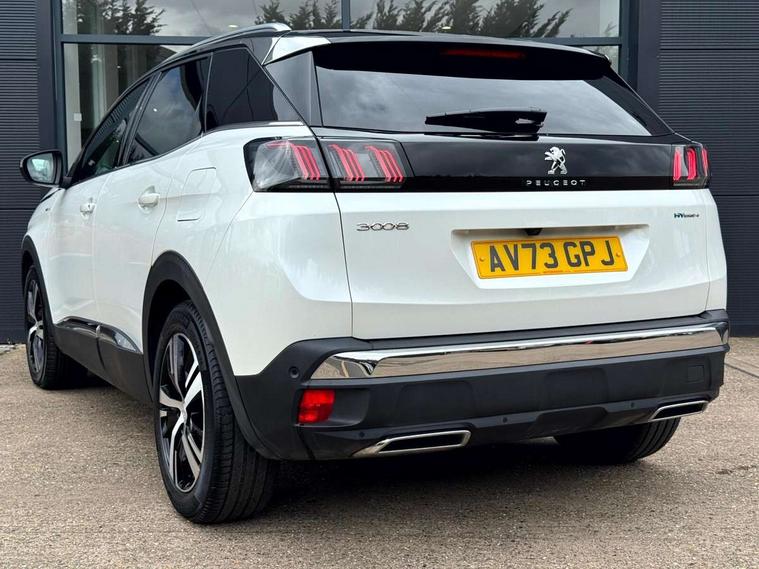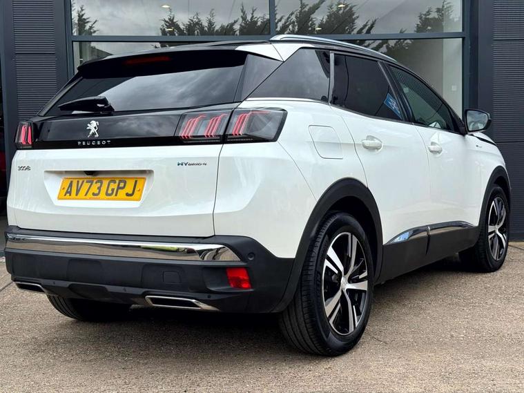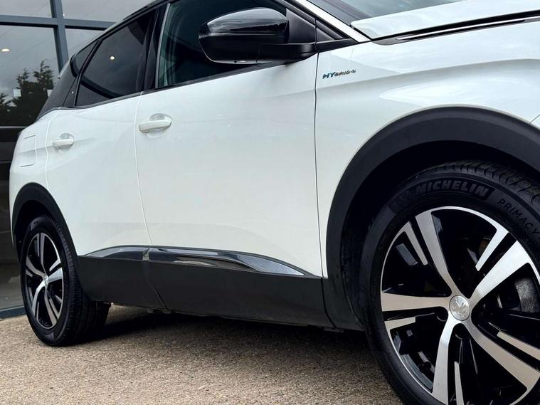3D connected navigation with 10" HD touchscreen + voice recognition system, Apple car play and Android auto, Blind spot detection system, Bluetooth telephone facility, Drive mode selector (Electric, Hybrid, Sport, 4WD) & Hill Assist Descent Control, Driver Attention Alert level 3, Driving Time Warning (DAA1), Emergency services call system, Extended traffic sign recognition, Exterior temperature indicator with ice warning, Front and rear parking sensors, Lane departure warning system, Lane Keeping Assistance (LKA) with road edge detection, Mirror screen with mirror link, apple carplay and android auto, Multi function trip computer, Peugeot i-cockpit with compact multi-function sports steering wheel, PEUGEOT i-Cockpit with configurable 12.3" Head-up digital instrument panel, PEUGEOT SOS and assistance, Rear passenger USB charging sockets (x2) (type A), Speed limit recognition and recommendation, Deferred charging option, configurable in car or via My PEUGEOT App, Dynamic stability control and electronic anti-skid system, Mode 3 type 2 cable for wallbox charging, DAB Digital radio, USB socket, Auto self levelling headlights, Automatic hazard light activation upon heavy brake application, Automatic triggered rear windscreen wiper in reverse gear, Black with chrome detailed front wing trim, Body colour door handles, Body colour rear roof spoiler with stainless steel edging trim, Body protectors (bottom of front and rear bumpers + wheel arches + protection at bottom of doors) in black, Dark tinted rear side windows + tailgate window, Diamond Black door mirror shells, Door mirror mounted LED courtesy floor lighting, Electric folding door mirrors with exterior courtesy LED lighting, Electric operated/heated door mirrors, Fog Mode, Front windscreen wiper with magic wash cleaning system, Full LED headlights with LED fog lights with static cornering function, Gloss black B and C pillar and aerodynamic deflector trim, Gloss black front bumper air scoops, Gloss black rear cluster connecting strip, Gloss black windscreen trim, Headlights left on audible warning, Heated rear windscreen with integrated antenna, High beam assist, HYBRID4 emblem on front wings and tailgate, LED daytime running lights, LED front indicator, LED rear number plate lighting, LED side indicator lights integrated into door mirrors, LED third brake light, One touch electric front/rear windows with pinch protection, Rear LED Peugeot signature 'Claw Effect' lights with clear lens and scrolling LED direction indicators, Rear side wing doors, Twin exhaust tailpipe, 1/3 to 2/3 split folding rear seats, 12V Sockets in dashboard, rear cabin and load area, 2 cupholders in front centre console, 2 cupholders in rear armrest, 2 x Rear reading spotlights, 2x Rear coat hooks, 3x Isofix child seat fittings in the front passenger and outer rear seats, 4 Grab handles retractable and damped, Aikinite stitching in armrest, gear lever and dashboard facia, Aluminium pedals, Blue ambient lighting for connecting zone, Blue ambient lighting to front door panels, central storage and cupholders, Blue ambient lighting to headup instrument panel, Cabin pre-conditioning, Centre front armrest with butterfly wing opening and illuminated storage compartment, Driver seat manual adjustment (longitudinal and back rest angle), Dual zone automatic climate control, e-Toggle compact gear selector, Electric power steering with reach and rake adjustable steering column, Fixed boot floor with access to the charging cable storage box, Flocked front door pocket interior with blue ambient lighting, Flocked glovebox interior, Foldable front passenger seat with picnic table, Footwell illumination, Front interior light with 2 reading spotlights and rear interior light with timer, Front passenger seat manual adjustment (longitudinal and back rest angle), Front seat back map pockets, Gear shift indicator, Illuminated glovebox, Individual left and right controls in boot for seat folding, LED interior lighting in storage spaces and load area, LED roof interior lighting, Mistral floor mats with Aikinite contrast stitching, Mistral full grain perforated leather steering wheel with aikinite stitch detail and satin chrome 'GT' emblem, Rear bench seat with central armrest and ski hatch, Rear centre console ventilation system, Roof lining - Mistral black, Satin chrome dashboard trim, Satin chrome digital instrument panel and touchscreen trim, Satin chrome front door panel recess trim, Satin chrome interior door handles, Satin chrome scorpion's tail and toggle switch trim, Seatbelt not fastened audible and visual alert for front seats, Seatbelt unfastened on the move audible and visual alert for front and rear seats, Sunvisors with illuminated vanity mirrors, Drive assist plus pack - 3008, Visibility pack - 3008 GT, 3x Rear three-point retractable seatbelts with force limiters in the outer rear seats, ABS (Anti-lock Braking System) with EBD (Electronic Brakeforce Distribution) and EBA (Emergency Braking Assistance), Acoustic vehicle alerting system, Adaptive driver and front passenger airbags with passenger airbag deactivation function, Driver and front passenger side airbags, Electric child locking functionality on rear windows and doors, Electric parking brake, Front and rear curtain airbags, Front optimised safety headrests and 3 x rear retractable headrests with height adjustable, Front three point retractable seatbelts with pre tensioners and force limiters, Front ventilated disc brakes and rear disc brakes, Hill start assist, Two tone horn, Automatic door locking when moving off, Electronic immobiliser, key operated exterior door lock from the left hand door, Perimetric and volumetric alarm with lift and tilt sensor, Peugeot Open and Go System, Remote control central locking with two plip keys, Puncture repair kit including compressor, sealant cartridge and towing eye,