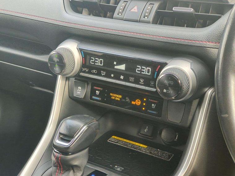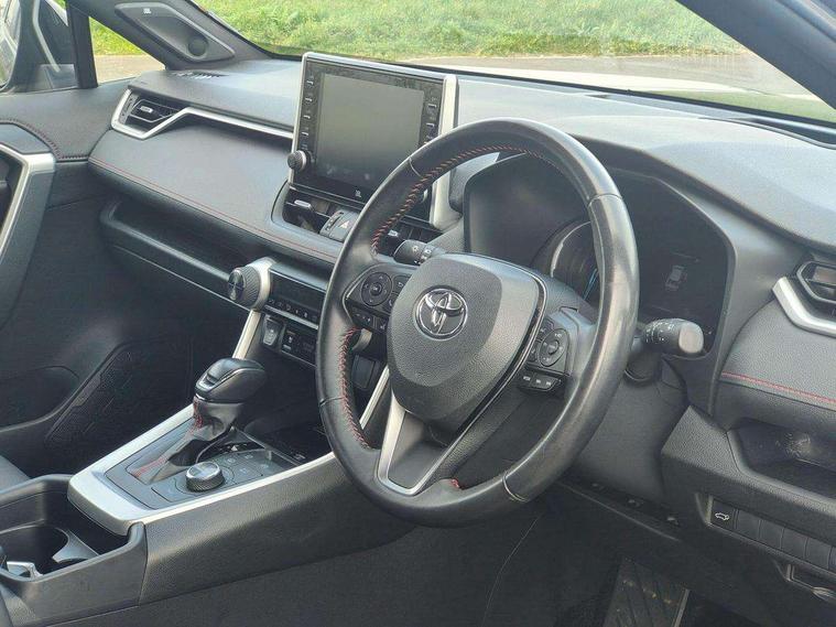 7" Coloured TFT multi informational display, Analog tachometer, Apple car play and Android auto, Blind spot monitoring with rear cross traffic alert, Bluetooth system, Cyclist Detection, Day and night time pedestrian detection, Digital speedometer, Drive mode selector, Driver attention alert system, eCall emergency call system, ECO-driving indicator, Electric power steering, EV audible alert, Front parking sensors, Hybrid system indicator, Intelligent adaptive cruise control, Lane departure alert with steering control, Lane trace assist, Lights on warning, Memory on adjustable speed limiter, My T Connected services, Power boot opening and closing, Push button start, Rear parking camera, Rear parking sensors, Remote boot door release in cabin, Remote boot door release in key, Road sign assist - RSA, Smartphone integration, Touch 2 Go navigation system, Traffic sign recognition, Trip computer, Voice control system, Wireless Mobile Phone Charger, 6.6 kw fast charger, 7.5m cable with home charging plug, Vehicle Stability Control (VSC), 2x USB sockets in front armrest, 2x USB sockets in rear, 6 speakers, 9" Multimedia display, Auxiliary socket for external MP3 player, DAB audio, Toyota touch 2 multimedia system, USB in front centre console, Anti-jam protection on power windows, Auto high beam, Auto up and down function on all power windows, Automatic headlamp levelling, Automatic headlights, Automatic wipers, Automatically retractable door mirrors, Bi-tone black roof, Black door mirrors, Black door moulding, Black front bumper, Black front grille, Black front under-run, Black rear bumper, Black rear spoiler, Black rear under-run, Black roof rails, Black Shark-fin antenna, Body colour door handles, Chrome window surround, Door mirror puddle lights, Dual exhaust pipes, Electric adjustable door mirrors, Emergency brake-light signal (EBS), Follow me home headlights, Framed electrochromatic rear view mirror, Front fog lights, Heated door mirrors, Honeycomb upper front grille, LED daytime running lights, LED dual beam projector headlights, LED front light guide, LED High mounted stop lamp, LED rear lights, Power front windows, Power rear windows, Privacy glass, Rear windscreen defogger, Rear wiper, Trailer sway control, Turning signal integrated indicators in door mirrors, 1.5L front and rear bottle holder, 12V socket in boot, 12V socket in front, 220v power socket in boot, 2x Rear coat hooks, 3 rear headrests, 60/40 split fold rear seat back with toyota easy flat system, Adjustable speed limiter switch on steering wheel, Array microphone, Black roof lining, Blue ambient lighting on front cupholders and open tray on passenger dashboard, Boot light, Clean air filter, Driver and front passenger personal light, Driver and front passenger Whiplash Injury Lessening seats, Driver and passenger seatback pockets, Driver and passenger sunvisors with illuminated vanity mirrors, Dual sided deck board in boot, Dynamic sports seats, Floor mats, Folding rear centre armrest, Front centre armrest, Front cupholders, Front footwell lights, Front headrests, Front/rear roof mounted assist grips, Heated driver and front passenger seats, Heated rear seats, Illuminated entry system, Isofix child seat preparation, Leather gearshift, Lockable glovebox, Manual telescopic and tilt 3-spoke nappa leather steering wheel, Manually reclining and sliding front passenger seat, Multimedia switches on steering wheel, Pollen filter, Power height-adjustable sliding reclining and lumbar support for driver seat, Rear console box, Rear door armrests with cupholder, Rear passenger air vents, Rear view display in display audio screen with dynamic guide lines, Reclining rear seats, Remote dual zone automatic air conditioning, Retractable tonneau cover, Satin chrome interior door handles, Silver gear shift surround on centre console, Sunglasses holder, Synthetic leather upholstery, Telephone and voice recognition switches on steering wheel, Under floor storage in luggage area, 3x3 point rear seatbelts, ABS/EBD, Acoustic vehicle alerting system, Adjustable front driver and passenger seat belt extender, Brake assist function, Brake hold function, Child proof door locks, Collision mitigation braking system, Driver/Front Passenger airbags, Driver/front passenger side airbags, Drivers knee airbag, Electronic parking brake, Electronic Stability Programme (ESP), Front and rear curtain airbags, Front and rear seatbelt reminder, Front passenger airbag detector, Hill start assist, Passenger airbag cut-off device, Pedestrian detection, Pre collision system, Seatbelt pretensioners with load limiters, Toyota safety sense, Traction control, Tyre pressure warning, Glass-breaking alarm sensors, Immobiliser, Intrusion alarm, Light - on and Key in reminder, Motion sensor alarm, Remote central locking, Smart entry + Smart start, Speed sensitive auto door locking, Tilt detection sensors, Black centre air vent surround, Black centre console, Soft-touch black upper dashboard with silver insert, Soft-touch texture on lower dashboard, 19" 5 spoke black machined face alloy wheels, Tyre repair kit,
