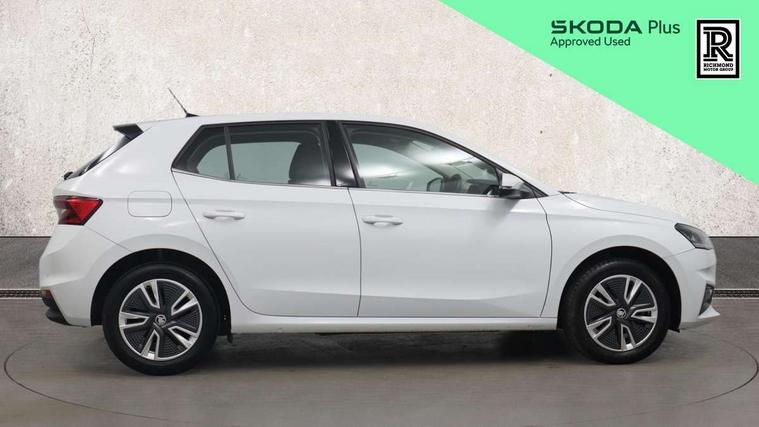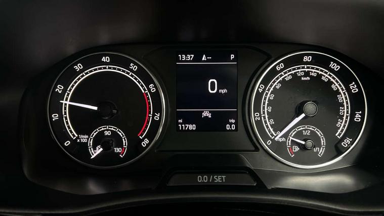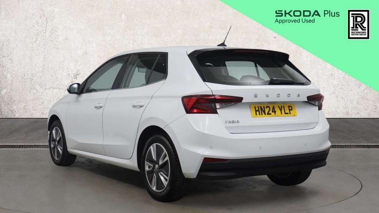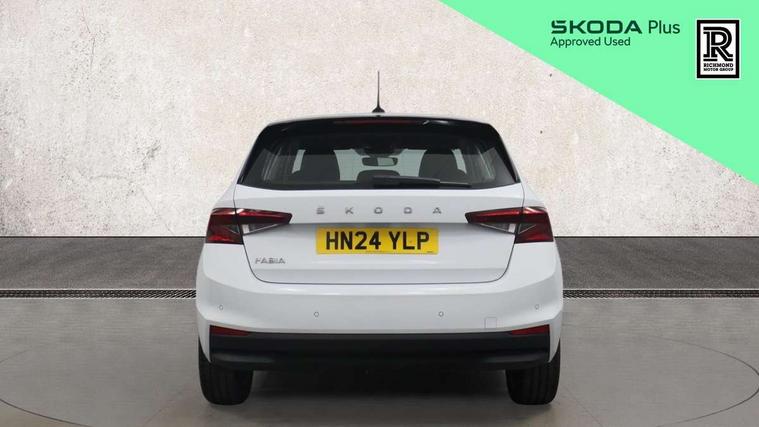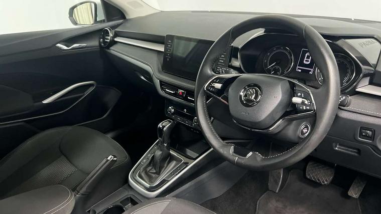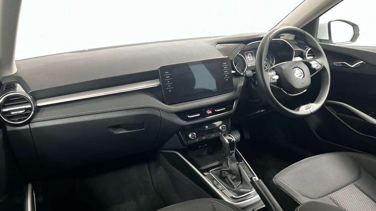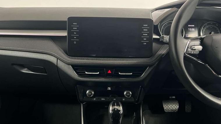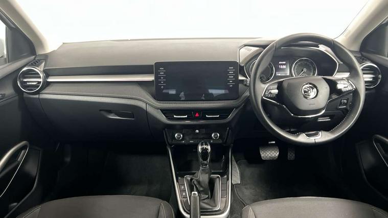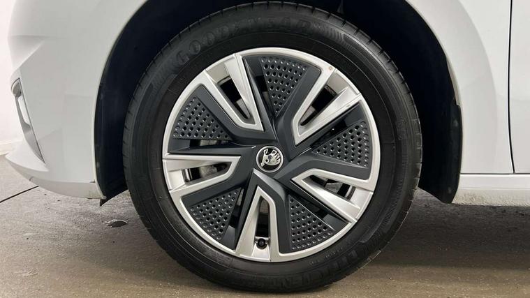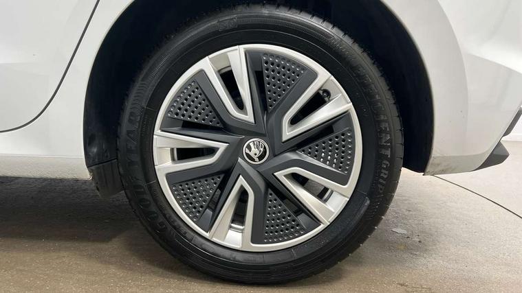 Bluetooth connection, Driver alert system - DAS, Electromechanical power steering, Exterior temperature gauge, Service interval indicator, 2x USB-C in the front (for data transmission and charging), 6 Speakers (4 in front and 2 in rear), Auxiliary socket for external MP3 player, DAB digital radio reception, Web radio, Auto dimming rear view mirror, Basic LED Headlights, Body colour door mirrors, Body coloured bumpers, Chrome window surround, Door mirror integrated indicators, Electrically adjustable and heated door mirrors, Front and rear electric windows, Front fog lights, Front window wiper intermittent control, Headlight range control - Automatic, Ice scraper in fuel cap, LED daytime running lights with coming and leaving home feature, Rain sensor, Rear LED fog light, Rear side wing doors, Rear window wiper with washing nozzles, Roof mounted spoiler, SKODA tailgate lettering in chrome, Third brake light, 3 rear headrests, Backrest split and folding, Central console with fixed cup holder and storage box, Chrome handbrake release button, Comfort seats, Fabric upholstery, Front centre armrest, Gearshift knob/handle in leather, Hand brake lever handle in leather, Height adjustable front headrests, Height adjustable front seats, Height adjustable steering wheel, ISOFIX and TopTether anchorage points to the outer rear seats, ISOFIX and TopTether on the front passenger seat, Luggage compartment lighting, Manually adjustable lumbar support in front seats, Pollen filter, Rear seat bench unsplit, Removable cup holder, Single front passenger seat, Storm grey headlining, Sun visors with mirror and airbag label on passenger side, Textile floor mats, Ticket holder, Umbrella in drivers door, 3-point height adjustable front seats belts with pretensioner and force limiter, Automatic warning lights in case of crash, Driver and passengers airbag with switch off function, e-Call+, ESC including ABS, MSR, ASR, EDS, HBA and XDS, Front and rear seat belt warning, FRONT ASSIST (AEB City and AEB Inter Urban), Front side airbags, Head airbags, Hill hold assist, One tone horn, Pedestrian protection, Three rear 3-points safety seat belts with pretensioner and force limiter including stop function for outer rear seat belts, Tyre pressure monitoring system, Anti-theft alarm system including immobiliser, interior monitoring, backup horn, and towing protection, Central locking with radio remote control, interior controls, SAFE function and 2 foldable keys, KESSY - Keyless engine start/stop, Chrome edged air vents, Satin black door and side trim panel in front, Anti-theft wheel bolts protection, Super-low rolling resistance tyres,