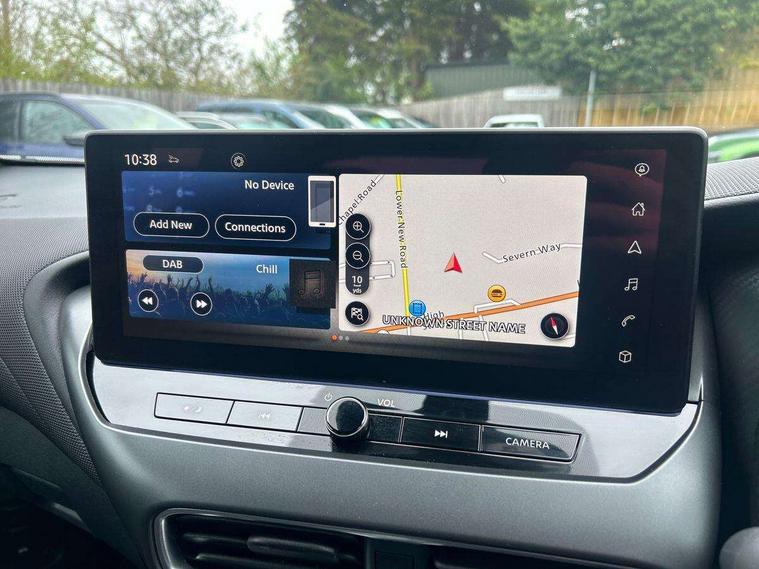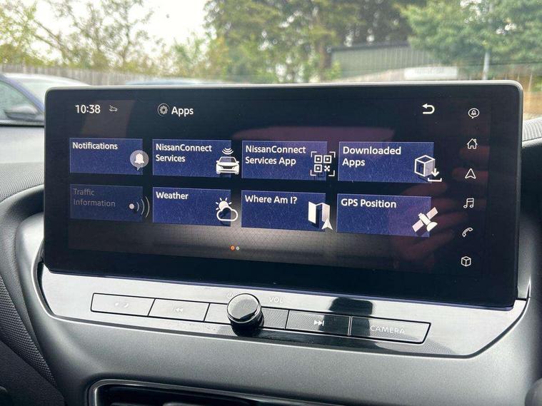 12.3" full colour TFT screen combimeter, Drive modes select (Eco, normal and sport), Emergency and breakdown call, Front parking sensor, Idle start/stop system, Intelligent driver alert system, Intelligent lane intervention, Lane departure warning system, Nissan connect 12.3" touch screen entertainment system, Nissan connect nav with TomTom traffic, Nissan connect services, Outside temperature sensor, Power Steering, Rear parking sensor, Stop/start button, Traffic sign recognition, Trip computer, Voice recognition, WiFi connectivity, Wireless Apple CarPlay and Google Android auto, Wireless Smartphone charger, 2 X Rear console USB port, 6 speakers, Bluetooth system, USB, Aux-in and 12V socket, DAB Digital radio, Auto dimming frameless rear view mirror, Automatic hazard signal with emergency stop signal, Body colour door handles, Electrically adjustable door mirrors with integrated indicators, Follow me home headlights, Front and rear electric window with one touch driver window, Heated and auto folding door mirrors, High beam assist, LED 3rd brake light, LED daytime running lights, LED headlamps, LED rear fog lamp, LED rear lamps, One touch passenger window, Rain sensor windscreen wipers, Rear privacy glass, Rear side wing doors, Rear wiper, Roof spoiler, Shark fin roof antenna in solid Black, Three blink turn signal, 3 height adjustable rear headrests, 3 seat bench in 2nd row, 60/40 split folding rear seat, Automatic climate control, Card holder on driver sunvisor, Cloth/Synthetic leather with melange fabric inserts, Driver side rear coat hanger, Driver/passenger sunvisors and vanity mirrors, Front and rear cabin lights, Front armrest, Front door pockets with bottle holders, Front head restraints, Front/rear passenger grab handles, Height adjustable driver's seat, Internal chrome door handles, Leather gearshift knob, Luggage board, Luggage space lighting, Monoform sporty seats, Multifunction steering wheel, Rear door bottle holders, Single front passenger seat, Smooth synthetic leather steering wheel, Steering wheel mounted gearshift paddles, Synthetic leather kneepad, Telescopic steering wheel adjustment, Two cupholders in front centre console, Two rear isofix child seat anchorage points with top tether, Welcome light and console tray ambient lighting, ABS with EBD and brake assist, Active ride control, Active Trace Control, Driver and passenger airbags, Driver and passenger side airbags, Electric handbrake with auto hold function, Electronic Stability Programme (ESP), Front and rear curtain airbags, Height adjustable seatbelts, Hill start assist, Intelligent emergency braking with pedestrian and cyclist recognition, Rear door child safety locks, Seatbelt reminder for driver/front passenger and rear seats, Three 3 point rear seatbelts, Traction control, Tyre pressure monitoring system, VDC Dynamic Vehicle Control, Alarm, Immobiliser, Intelligent key and start push button with walk away lock and approach unlock functions, Remote central locking, 17" Alloy wheels, Tyre puncture repair kit,