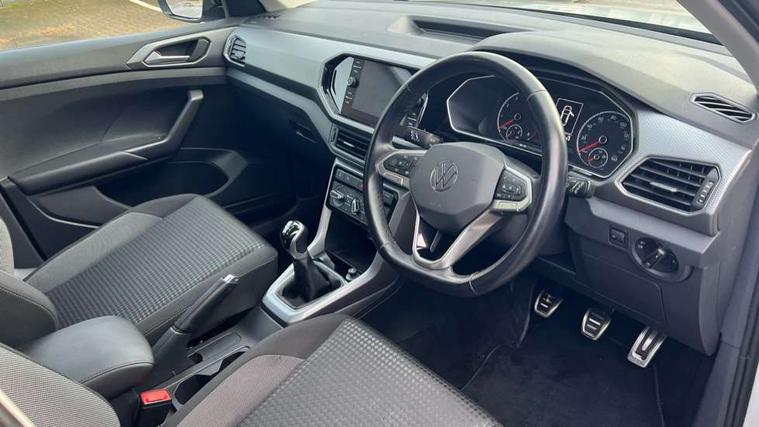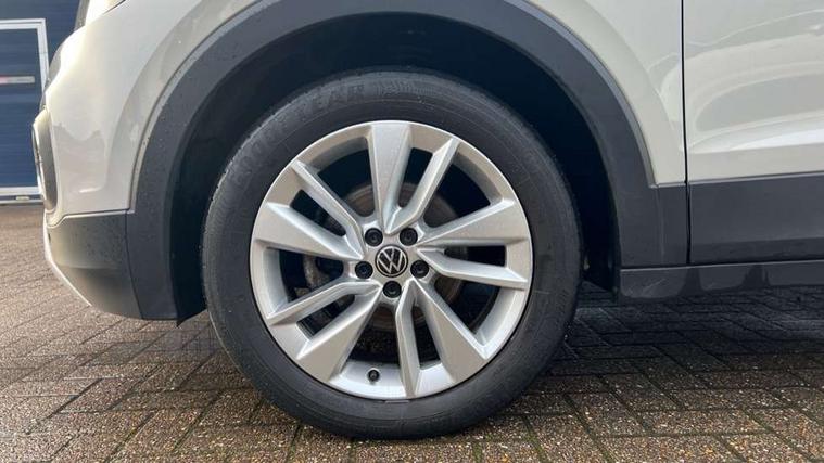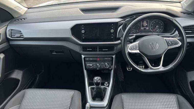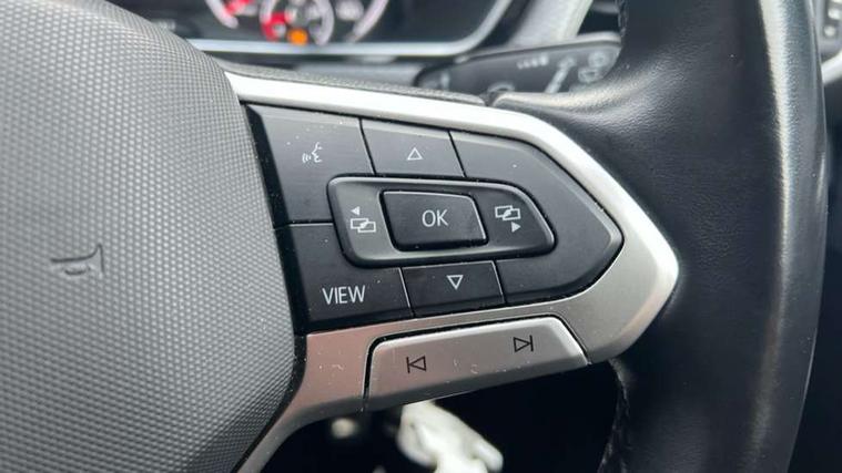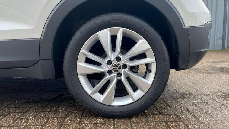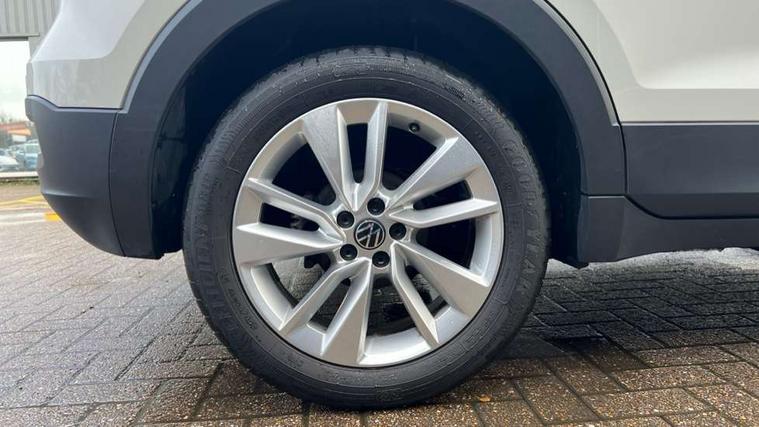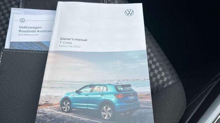'Lights On' Reminder warning buzzer, Adaptive cruise control including front assist, forward collision warning, autonomous emergency braking, speed limiter, Blind spot monitoring, Bluetooth telephone and audio connection for compatible devices, Car information display, Driver alert system, eCall emergency call system, Lane assist, Low washer fluid warning light, Multifunction computer with visual gear change recommendation for fuel consumption, Operating permit alteration, Power assisted speed sensitive steering, Speedo, rev counter, electronic odometer, trip, service interval display, exterior temperature and fuel gauge, Stop/start system, Warning sound and light for doors and tailgate open, Warning sound and light for front seatbelts unfastened, We Connect Go Dongle, Wireless Car net app connect with Apple CarPlay, combined functionality of Apple CarPlay/Android Auto and MirrorLink, Battery regeneration during braking, Misfuel prevention device, 2x USB connection with USB charging sockets and in rear centre console, DAB Digital radio receiver, Diversity antenna for FM reception, Multi device interface (MDI) with USB connection, Music playback - MP3, WMA and AAC files, Premium USB cable for Apple or Android smartphone compatibility, Simultaneous pairing of 2 compatible mobile devices, Title and cover art display, 3D active badge on B-pillar, Active door sills, Active sill panel trims, Automatic hazard lights activation under emergency braking, Black roof rails, Body colour door handles, Body coloured bumpers, Dusk sensor + automatic driving lights, Electrically foldable, adjustable and heated door mirrors with reverse activated kerb view adjustment on passenger's side, Front and rear electric windows, Front fog lights with static cornering function, Galvanised body, Heated rear window, High level 3rd brake light, Lower door sills and door pillars in black, Radiator grille with high gloss surface and chrome strip, Rear fog light on one side, reversing light on both sides, Rear lights incorporating LED technology, Rear side wing doors, Rear tinted glass 65% approx light absorbing from B pillar backwards, Rear window aerial, Rear windscreen washer and wiper with interval delay, Reflectors in all doors, Tailgate with integrated roof spoiler, Windscreen wipers/ intermittent wipe + 4 position delay, 12V Accessory socket in centre console, 3 rear head restraints and 3 rear three point seat belts with ECE label, 3 seat bench in 2nd row, 60/40 split folding rear seat backrest, Ambient lighting and sourround lighting, Brushed stainless steel pedals, Drawer under drivers seat, Driver and front passenger sunvisor with vanity mirror, Driver's sunvisor with ticket holder, Dust and pollen filter, Front + rear carpet mats, Front and rear reading lights X 2, Front centre armrest with storage compartment, Front seat back storage pockets, Front seats with adj lumbar support, Glovebox, Heating and fresh air system with 4 stage blower, Height/reach adjust steering wheel, Instrument lighting white adjustable panel illumination, Interior light with delay, Isofix child seat preparation for 2 rear child seats, Luggage compartment cover, Luggage compartment lighting, Moveable and foldable Rear bench seat, Single front passenger seat, Storage compartment in drivers and front passengers door, Three spoke multi-function leather trimmed steering wheel and gearknob, Trapeze cloth upholstery, Variable boot floor, Winter pack - T-cross, Anti-lock Braking System (ABS) with Hydraulic Brake Assist (HBA), Automatic post collision braking system, Driver and front passenger safety-optimised head restraints, Drivers and Front Passengers airbags with front passengers airbag deactivation switch, ESC with EDL, ASR, EDTC and trailer stabilisation function, Extended and proactive pedestrian protection, Front and rear curtain airbags, Front seat side impact airbags, Height adjustable 3 point automatic front seatbelts with pretensioners, Hill start assist, Pre crash preventive occupant protection, Rear door child safety locks, Rigid safety cell with front and rear crumple zones, Single torn horn, Tyre pressure loss indicator, Volkswagen roadside assistance, Alarm with interior protection and deactivation via infotainment system, Child security locks in rear doors, Electronic engine immobiliser, Remote tailgate unlocking using key fob, Decorative strips in doors in matt silver/ center console, 17" Clayton alloy wheels + anti theft wheel bolts, Breakdown kit,