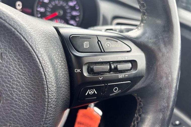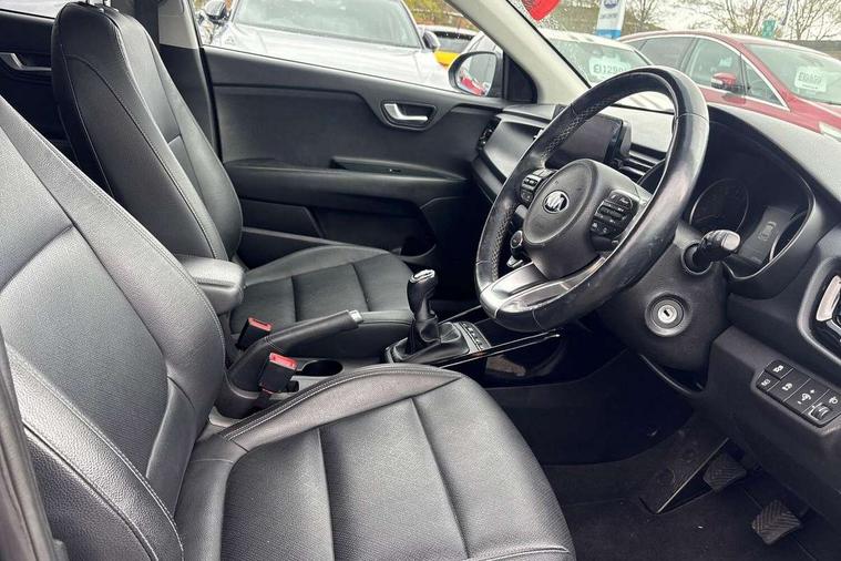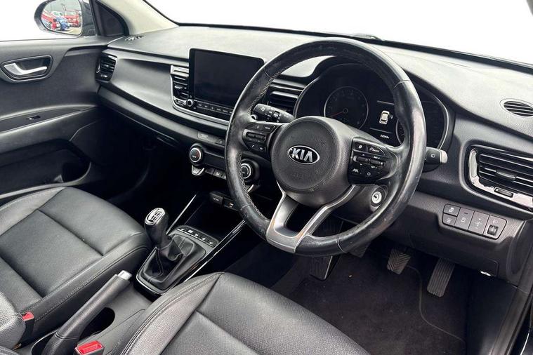 8" touchscreen navigation, Apple car play/Android Auto, Cruise control + speed limiter, Digital clock, Drive mode selector, Electric power steering, Emergency stop signalling system, Gear selection indicator, Manual speed limit assist (MLSA), Outside temperature display, Rear parking sensor, Reversing camera system with dynamic guidelines (Integrated into centre fascia screen), Tachometer, Telematics system with UVO connect services, Trip computer, Voice control system, Windscreen washer level indicator, Intelligent Stop and Go, 6 speakers, Bluetooth connectivity including audio streaming, DAB Digital radio, Front USB port for media connection, Rear USB port, Steering wheel mounted audio controls, Aeroblade-type front wipers, Auto dimming rear view mirror, Automatic defog system, Automatic lighting control, Bi-function projection headlights, Black grille with chrome surround, Body colour bumpers, Body colour door handles, Body coloured door mirrors, Chrome side window trim, Cornering light, Electric adjustable/heated/folding door mirrors, Front and rear electric windows with drivers's auto up/down function, Headlamp levelling, Heated rear window, LED daytime running lights, LED indicators in door mirrors, Privacy glass (Rear Windows and Tailgate), Projection front fog lights, Projection headlights, Rain sensing front wipers, Rear electric windows, Rear fog lamp, Rear wash/wipe, Speed variable front wipers, Tinted glass, Welcome home function, 12V power point front, 3 passenger assist grips, 60/40 split/folding 2nd row of seats, All round height adjustable headrests, Automatic air conditioning, Centre Console with Storage Box and Sliding Armrest, Dash illumination dimmer switch, Driver's seat height adjuster, Driver/passenger sunvisors and illuminated vanity mirrors, Faux leather upholstery, Front and rear door map pockets with bottle holder, Front passenger seatback pockets, Heated front seats, Heated steering wheel, ISOFIX top tethers and lower anchor points, Leather trimmed gearshift, Leather trimmed steering wheel, Load area light, Luggage area parcel shelf, Luggage hooks, Overhead console with sunglasses holder, Satin chrome interior door handles, Tilt/telescopic adjustable steering wheel, Advanced driving assistance pack - Rio, 3-point front seatbelts, 3x3 point rear seatbelts, ABS with Electronic Brakeforce Distribution (EBD) and Brake Assist System (BAS), Automatic unlocking of doors in case of impact, Cornering brake control (CBC) and Straight line stability (SLS), Electronic stability control (ESC) and vehicle stability management (VSM), Front seatbelt pretensioners + load limiters, Height adjustable front seatbelt anchors, Hill start assist control (HAC), Passenger airbag deactivate switch, Rear child proof door locks, Seatbelt warning, Traction control, Twin curtain airbags, Twin front airbags, Twin front side airbags, Tyre pressure monitoring system, Anti theft alarm, Deadlocking system, Engine immobiliser, Locking wheel nuts, Remote central door and tailgate locking with fold-away key, Speed sensitive auto door locking, Visible vehicle identification number, Black faux leather fascia trim, 16" alloy wheels, Tyre mobility system,