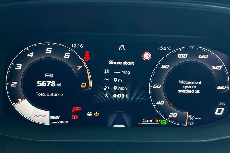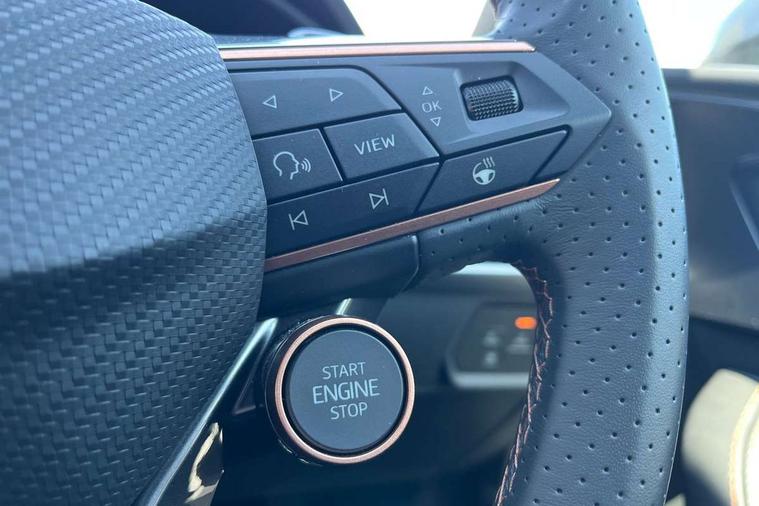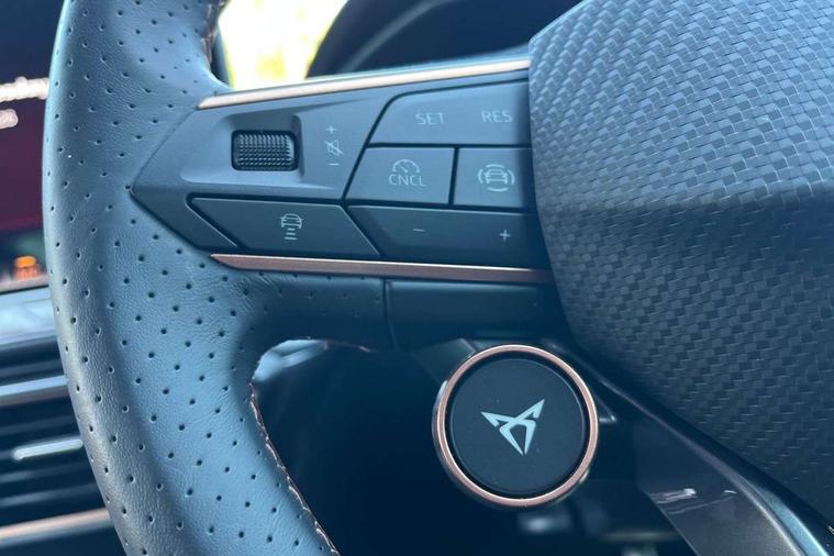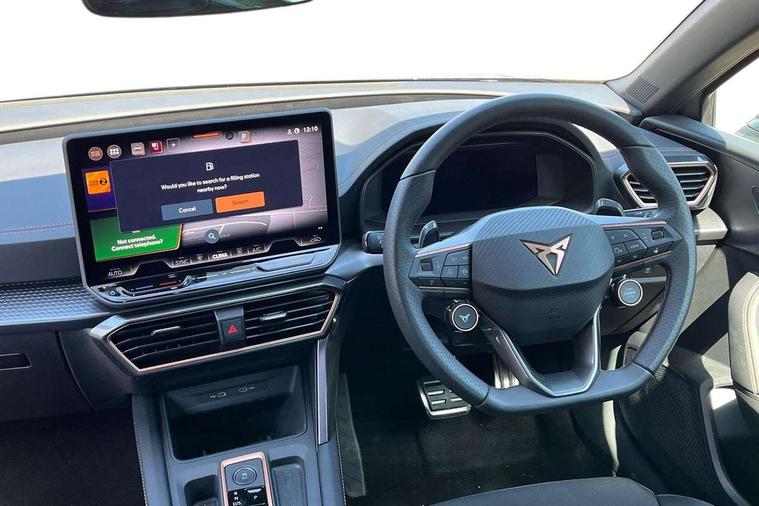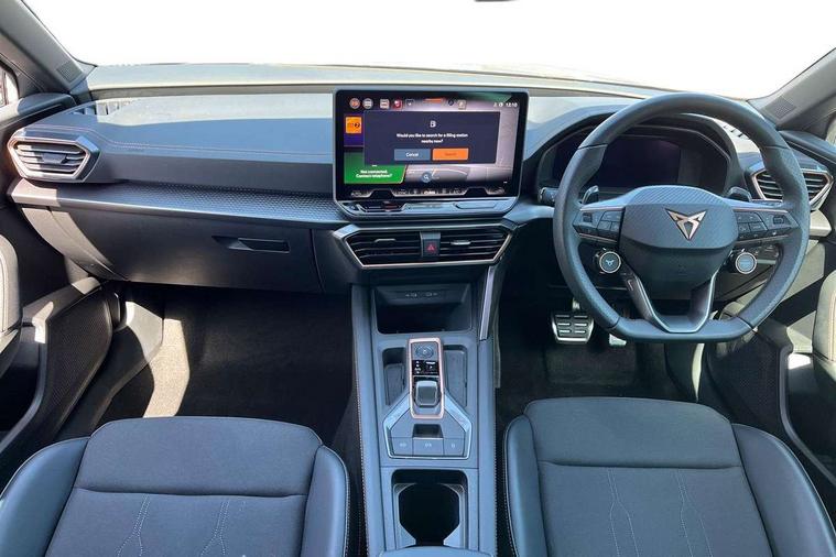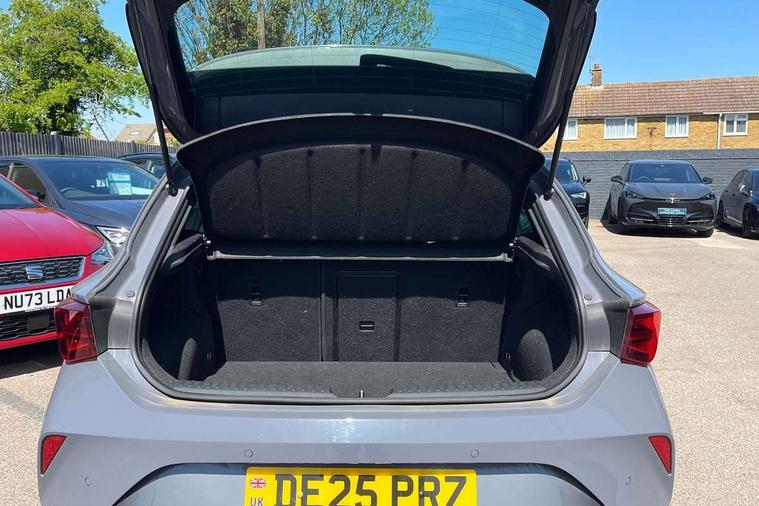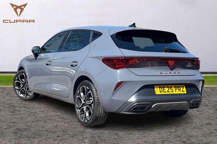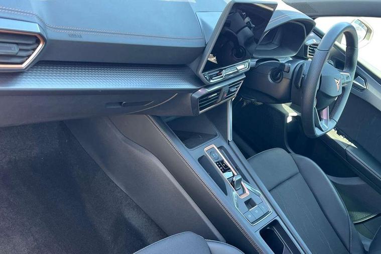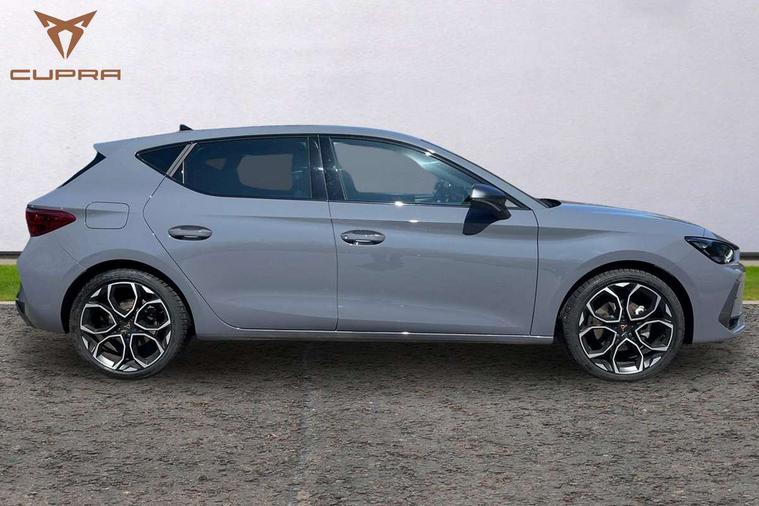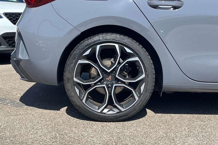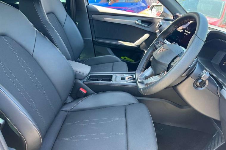 Adaptive cruise control with follow-to-stop and speed limiter, CUPRA drive profile selection with (Comfort/Sport/Individual), throttle response and gearshift mode, Digital cockpit, Dynamic road sign display, E-call, Front and rear parking sensors, Front assist with forward collision warning braking reaction to vehicles, pedestrians and cyclists, Full link smartphone integration with Mirror Link, wireless Apple CarPlay and wired Google Android Auto, Lane assist, Lockable tailgate, PAS, RPM, trip computer, outside temp gauge, instrument light brightness, low fuel warning light, lights on reminder, gearshift indicator, Service interval indicator, Start/stop system with regenerative braking, Wireless phone charger, 7 speakers, Auxiliary input socket, Auto dimming rear view mirror, Body colour door handles, Body coloured bumpers, Cupra sports bumpers, Dark tinted rear windows, Electric front/rear windows, Electrically adjustable, heated and folding door mirrors, High beam assist, LED front fog lamps with cornering function, LED headlights with dynamic turn signals, tail lights, rear fog lights with rear coast to coast lighting, LED rear fog lamp, Rain sensing wipers, Rear side wing doors, Rear wash/wipe, Separate daytime running light with automatic headlight control and coming home feature, Third brake light, Welcome light with logo projector in door mirrors, 12v power supply in centre console, 3 seat bench in 2nd row, 5 headrests, 60/40 split rear bench seat with armrest, Ambient lighting with glovebox, footwell and single monocolour, Black headlining, Cloth/PVC upholstery, Cupra sports pedals, CUPRA Supersports, heated steering wheel with satellite buttons, Driver and passenger seat with manual height and lumbar adjustment, Folding boot cover, Four x USB Type C ports (2 in front and 2 in rear), Front and rear reading lights X 4, Front centre armrest, Height/reach adjust steering wheel, Illuminated interior front door sills, ISOFIX points in outer rear seats with top tether anchorage points, Single front passenger seat, Storage pockets on rear of front seats, Sunvisors with illuminated mirror, Three zone climate control, Media system plus with 12.9" display + navigation pack - Leon Cupra, 3 point seatbelts on all rear seats, ABS, Brake control system - ESC and brake booster, Child proof door locks, Cupra black brake calipers, Driver and front passenger airbags with front passenger airbag de-activation, front side and curtain airbags, Electronic parking brake, Hill hold control, Rear disc brakes, Seat belt reminder for front and rear seats, Tiredness recognition system, Tyre pressure monitoring system, Anti theft alarm system with interior monitoring in cab, backup horn and towing protection, Central locking system Keyless Go, Locking wheel bolts, Chrome and copper interior detailing, 18" Windstorm machined sport black matt and silver alloy wheel with 92Y XL tyres, Tool kit,