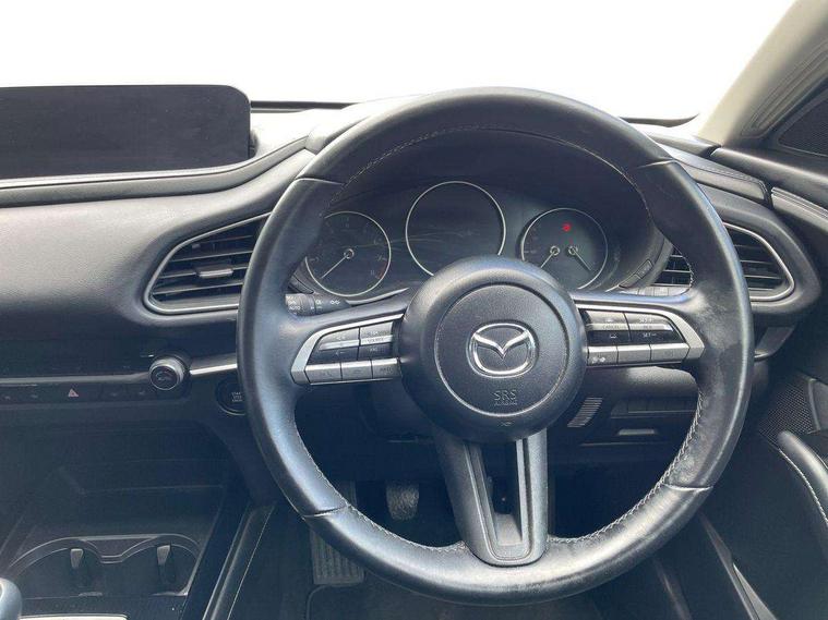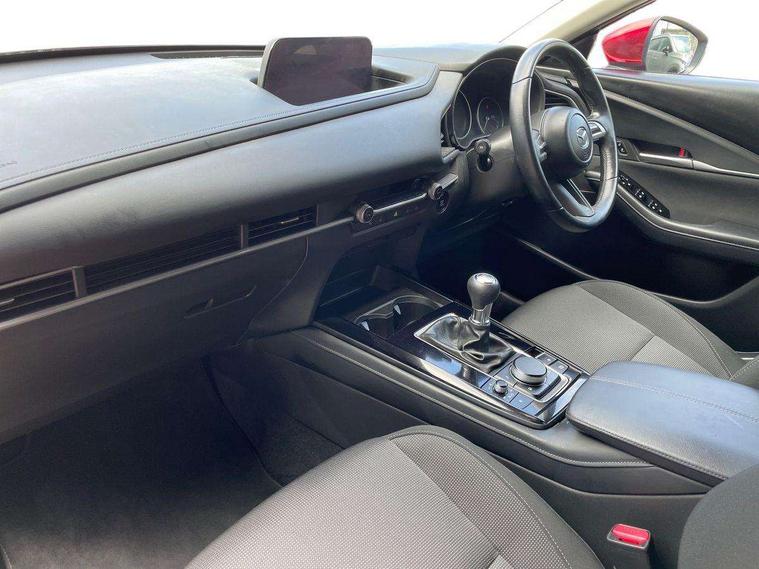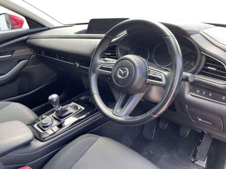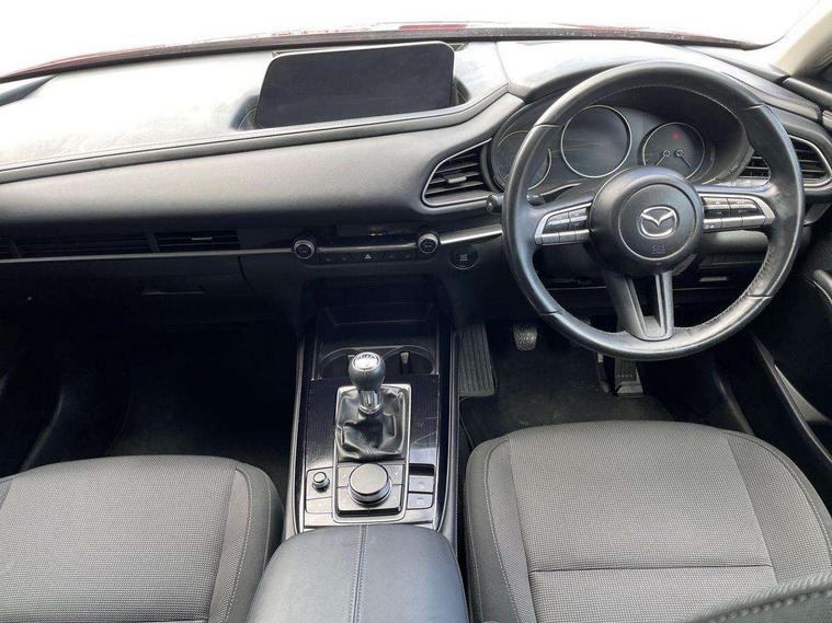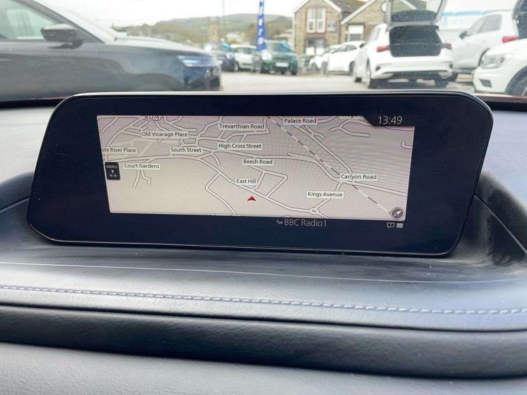 7" TFT Colour driver instrument panel display, 8.8" Colour centre touch screen display with Mazda Connect infotainment, Adaptive cruise control (Mazda radar cruise control), Apple car play/Android Auto, Blind spot monitoring with rear cross traffic alert, Driver attention alert system, E-call with GPS, Emergency stop signalling system, Engine start/stop button, Front and rear parking sensors, Integrated bluetooth, Integrated Mazda navigation system, Intelligent speed assist, Lane keep assist system (LAS) with Lane departure warning system (LDWS), Mazda connected services, PAS, Reversing camera, Service indicator, Tailgate, Traffic sign recognition, Trip computer, Windscreen projected colour active driving display (HUD), Cylinder Deactivation, i-stop, 2 USB charging ports in front inner central armrest, AM / FM / DAB radio with 8 speakers, Multimedia Commander including separate volume dial, Steering wheel mounted audio/bluetooth controls, B-pillar and C-pillar garnishes in satin black finish, Auto dimming driver's door mirror, Auto dimming rear view mirror, Auto headlight levelling, Body coloured, electrically adjustable, heated auto power folding door mirrors with integrated indicators, Chrome finish signature wing in front grille, Coming/leaving home lighting function, Dual chrome exhaust, Dusk sensing headlights, Electric front/rear windows with one touch auto up/down, Front kodo turn signal, Gloss black rear roof spoiler, LED headlights with halogen daytime running lights and high beam control, LED rear combination lights, Rain sensing front wipers with adjustable speed and intermittent wipe, Rear fog lights, Rear side wing doors, Rear wiper, Satin black front grille, Third brake light, 12V power outlet in centre console, 3 seat bench in 2nd row, 60/40 split fold down rear seats, Cloth upholstery with interior accents, Dark cloth door panel inserts, Dashboard, door cards and front centre armrest in black cloth, Driver and front passenger visors with covered vanity mirror and driver ticket holder, Driver seat manual slide, recline, height and seat tilt adjust, Driver, front passenger and two rear door storage, Driver, Front passenger and two rear grab handles with coathooks, Dual zone climate control air conditioning with rear air vents, Folding rear centre armrest with two cup holders, Front and rear (x3) head restraints, Front and rear LED lighting, Front armrest, Front centre storage with two cupholders, Front passenger seatback pockets, Front passengers seat manual slide, recline and height adjustment, Gear shift indicator, Glovebox illumination, Heated front seats with 3 stage setting, ISOFIX child seat anchorage points attached on outer rear seats, Leather wrapped gear shift knob, Leather wrapped steering wheel with telescopic and tilt adjustment, LED luggage compartment lighting, Light roof headlining and pillars, Roof mounted sunglasses holder, Single front passenger seat, 3 point ELR front seat belts x2 with pretensioners, 3 point ELR rear seat belts, Anti-lock braking system (ABS), Drivers knee airbag, DSC - Dynamic Stability Control, Electronic parking brake with auto disengage function and auto hold function, Front and rear curtain airbags, Front dual stage driver and single stage front passenger airbags, Front passenger airbag cut-off switch, Front side airbags, Front smart city brake support, G-Vectoring control plus, Hill launch assist, Manual child lock in rear doors, Mild Hybrid system with regenerative braking, Seatbelt reminder for driver/front passenger and rear seats, Traction control system (TCS), Tyre pressure monitoring system (TPMS), Remote central locking with deadlocking and automatic door lock when driving, Smart keyless entry, Thatcham accredited alarm and immobiliser, 16" Grey alloy wheels, Emergency tyre repair kit,