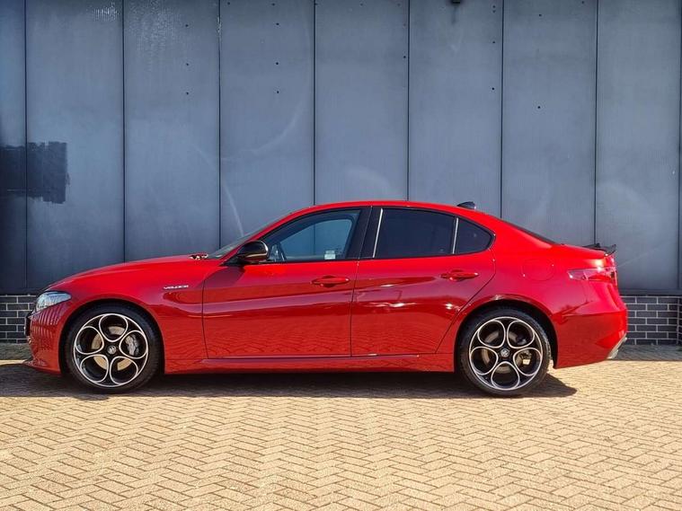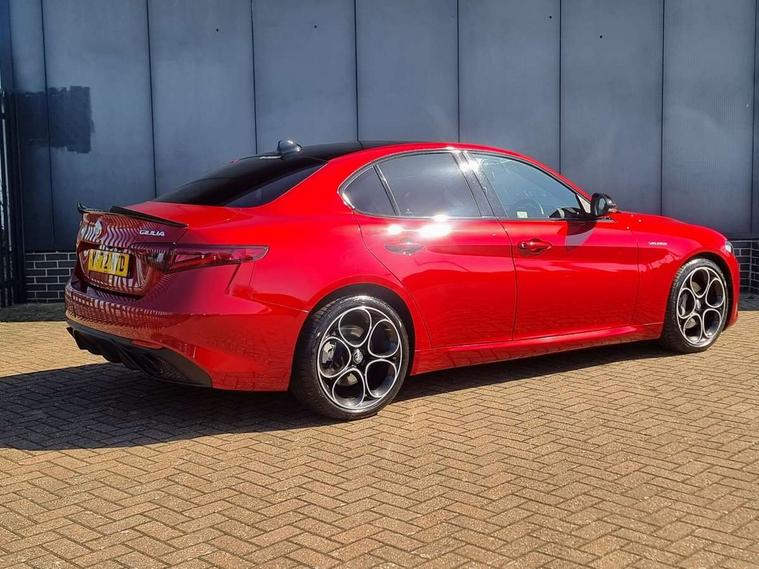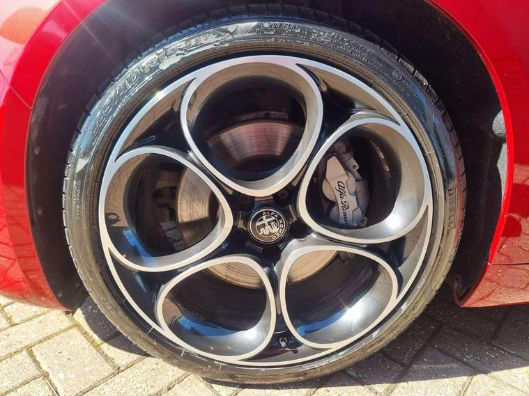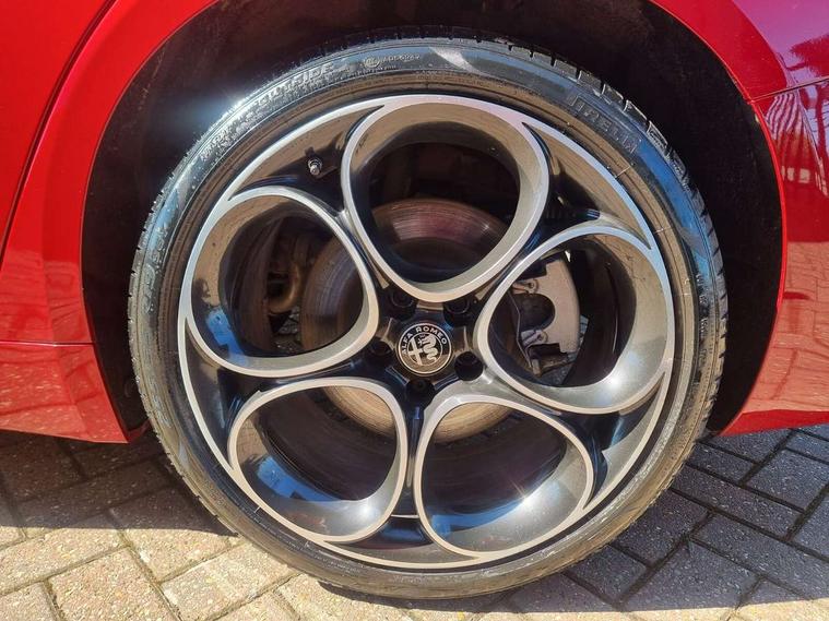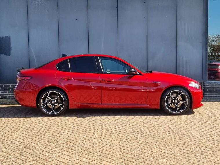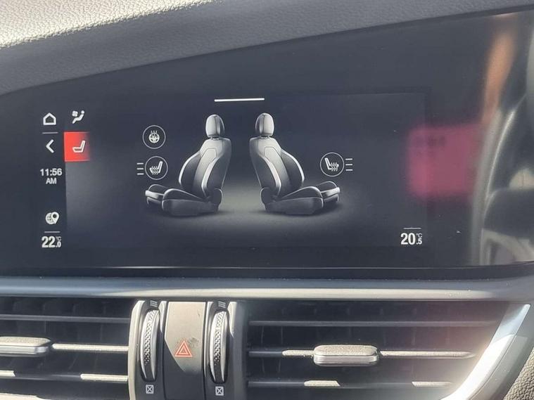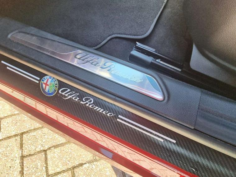 Active cruise control, Alfa connect 3D NAV 8.8'' infotainment system, radio, 3D Sat Nav, MP3, TMC pro, USB, aux-in, bluetooth with 7" TFT instrument display panel, Alfa connect box, Apple car play/Android Auto, Drive mode selector, Electrically operated tailgate, Forward collision warning, Lane departure warning system, PAS, Stop/start system, TMC Pro, Trip computer, West European Map, Wireless charging pad, Digital Audio Broadcast radio-DAB, Satin finish speaker surround system, Steering wheel mounted audio controls, USB in front centre console, USB port front armrest mounted, Adjustable headlights, Aluminium tunnel cover and front door moulding, Automatic front windscreen wipers, Automatic headlights, Dark finish exhaust finisher, Dark finish V grille, Dark tinted rear windows, Dusk sensor, Electrically adjustable and folding door mirrors, Electrochrome rear view mirror, Gloss black side window surrounds, Gloss black windscreen surround, Headlight washers, LED tail and brake lights, Rain sensor, Rear boot, Rear side wing doors, Rear wing door, Sports front and rear bumpers, Sports front splitter and rear diffuser, Veloce badging (front wing), 12V socket in front, 3 individual seats in 2nd row, 40:20:40 split folding rear bench seat, Additional soundproofing, Aluminium kick plate, Aluminium metal sport pedals and footrest, Black painted interior bezels, Boot light, Dark headlining, Dual zone climate control, English handbook, Front headrests, Front passenger seat, Power bolster, Sports leather steering wheel + gearshift, Sports leather upholstery, Sports seats, Start button on steering wheel, Third rear headrest, Cold weather pack - Giulia, Convenience pack - Giulia, Electrically adjustable seats pack, Parking assist pack - Giulia, 3x3 point rear seatbelts, ABS, Autonomous emergency braking, Child locks on rear doors, Electronic parking brake, ESP, Integrated brake system, Passenger seat airbag disable, Performance braking system with larger discs, Seatbelt warning, Traction control, Tyre pressure monitoring system (TPMS), Alarm system with bonnet and intrusion protection, Immobiliser, Remote central locking, Fix and go puncture repair kit, Monochrome central wheel caps,