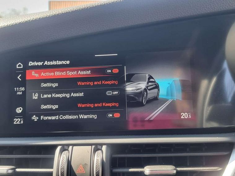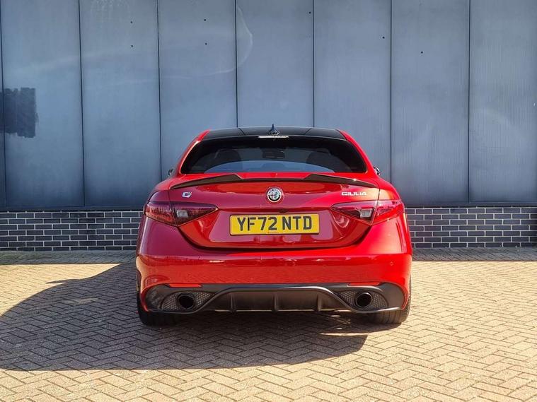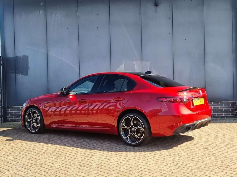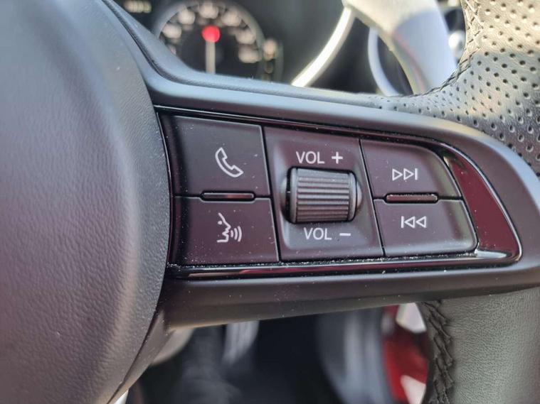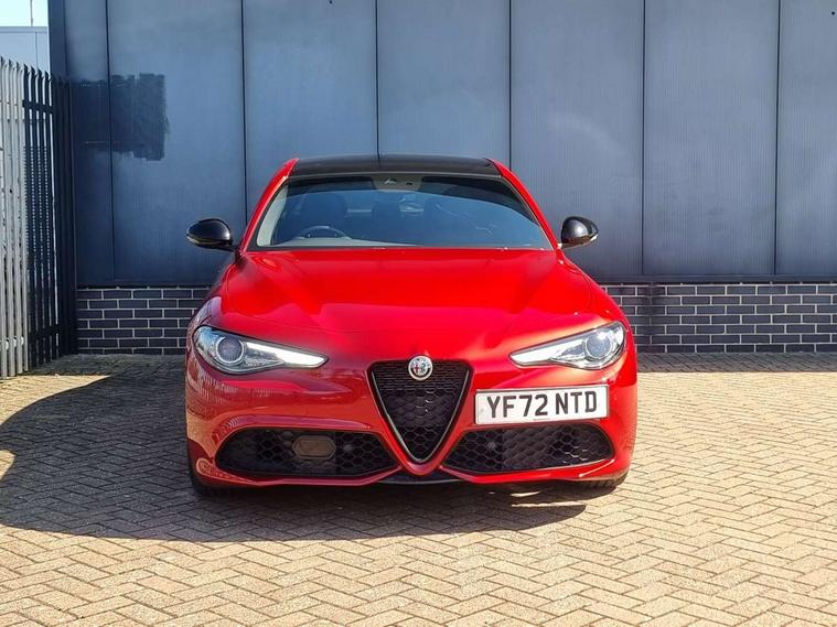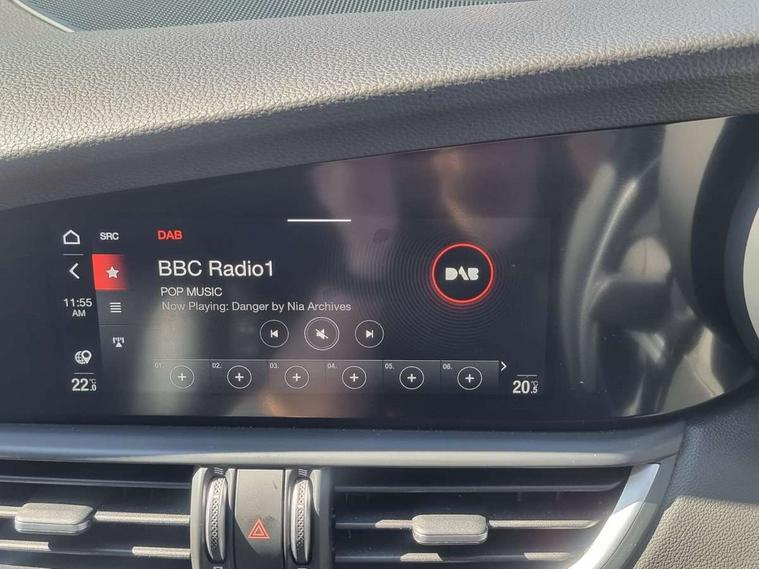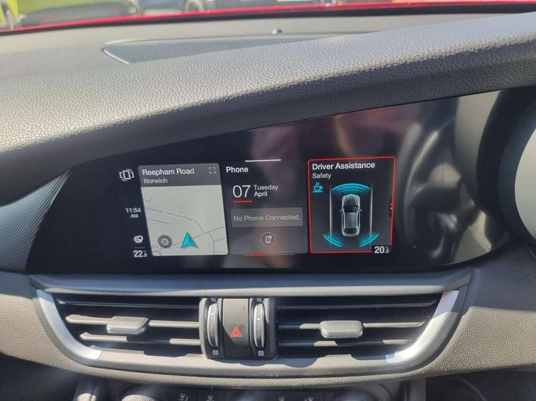 Active cruise control, Alfa connect 3D NAV 8.8'' infotainment system, radio, 3D Sat Nav, MP3, TMC pro, USB, aux-in, bluetooth with 7" TFT instrument display panel, Alfa connect box, Apple car play/Android Auto, Drive mode selector, Electrically operated tailgate, Forward collision warning, Lane departure warning system, PAS, Stop/start system, TMC Pro, Trip computer, West European Map, Wireless charging pad, Digital Audio Broadcast radio-DAB, Satin finish speaker surround system, Steering wheel mounted audio controls, USB in front centre console, USB port front armrest mounted, Adjustable headlights, Aluminium tunnel cover and front door moulding, Automatic front windscreen wipers, Automatic headlights, Dark finish exhaust finisher, Dark finish V grille, Dark tinted rear windows, Dusk sensor, Electrically adjustable and folding door mirrors, Electrochrome rear view mirror, Gloss black side window surrounds, Gloss black windscreen surround, Headlight washers, LED tail and brake lights, Rain sensor, Rear boot, Rear side wing doors, Rear wing door, Sports front and rear bumpers, Sports front splitter and rear diffuser, Veloce badging (front wing), 12V socket in front, 3 individual seats in 2nd row, 40:20:40 split folding rear bench seat, Additional soundproofing, Aluminium kick plate, Aluminium metal sport pedals and footrest, Black painted interior bezels, Boot light, Dark headlining, Dual zone climate control, English handbook, Front headrests, Front passenger seat, Power bolster, Sports leather steering wheel + gearshift, Sports leather upholstery, Sports seats, Start button on steering wheel, Third rear headrest, Cold weather pack - Giulia, Convenience pack - Giulia, Electrically adjustable seats pack, Parking assist pack - Giulia, 3x3 point rear seatbelts, ABS, Autonomous emergency braking, Child locks on rear doors, Electronic parking brake, ESP, Integrated brake system, Passenger seat airbag disable, Performance braking system with larger discs, Seatbelt warning, Traction control, Tyre pressure monitoring system (TPMS), Alarm system with bonnet and intrusion protection, Immobiliser, Remote central locking, Fix and go puncture repair kit, Monochrome central wheel caps,