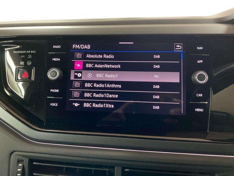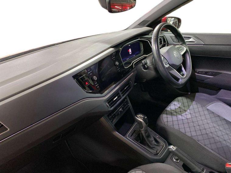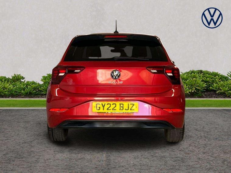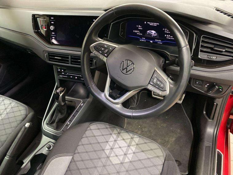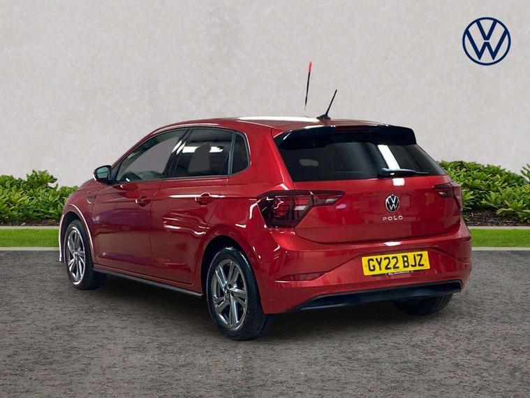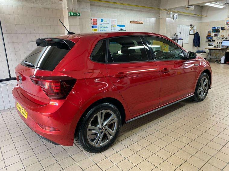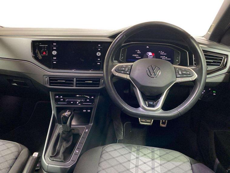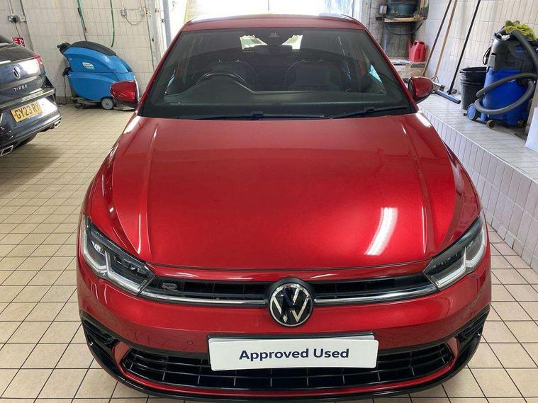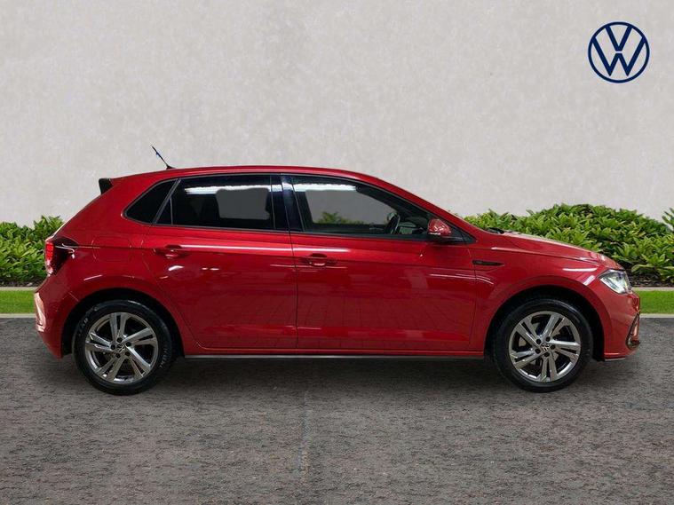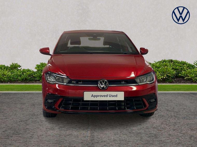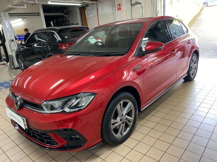 Adaptive cruise control with follow-to-stop and speed limiter, Bluetooth mobile phone interface, Digital Cockpit Pro with 10.25" Display, Driver alert system, Dynamic road sign display, Emergency call service, Power assisted speed sensitive steering, Preparation for We connect and We connect plus, Speedo and rev counter, electronic odometer, trip, service interval display and fuel gauge, Standard rear axle, Travel Assist - Lane keeping system and traffic jam assist, Travel assist including emergency assist, Trip computer, Warning signal and warning light for front and rear seatbelts not fastened, Washer fluid level indicator, Wireless app connect, Front wheel drive, Rear shock absorpion, Start-stop system with battery regeneration (recuperation - energy recovery during braking), DAB Digital radio, Diversity antenna for FM reception, Front and rear 6 speakers, Body colour bumpers, Body colour door handles, Body colour door mirrors, Electric front windows, Front fog lights with static cornering function, Front scuff plates with R-Line logo, Heat insulating darkened glass in side and rear windows, Heat insulating glass windscreen, Power folding adjustable/heated exterior mirrors and front passenger exterior mirror lowering function, Rear electric windows, Rear fog light, Rear side wing doors, Rear tinted glass from B-pillar backwards approx 65% tinted, Rear windscreen washer and wiper with interval delay, Third brake light, 12V power socket in centre console, 2 USB-C ports in the front, 2 USB-C charging sockets on the center console in the rear, 3 rear head restraints, 60/40 split folding rear seat and rear seat bench not split, Air care climatronic air conditoning system with active combination filter and 2-zone temperature control, Black roof lining, Ceramique headliner, Chrome plated radiator grille inserts, air vent surrounds and light switch surrounds, Door and side trim panel, Driver and front passenger seat height adjustment, Driver/passenger sunvisors with illuminated vanity mirrors, Front + rear carpet mats, Front centre armrest, Front footwell illumination, Front seat backrest storage pockets, Front sports comfort seats, Handbrake lever handle in leather, Isofix child seat preparation easy-fit (for two outer rear seats, and front passenger seat) compatible with I-size, Karoso artvelours cloth upholstery, Leather trimmed gear knob, LED interior light with switch off delay and dimmer, 2 reading lights front and rear, Luggage compartment cover, Luggage compartment floor, Luggage compartment lighting, Lumbar adjustment for front seats, Single front passenger seat, Stainless steel pedals, Standard pedal cluster, Three spoke leather wrapped multifunction steering wheel with shifting paddles, Light and sight pack - Polo R-Line/Black Edition, 3 point height adj front seatbelts + pretensioners, 3x3 point rear seatbelts, ABS, Driver and front passenger airbag with front passenger airbag deactivation, Drivers and front passengers safety optimised head restraints, ESC (Electronic stability control) + EDL (Electronic Differntial lock) and ASR (Traction control), Extended and predictive pedestrian/ cyclist protection, Front curtain and side airbags with center airbag, Front/rear disc brakes, Hill hold control, Manual child lock in rear doors, Single tone horn, Tyre pressure loss indicator, Alarm with interior protection, Anti-theft alarm system with interior monitoring, backup horn, and towing protection, Anti-theft wheel bolts, Electronic engine immobiliser, Chrome applications on rotary light, mirror adjustment, window regulator switches, outlet with frame in black, Dark grey anodised matt decorative inserts in dash and front door panels, Low rolling resistance tyres,