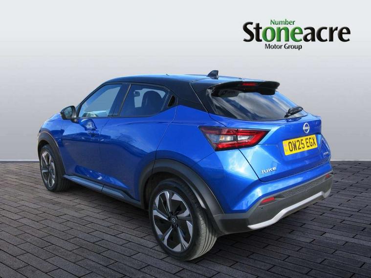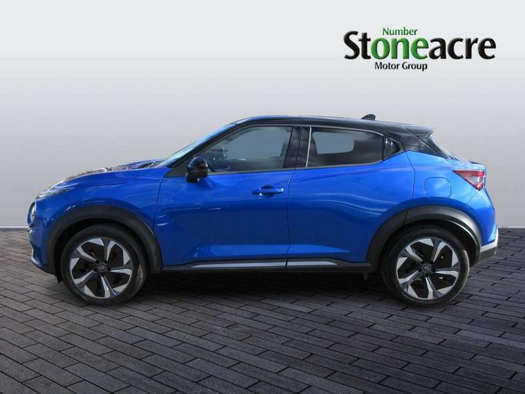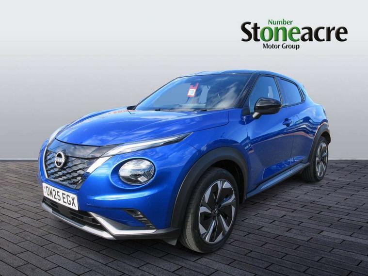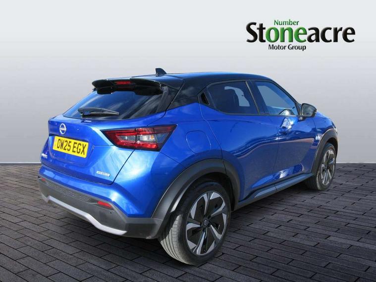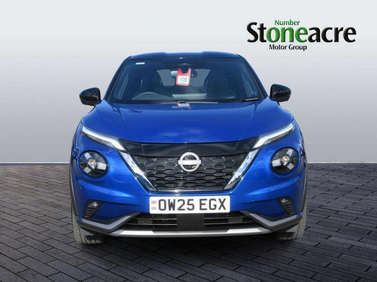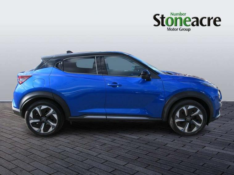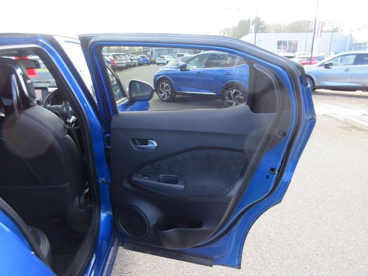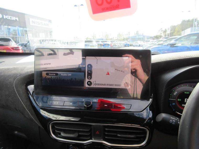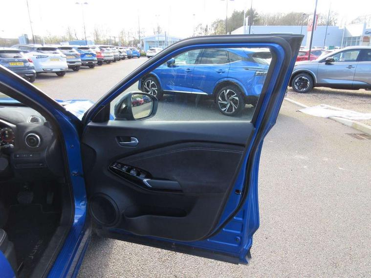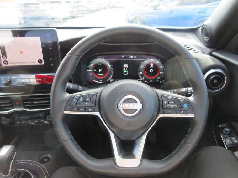 12.3" full colour TFT screen combimeter, Drive modes select (Eco, normal and sport), e-Pedal step, Emergency and breakdown call, EV mode switch, Front parking sensor, Intelligent driver alert system, Intelligent lane intervention, Lane departure warning system, Nissan connect 12.3" touch screen entertainment system, Nissan connect nav with TomTom traffic, Nissan connect services, Outside temperature sensor, Power Steering, Rear parking sensor, Stop/start button, Traffic sign recognition, Trip computer, Voice recognition, WiFi connectivity, Wireless Apple CarPlay and Google Android auto, Wireless Smartphone charger, 10 Bose speakers 8 speakers and 2 headrest speakers for driver/passenger seats, 2 X Rear console USB port, Bluetooth system, USB, Aux-in and 12V socket, Bose personal plus audio system, DAB Digital radio, Auto dimming frameless rear view mirror, Automatic hazard signal with emergency stop signal, Body colour door handles, Electrically adjustable door mirrors with integrated indicators, Follow me home headlights, Front and rear electric window with one touch driver window, High beam assist, LED 3rd brake light, LED daytime running lights, LED front fog lights, LED headlamps, LED rear fog lamp, LED rear lamps, One touch passenger window, Rear privacy glass, Rear side wing doors, Rear wiper, Roof spoiler, Shark fin roof antenna in solid Black, Solid black door mirrors, Solid black front bumper/rear bumper and side skirts inserts, Three blink turn signal, 3 height adjustable rear headrests, 3 seat bench in 2nd row, 60/40 split folding rear seat, Card holder on driver sunvisor, Door ambient lighting, Driver seat back pocket, Driver side rear coat hanger, Driver/passenger sunvisors and vanity mirrors, Front and rear cabin lights, Front armrest, Front door pockets with bottle holders, Front head restraints, Front/rear passenger grab handles, Gear console ambient circle lighting, Height adjustable driver's seat, Internal chrome door handles, Luggage board, Luggage space lighting, Monoform sporty seats, Multifunction steering wheel, Passenger seat back pocket, Rear door bottle holders, Single front passenger seat, Smooth synthetic leather steering wheel, Synthetic leather kneepad, Synthetic leather shift knob, Telescopic steering wheel adjustment, Two cupholders in front centre console, Two rear isofix child seat anchorage points with top tether, Welcome light and console tray ambient lighting, Comfort pack - Juke, Heat pack with height adjustable passenger seats - Juke, Interior personalisation pack - Juke, ProPilot pack - Juke Auto, Satin grey exterior personalisation pack - Juke, ABS with EBD and brake assist, Active ride control, Active Trace Control, Driver and passenger airbags, Driver and passenger side airbags, Electric handbrake with auto hold function, Electronic Stability Programme (ESP), Front and rear curtain airbags, Height adjustable seatbelts, Hill start assist, Intelligent emergency braking with pedestrian and cyclist recognition, Rear door child safety locks, Seatbelt reminder for driver/front passenger and rear seats, Three 3 point rear seatbelts, Traction control, Tyre pressure monitoring system, VDC Dynamic Vehicle Control, Alarm, Immobiliser, Intelligent key and start push button with walk away lock and approach unlock functions, Remote central locking, 19" Aero alloy wheels, Tyre puncture repair kit,