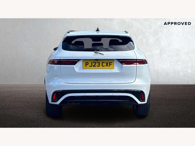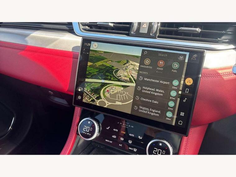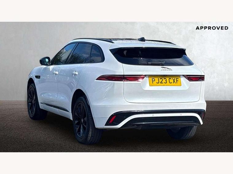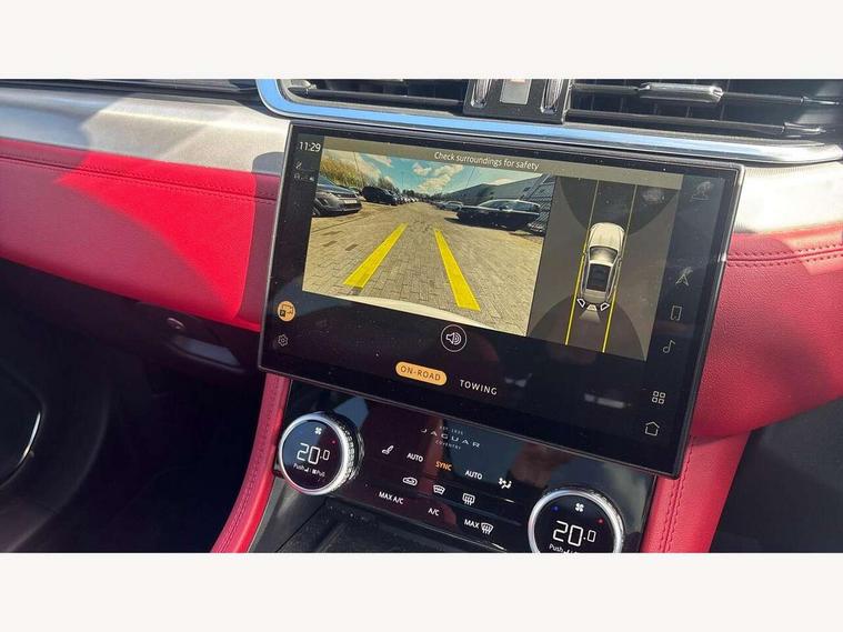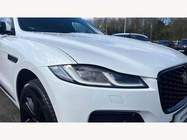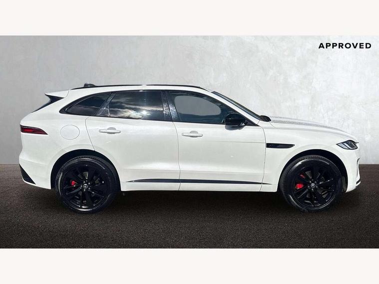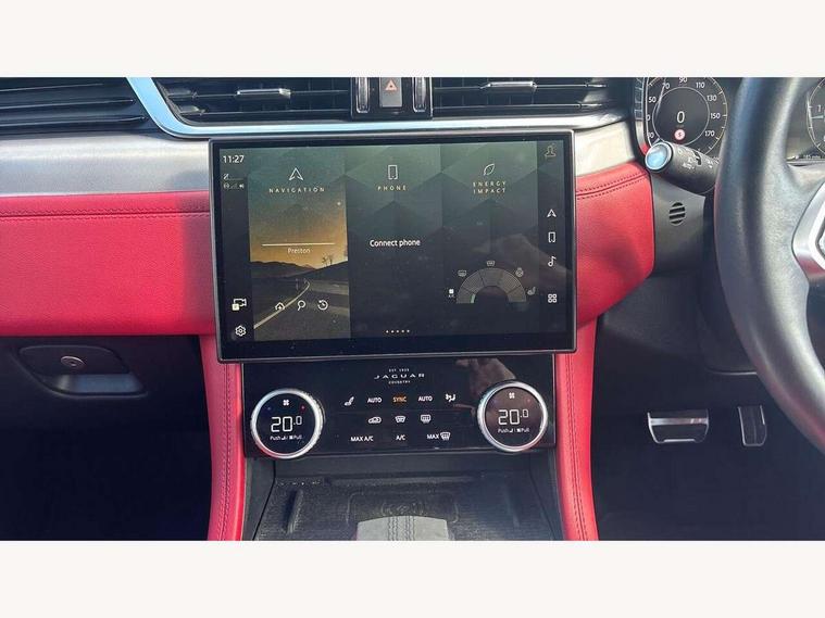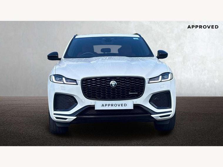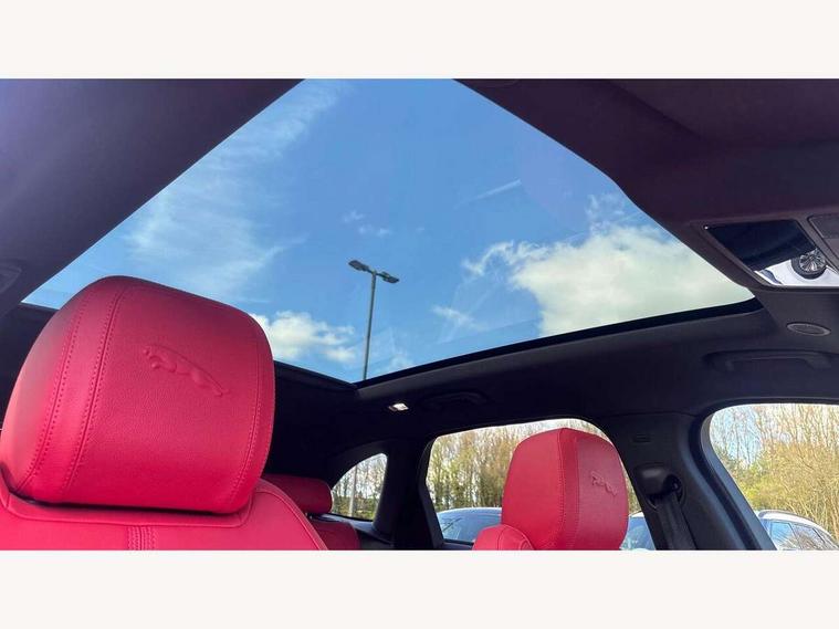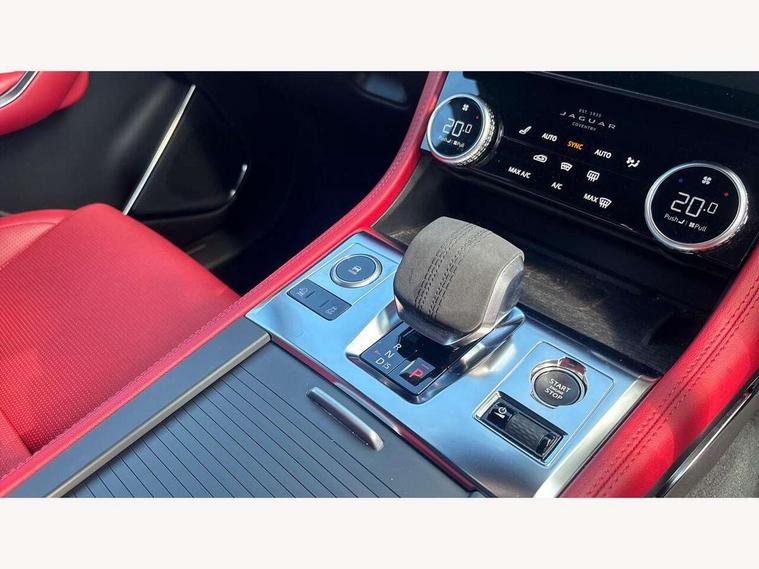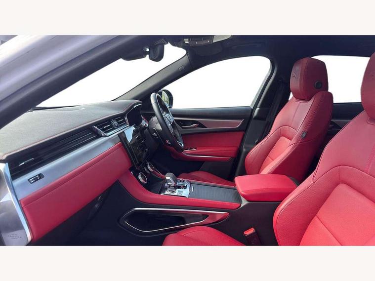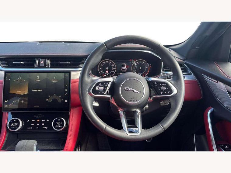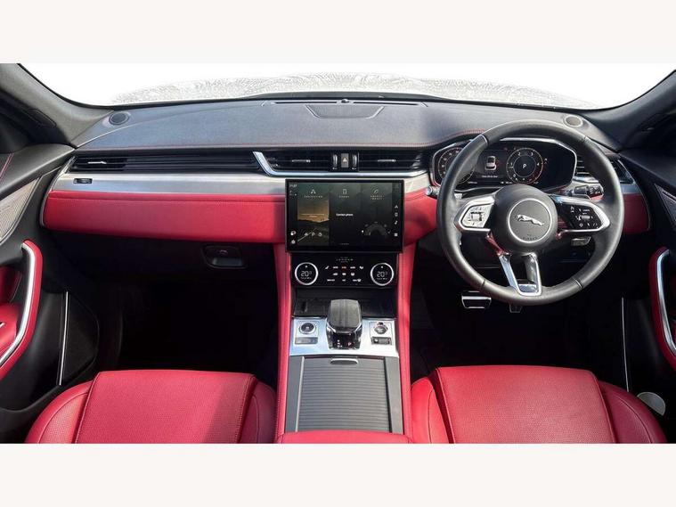 11.4" touchscreen, Android Auto, Apple car play, Blind spot assist, Bluetooth connectivity, Clear exit monitor, Driver alert system, Driver condition monitor, eCall emergency call system, Eco driving style assistant, Electric power assisted steering, InControl remote, Jaguar Toggle shift selector, Lane departure warning system, Lane keep assist, Outside temperature gauge, Personalisation profile management, Pivi pro connected navigation system with app interface and media storage, Pro services and wifi hotspot, Push button starter, Rear traffic monitor, Service interval indicator, Speed proportional steering, Start up sequence with movement in dials and lighting, Traffic sign recognition with adaptive speed limiter, Trip computer, Voice control system, 8 speed automatic transmission, All terrain progress control, All Wheel Drive (AWD), Open differential with torque vectoring by braking, AM/FM radio, Bluetooth streaming, DAB Radio (Digital Audio Broadcasting), Dynamic volume control, InControl apps, InControl protect, iPod integration, 3 flash lane change indicators, Animated directional indicators, Approach Illumination, Auto dimming rear view mirror, Automatic headlights, Electric heated/power fold memory door mirrors with approach lights and auto dimming driver side, Electric windows with one touch open/close and anti trap, F-Pace and R Dynamic badge, Green tinted glass, Heated front windscreen + heated washer jets, Heated rear window with timer, Jaguar script and leaper, LED High level third brake light, LED tail lights, Metal load space scuff plates, Non acoustic front windscreen, Privacy glass, R Dynamic badge on side door, Rain sensor windscreen wipers, Rear fog lights, Rear metal tread plates, Rear side wing doors, Rear wiper, Trailer stability assist, Variable front intermittent wipers, 12V power point front, 3 rear headrests, 3 seat bench in 2nd row, Air distribution speed, Bright metal foot pedals, Centre armrest console, Centre console with side storage, Configurable cabin lighting, Deletion loadspace storage rails, Door sill tread plates, Fold flat front seats, Front centre armrest with storage compartment, Front door storage space, Glovebox finisher with jaguar script, Heated steering wheel, Hooks in loadspace, Illuminated glovebox, Interior front door handles with separate locking switches, ISOFIX on outer rear seats, Jaguar sense, Leather steering wheel, Luggage tie downs in loadspace, Mist sensing, Multifunction steering wheel, Overhead lighting console, Overhead stowage for sunglasses, Passive front head restraints, Premium carpet mats, Rear air vents, Rear armrest with twin cupholders, Rear centre headrest, Rear door storage space, Reversible boot floor, Satin chrome gearshift paddles, Shopping bag hook, Single front passenger seat, Sunvisors with illuminated vanity mirrors, Twin front cupholders with cover, Online Pack with data plan - F-Pace, 355mm front brakes and 325mm rear brakes, 3x3 point rear seatbelts, ABS, All surface progress control (ASPC), Brake pad warning light, DSC - Dynamic Stability Control, Electric parking brake (EPB), Emergency brake assist, Front airbags with passenger seat occupant detector, Front and rear seatbelt reminder, Front side airbags, Full length side window curtain airbag, Hill launch assist, Power operated child locks, Traction control, Tyre pressure monitoring system, Immobiliser, Keyless entry, Keyless start, Locking wheel nuts, Perimeter alarm, Remote central locking, Valet mode,