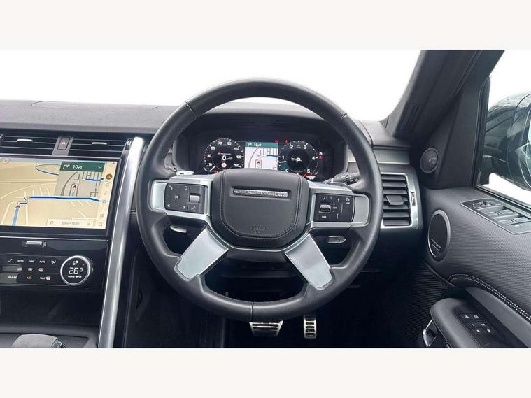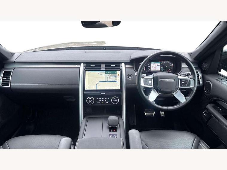 11.4" touchscreen, 3D surround camera, Adaptive cruise control, Android Auto, Apple car play, Blind spot assist, Driver condition monitor, Electric power assisted steering (EPAS), Emergency services call system, Front and rear parking aid, Lane keep assist, Power inner tailgate, Push button start, Rear collision monitor, Rear traffic monitor, Remote, Remote boot release, Service interval indicator, Speed proportional steering, Sportshift selector, Stop/start system, Traffic sign recognition with adaptive speed limiter, Trip computer, Wade Sensing, Adaptive dynamics, Dynamic stability control, Electronic air suspension, Front axle open differential, Digital Audio Broadcast radio-DAB, Dynamic volume control, Meridian surround sound system - 14 speaker + subwoofer, 18 channel amplifier, 700W, Pivi pro connected, USB/aux input socket, Acoustic laminated windscreen, Animated directional indicators, Auto dimming interior rear view mirror, Automatic headlight levelling, Automatic headlights, Body colour bumpers, Body colour door handles, Centre high mounted stop light, D300 badge, Electric heated/power fold memory door mirrors with approach lights and auto dimming driver side, Electric windows with one touch open/close and anti-trap, Heated rear window, Heated windscreen, LED darkend tail lights, Matrix LED headlights with signature DRL, Metal treadplates with R-Dynamic branding, Narvik black Discovery script, Privacy glass, Puddle lights, Rain sensing windscreen wipers, Rear fog lights, Rear side wing doors, Rear wash/wipe, Trailer stability assist, Variable intermittent wiper, 12V power sockets, 12V USB charging socket in loadspace, 2 seat bench in 3rd row, 3 seat bench in 2nd row, Central hinged twin lidded storage, Ebony morzine headlining, Electric adjustable steering column, First and second row door bins, Footwell lights, Front and rear 12V with front USB, Front passenger seat isofix location point, In-facia storage, Isofix child seat preparation for front passenger seat, Loadspace cover, Loadspace Hook, Loadspace light, Lockable glovebox, Lower centre console storage, Luggage tie downs in loadspace, Multi function steering wheel, Overhead lighting console, Premium cabin lighting, Premium carpet mats, Rear ISOFIX, Shopping bag hook, Single front passenger seat, Storage glovebox, Sunvisors with illuminated vanity mirrors, Third row storage, Twin front cupholders with cover, USB with 12V socket in centre console, Online pack with data plan - Discovery, R-Dynamic black exterior pack - Discovery, 3x3 point rear seatbelts, Anti-lock braking system (ABS), Brake pre-fill technology, Cornering brake control, Curtain airbags, Customer configurable autolock, Driver and passenger airbags, EBD - Electronic brakeforce distribution, Electronic traction control, Emergency brake assist, Emergency braking, ESP, Front side airbags, Gradient acceleration control, Hill descent control, Hill launch assist, Power operated child locks, Rear airbags, Roll stability control, Seat belt reminder, Torque vectoring brake, Tyre pressure monitoring system, Immobiliser, Intrusion sensor, Keyless entry, Locking wheel nuts, Remote central locking, All terrain tyres,