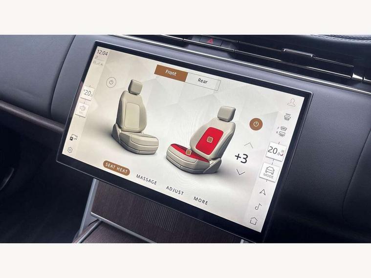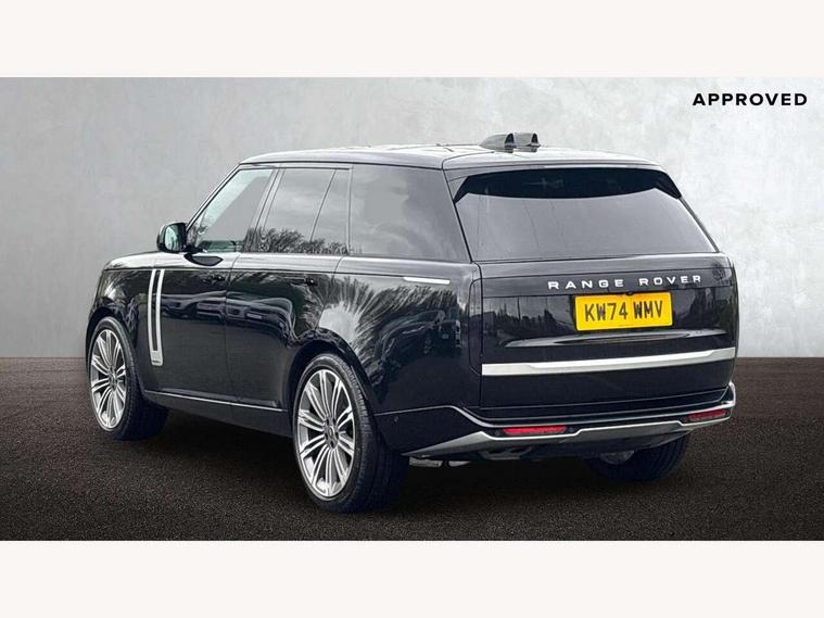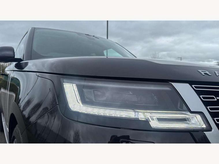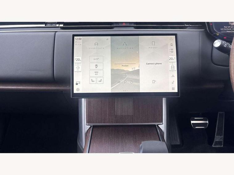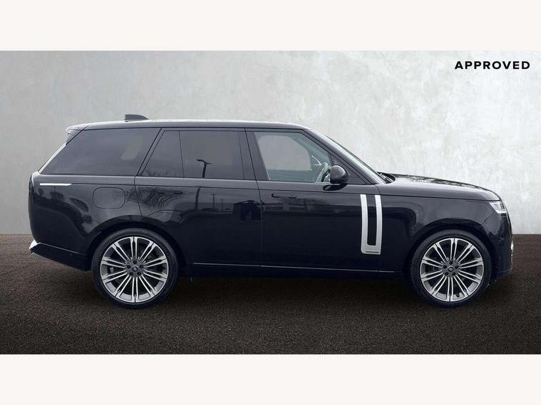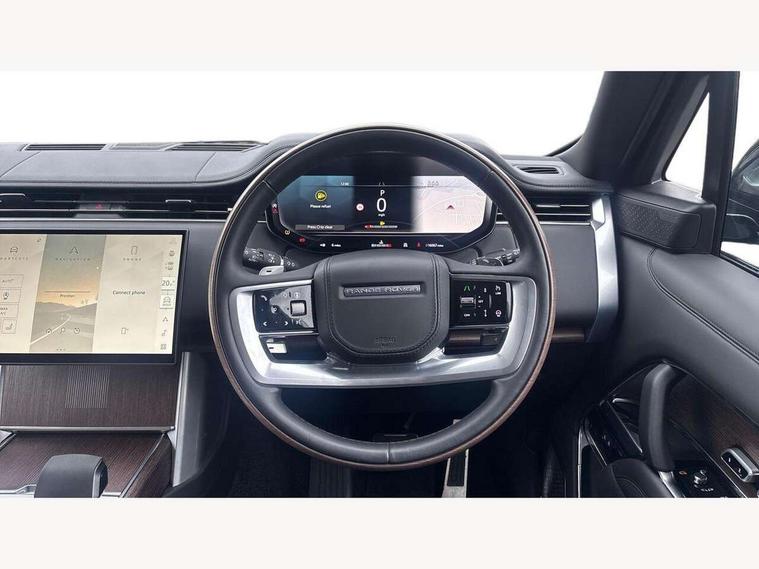 13.1" Touchscreen, 3D surround camera inc frwd traffic detection, vehicle clearance guidance, 3D view, clearsight ground view, manoevure light, 360 parking aid, wade sensing, All Terrain Info Centre, All wheel steering, Android Auto, Apple car play, Blind spot assist, Bluetooth connectivity streaming, Configurable programs, Driver condition response, Eco mode, Electric power assisted steering (EPAS), Emergency call service, Front and rear parking aid, Head up Display, Interactive driver display, Lane keep assist, Park assist, Powered gesture tailgate/boot lid, Rear collision monitor, Rear traffic monitor, Remote, Traffic sign recognition with adaptive speed limiter, Wi-Fi Enabled with data plan, Wireless device charging with phone signal booster, 8 speed automatic transmission, Active damper technology system, Adaptive dynamics, Adaptive off-road cruise control, All Wheel Drive (AWD), Automatic access height, Electronic air suspension, Open differential with torque vectoring by braking, Terrain Response 2 Auto, Twin speed transfer box, Digital Audio Broadcast radio-DAB, Meridian 1600W signature sound system, Pivi pro including smart settings, Connected navigation pro, nuance speech, USB socket, Acoustic laminated windscreen, Animated directional indicators, Automatic headlights, Automatic levelling headlights, Centre high mounted stop light, ClearSight interior rear view mirror, Digital LED headlights with signature DRL and image projection, Electric windows with one touch open/close and anti trap, Engine cover, Flush deployable exterior door handles, Front and rear recovery eyes, Front fog lights, Headlamp power wash, Heated rear window, Heated washer jets, Illuminated metal treadplates with Autobiography script, Laminated front and rear side glass, LED tail lights, Power fold, auto-dimming, heated door mirrors with approach lights, Rain sensing windscreen wipers, Rear boot, Rear fog lights, Rear side wing doors, Side repeater indicators in mirror, Solar attenuating windscreen, Trailer stability assist, Winter wiper park position, 12V power sockets, 3 seat bench in 2nd row, Air quality sensor, Auto folding loadspace cover, Bright metal pedals, Cabin air purification pro, Cabin lighting, Customer configurable single point entry, Driver and passenger front seat armrests, Easy boot loading, Ebony Carpet, Electric rear side window sunblinds, Four zone climate control, Front and rear cupholders, Front and rear grab handles, Front centre console refrigerator compartment, Front head restraints, Gearshift paddles, Heated steering wheel, Hook in load space, Loadspace light, Luggage tie down in loadspace, Multifunction steering wheel, Rear centre armrest, Rear head restraints, Rear ISOFIX, Single front passenger seat, Soft close doors, SV bespoke carpet mats, Twin blade sunvisors with Illuminated vanity mirrors, Upper and lower glovebox, Online pack with data plan - Range Rover, 3x3 point rear seat belts, Anti-lock braking system (ABS), Black brake calipers, Brake hold function, Cornering brake control (CBC), Customer configurable autolock, DSC - Dynamic Stability Control, Electronic brake force distribution, Electronic parking brake, Electronic traction control, Emergency braking, Front airbags with passenger seat occupant detector, Front side airbags, Hill descent control, Hill launch assist, Illuminated seat belt buckles, Low traction launch, Occupant protection assist, Power operated child locks, Roll stability control, Tyre pressure monitoring system (TPMS), Immobiliser, Intrusion sensor and alarm, Keyless entry, Locking wheel nuts, Remote central locking, Noble chrome controls,