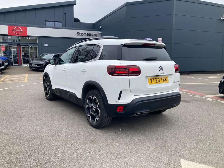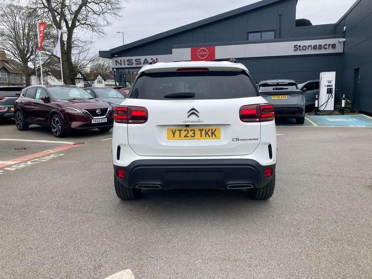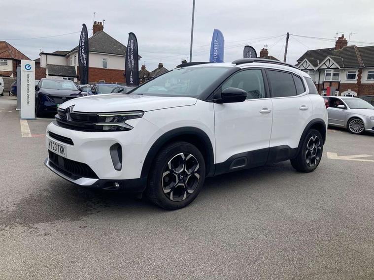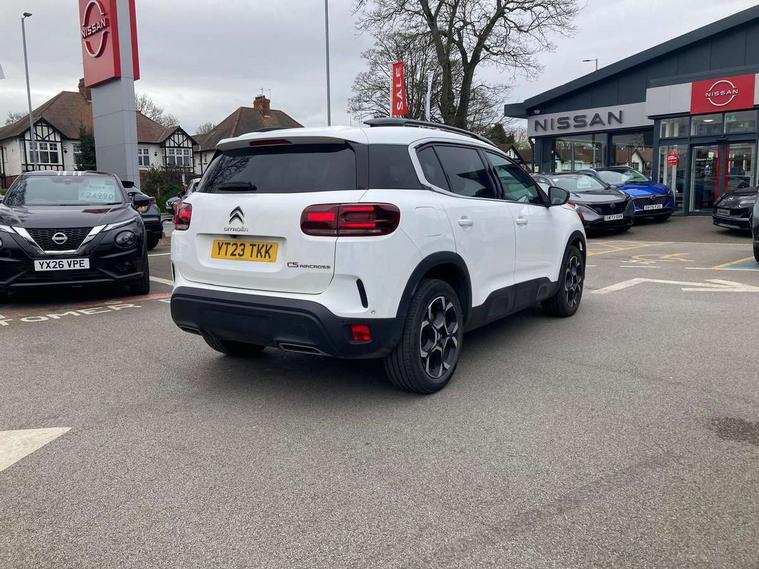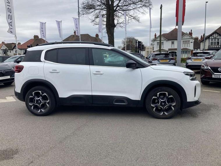 10" Touchscreen user interface with citroen connect nav, voice commands, Bluetooth handsfree and audio streaming, 12.3" digital instrument cluster with customisable zones and colour schemes, Citroen connect box emergency assist system, Citroen connect play featuring android auto and apple carPlay, Electric power steering, Multi function trip computer, Advanced comfort suspension, Auxiliary input socket, FM and DAB digital radio, 6 speakers, Polyphonic sounds, USB A socket (charge only) on rear part of central console, 3rd brake light, Acoustic laminated windscreen with rain and brightness sensors, Automatic hazard light activation upon heavy brake application, Automatic headlights with welcome and goodbye lighting, Body colour door handles, Body colour front bumper with air curtain, silver painted skid plate, and matt black lower section, Body colour rear bumper, Electric heated and folding door mirrors with LED approach lighting and blind spot monitoring indicators, Electrochrome auto dimming interior rear view mirror, Front fog lights with static cornering function, Gloss black longitudinal roof bars, Glossy black door mirrors, Glossy black structured grille, LED headlights with LED daytime running lights and visual signature, LED rear lights with visual signature, Magic wash automatic windscreen wipers with flat blades, variable speed depending on vehicle speed, and windscreen washers integrated into the wipers, Radio aerial integrated into rear window, Rear side wing doors, Rear window wiper with intermittent facility, linked to reverse gear, Sequential electric front and rear side windows with anti pinch function, Stainless steel front door thresholds, Stainless steel window finishers, Tinted row 1 windows and dark tinted row 2, C-Pillar and tailgate windows, 12V power outlet and 2x USB-A sockets (1x charge+data, 1x charge only) on front part of central console, 12V socket in boot, 2 Position boot floor, 3 point ISOFIX mountings on front passenger and rear outer seats, 4 way adjustable steering column, 6 way Manual front passenger seat adjustment (height, slide, backrest angle), 6-way electric adjust driver seat, Adjustable headrests (2 in front, 3 in rear), Advanced comfort front and rear seats, Aluminium pedals and foot rest, Automatic bi-zone air conditioning with active carbon filter and air quality system, plus controllable row 2 air diffuser, Boot light, Central storage box with opening central armrest and interior lighting, Dashboard storage area to right of driver, open storage at front of central console, glovebox with smooth opening and lighting, Front + rear carpet mats, Front door storage can hold 1.5 litre bottle and A4 size documents, B-pillar coat hooks, rear door storage, central storage under armrest, Manual driver lumbar adjustment, Map pockets in rear of front seats, Multi function leather steering wheel with two command blocks, Single front passenger seat, Three individual sliding seats with adjustable backrest and flat floor function, Two open cupholders with LED lighting in central console, Urban leather effect cloth/Alcantara upholstery with black ambience, City camera pack with front and rear parking sensors - C5 Aircross, Drive assist pack - C5 Aircross, LED interior lighting - - C5 Aircross, 3 rear 3-point seatbelts (outer seats featuring force limiters), ABS/EBD, Adaptive driver and front passenger airbags with passenger airbag deactivation function, Collision risk alert, Driver and front passenger side airbags, DSC (Dynamic Stability Control) and ASR (Electronic Anti-skid System), Electronic parking brake, ESP including traction control and stability programme, Front seat belts with double pretensioning, force limiters and height adjustment (driver and passenger), Front ventilated disc brakes and rear disc brakes, Head curtain airbags covering rows 1 and 2 (left and right), Hill start assist, Manual child lock in second row, Seatbelt unfastened audible alert, Two tone horn, Tyre under inflation indicator, Anti theft alarm with perimetric and volumetric protection, plus tilt sensor, Anti theft locking wheel nuts, Automatic door and tailgate locking with automatic unlocking in case of collision, Electronic code immobiliser, Keyless entry and start, Remote central locking + deadlocks, Compressor with puncture repair kit,