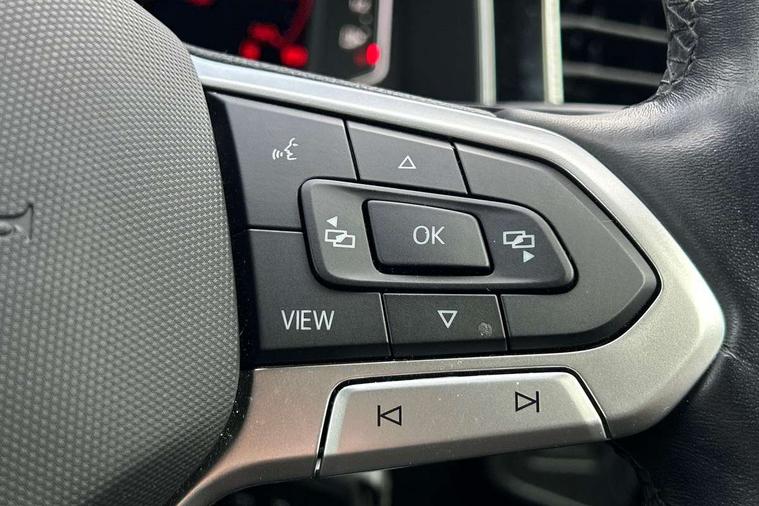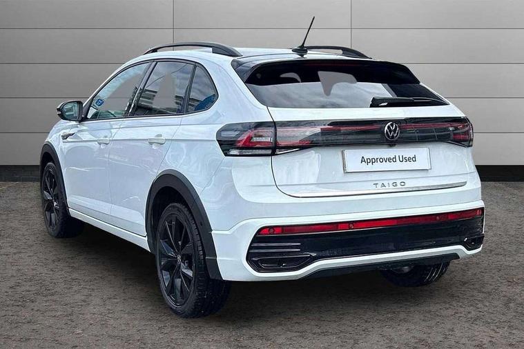 App-Connect including App-Connect Wireless, Digital cockpit pro - 10.25" high resolution TFT dash display screen with customizable menus and information, Driver alert system, Driving profile selection, e-Call (emergency call), Power Steering, Travel assist including emergency assist, Washer fluid level indicator, Wireless Charging including Bluetooth, Start-stop system with battery regeneration (recuperation - energy recovery during braking), XDS electronic differential lock for improved traction and handling, Digital radio reception (DAB+), Diversity antenna for FM reception, WeConnect plus, Aspherical driver's exterior mirror, Auto headlights, Body coloured bumpers, Body coloured exterior mirror housings and door handles, Bumpers in R-Line style, Electric windows, External USB type C socket and charging sockets, Front fog lamps with cornering function, Front scuff plates with R-Line logo, Headlight range control, LED headlamps, LED rear combination lamp, LED third brake light, Left convex exterior mirror, Power folding adjustable/heated exterior mirrors and front passenger exterior mirror lowering function, Rear fog light on one side, reversing light on both sides, Rear side wing doors, Rear wash/wipe with intermittent wipe setting, 12V socket in centre console, 2 front reading lights, 3 rear head restraints, 3 seat bench in 2nd row, Air care climatronic air conditoning system with active combination filter and 2-zone temperature control, Ambient lighting with logo projection, Black carpets, Black roof lining, Child seat anchor for child seat system i-Size, 2x top tether and child seat anchor in front on front passenger side, Chrome bezel for instrument cluster, vents, door handles + gear shift, Driver and front passenger seat height adjustment, Front + rear carpet mats, Front centre armrest, Front footwell illumination, Front sports comfort seats, Height and reach adjustable steering wheel, Interior ambient lighting and surround lighting, Karoso artvelours cloth upholstery, Leather trimmed gear knob, Leather wrapped multifunction steering wheel, Luggage compartment floor, Luggage compartment light, Lumbar support for driver's and front passengers seat, Seat covers in grey + titanium black, Single front passenger seat, Split folding backrest with centre armrest and unsplit rear seat bench, Stainless steel pedals, Storage compartment under front seats, Sun visors with illuminated vanity mirrors, Chrome Package - Taigo, Drivers assistance pack - Taigo, Light and Sight pack including High beam assist - Taigo, 2 x 3-point seatbelts/outer rear seats with ECE label, 3-point seat belts in front with pretensioner and height adjustment, 3-point seatbelt for centre rear seat, Driver and front passenger airbags with front passenger airbag de-activation, front side and curtain airbags, Driver and front passenger safety-optimised head restraints, Electronic stability control, Extended and predictive pedestrian/ cyclist protection, Front and rear disc brakes, Front curtain and side airbags with center airbag, Hill start assist, Manual rear child locks, Single tone horn, Tyre pressure loss indicator, Anti-theft alarm system with interior monitoring, backup horn, and towing protection, Anti-theft wheel bolts, Grey anodised matte decorative inserts in dash and front door panels, Low rolling resistance tyres,