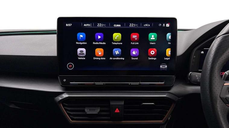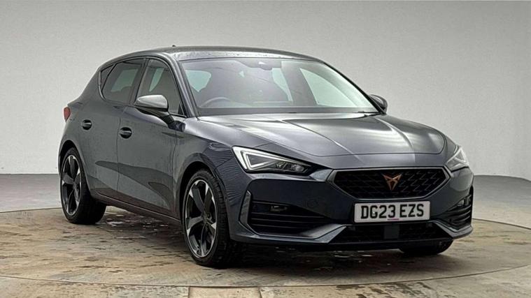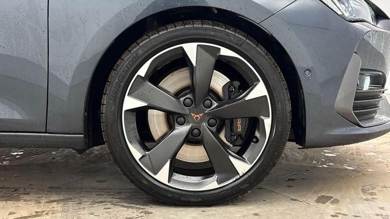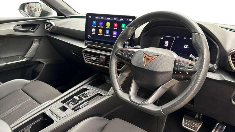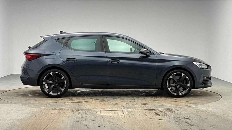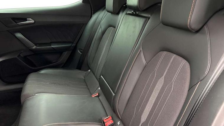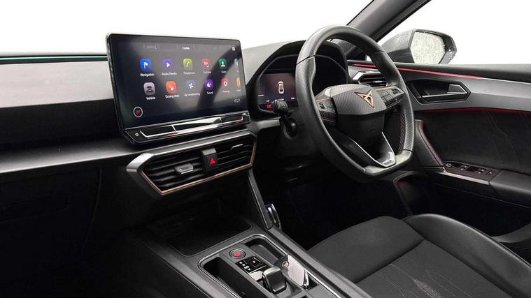 CUPRA drive profile selection with 4 modes (Comfort/Cupra/Sport/Individual), throttle response and gearshift mode, Digital cockpit, E-call, Electro mechanical speed sensitive power steering, Front assist with forward collision warning braking reaction to vehicles, pedestrians and cyclists, Full link smartphone integration with Mirror Link, wireless Apple CarPlay and wired Google Android Auto, Lane assist, Lockable tailgate, Park assist (inc front/rear parking sensors), Rear view camera, RPM, trip computer, outside temp gauge, instrument light brightness, low fuel warning light, lights on reminder, gearshift indicator, Service interval indicator, Start/stop system with regenerative braking, Sports suspension, XDS electronic differential lock and dynamic traction support, 7 speakers, Auxiliary input socket, Auto dimming rear view mirror, Body colour door handles, Body coloured bumpers, Cupra sports bumpers, Dark tinted rear windows, Electric front/rear windows, Electrically adjustable, heated and folding door mirrors, LED front fog lamps with cornering function, LED headlights with dynamic turn signals, tail lights, rear fog lights with rear coast to coast lighting, Rain sensing wipers, Rear diffuser with twin exhaust pipe on each side, Rear side wing doors, Rear wash/wipe, Separate daytime running light with automatic headlight control and coming home feature, Third brake light, 12v power supply in centre console, 3 seat bench in 2nd row, 5 headrests, 60/40 split rear bench seat with armrest, Ambient lighting (glovebox, footwell, ambient lighting multicoloured), Black headlining, CUPRA Leather flat bottomed, heated, perforated steering and gearshift paddles, Cupra sports pedals, Driver/passenger manual seat height adjustment, Dust/pollen filter, Folding boot cover, Four x USB Type C ports, Front and rear reading lights X 4, Front centre armrest, Front seats manual lumbar adjustment, Height/reach adjust steering wheel, Illuminated interior front door sills, Interior wraparound lighting, ISOFIX points in outer rear seats with top tether anchorage points, Jack and tool kit, Luggage tie-down hooks, PVC/Cloth upholstery with copper stitching + Cupra embossed logo on headrest, Single front passenger seat, Sports bucket seats, Storage pockets on rear of front seats, Sunvisors with illuminated mirror, Three zone climate control, Media system plus with navigation pack - Leon Cupra, 3 point seatbelts on all rear seats, ABS, Brake control system - ESC and brake booster, Child proof door locks, Cupra black brake calipers, Driver and front passenger airbags with front passenger airbag de-activation, front side and curtain airbags, Electronic parking brake, Extended safety system - seat belt tensioner, window closure and hazard lights, Hill hold control, Rear disc brakes, Seat belt reminder for front and rear seats, Tiredness recognition system, Tyre pressure monitoring system, Anti theft alarm system with interior monitoring in cab, backup horn and towing protection, KESSY Advanced - Keyless start, keyless entry, Locking wheel bolts, Chrome and copper interior detailing, 18" Machined sport black and silver alloy wheels with 92Y tyres, Space saver spare wheel,