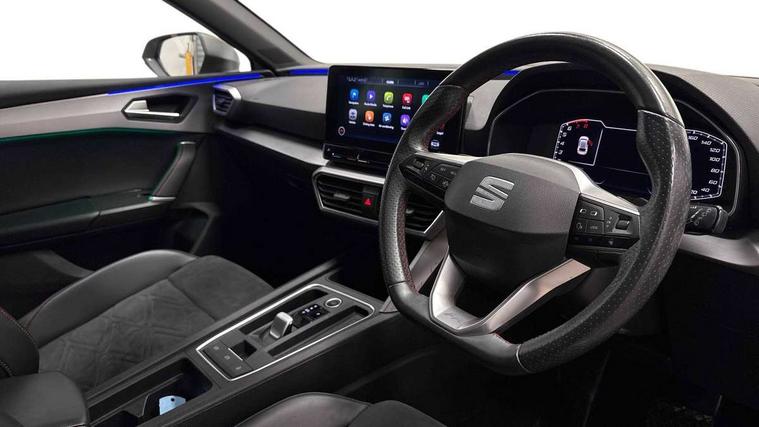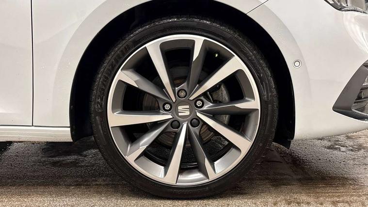 Digital cockpit, E-call, Front assist with forward collision warning braking reaction to vehicles, pedestrians and cyclists, Full link smartphone integration with Mirror Link, wireless Apple CarPlay and wired Google Android Auto, Lane assist, Lockable tailgate, Park assist (inc front/rear parking sensors), Power assisted speed sensitive electro-mechanical steering, RPM, trip computer, outside temp gauge, instrument light brightness, low fuel warning light, lights on reminder, gearshift indicator, SEAT drive profile with 4 modes (Eco/Normal/Sport/Individual), throttle response and gearshift mode, Service interval indicator, Start/stop system with regenerative braking, Wireless phone charging, Sports suspension, XDS electronic differential lock and dynamic traction support, 7 speakers, Auxiliary input socket, Auto dimming rear view mirror, Body colour door handles, Body coloured bumpers, Dark tinted rear windows, Door mirror LED indicator lights, Electric adjustable/heated/folding door mirrors with memory, Electric front/rear windows, FR sports bumper, Illuminated front door sill, LED front fog lamps with cornering function, LED headlights and tail lights with dynamic turn signals, welcome light silhouette from exterior mirrors and dynamic headlight range control, LED rear fog lamp, Rain sensing wipers, Rear side wing doors, Rear wash/wipe, Separate daytime running light with automatic headlight control and coming home feature, Third brake light, 12v power point in centre console, 3 seat bench in 2nd row, 60/40 split rear bench seat with armrest, Ambient lighting with glovebox, footwell and single monocolour, Black headlining, Dust/pollen filter, Folding boot cover, Four x USB Type C ports, Front and rear height adjustable headrests, Front and rear reading lights X 4, Front centre armrest, Front seatback storage pockets, Heated front seats, Height/reach adjust steering wheel, ISOFIX points in outer rear seats with top tether anchorage points, Luggage tie-down hooks, Lumbar adjustment for front seats, Manual driver seat with memory and height adjustable passenger seat, Microsuede cloth upholstery, Single front passenger seat, Sunvisors with covered illuminated mirror, Three zone climate control, Wraparound lighting, Media system plus with navigation - Leon, 3 point seatbelts on all rear seats, ABS, Brake control system - ESC and brake booster, Child proof door locks, Driver and front passenger airbags with front passenger airbag de-activation, front side and curtain airbags, Electronic parking brake, Extended safety system - seat belt tensioner, window closure and hazard lights, Hill hold control, Rear disc brakes, Seat belt reminder for front and rear seats, Tiredness recognition system, driver alert system, Tyre pressure monitoring system, Anti theft alarm system with interior monitoring in cab, backup horn and towing protection, KESSY Go (Keyless start), Locking wheel bolts, Chrome interior detailing, 18" Performance machined alloy wheels with 92Y tyres, Tool kit,